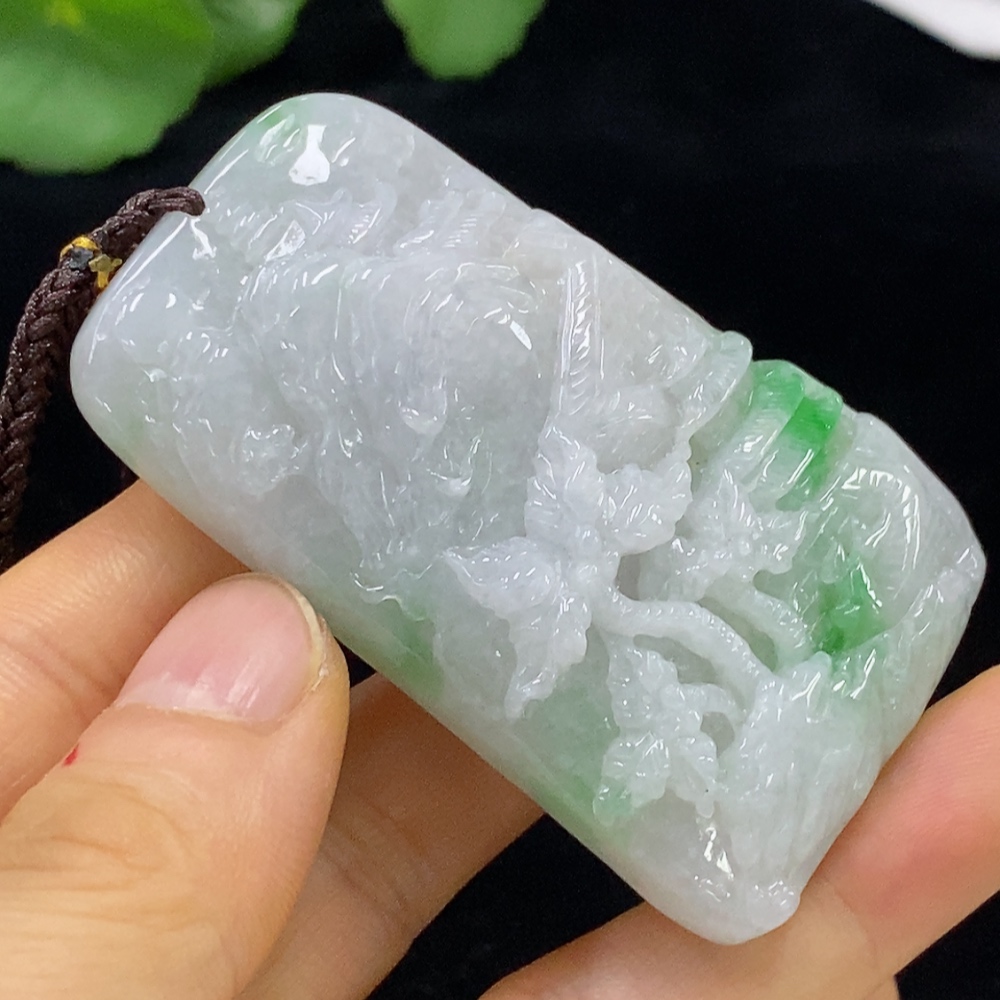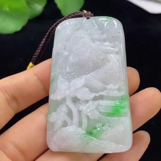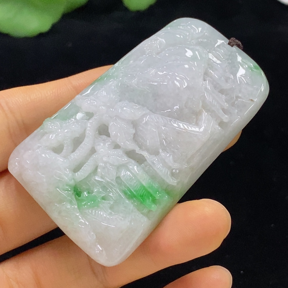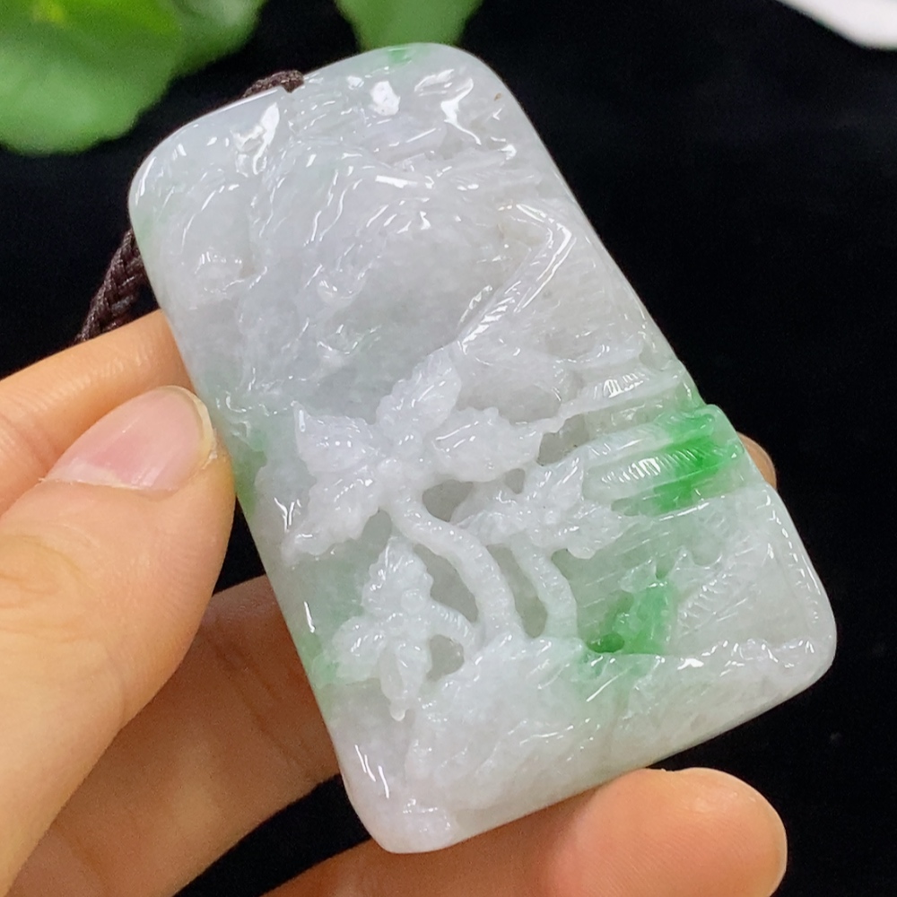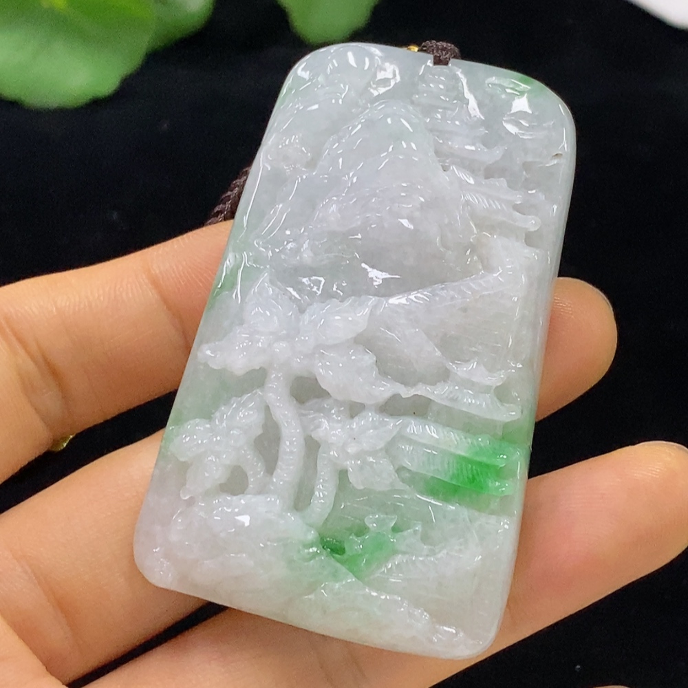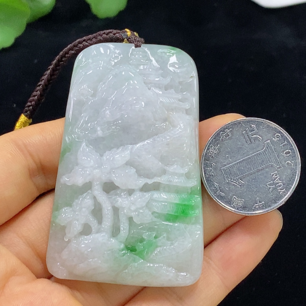 Jadeite Pendant Landscape with Cord Total Weight Approx. 66.89g