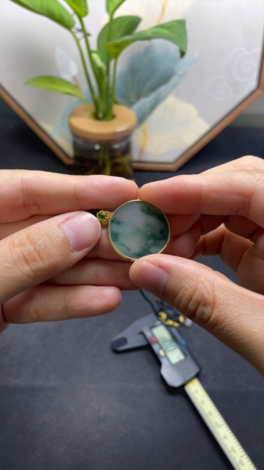 Jadeite Inlaid Piece 18k Gold Inlaid Total Weight Approx. 5.64g