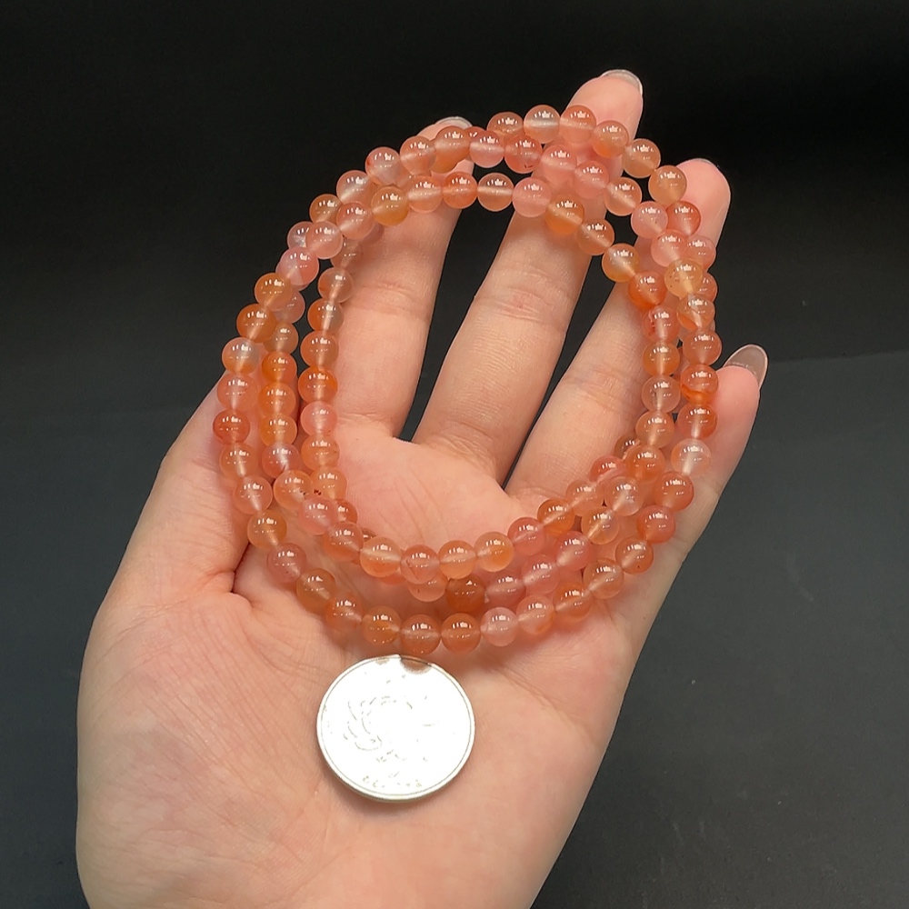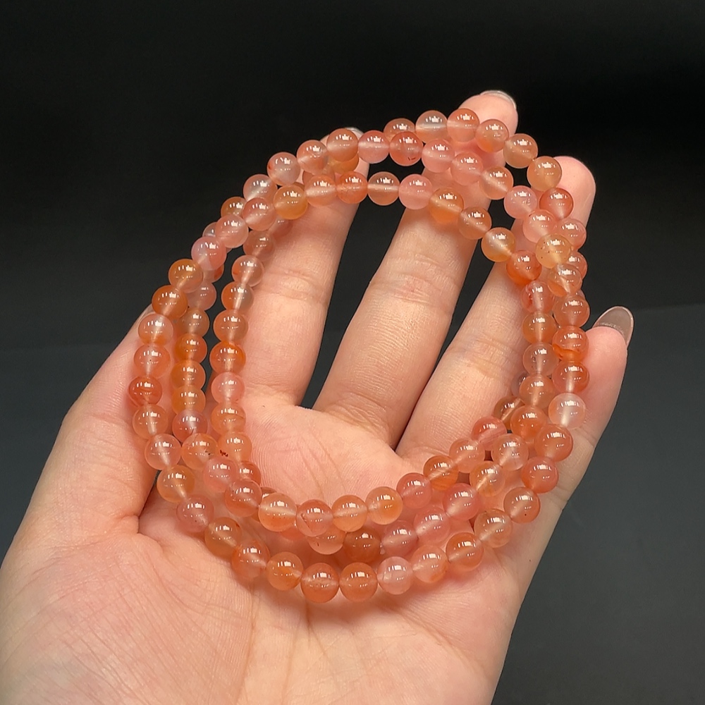 Red Agate Bead Necklace, Total Weight Approx. 43.48g, 6.6mm Beads, Visible Organic Inclusions