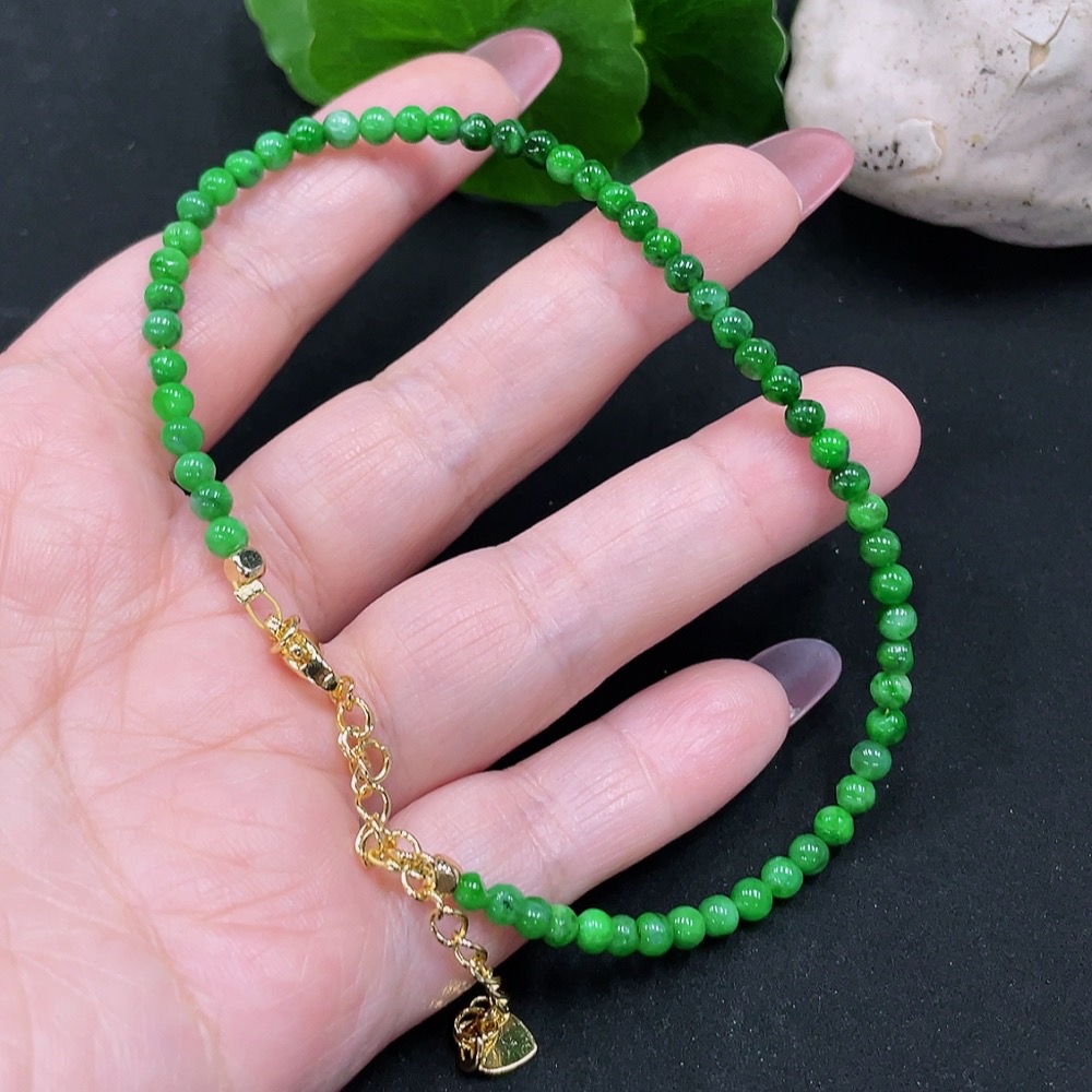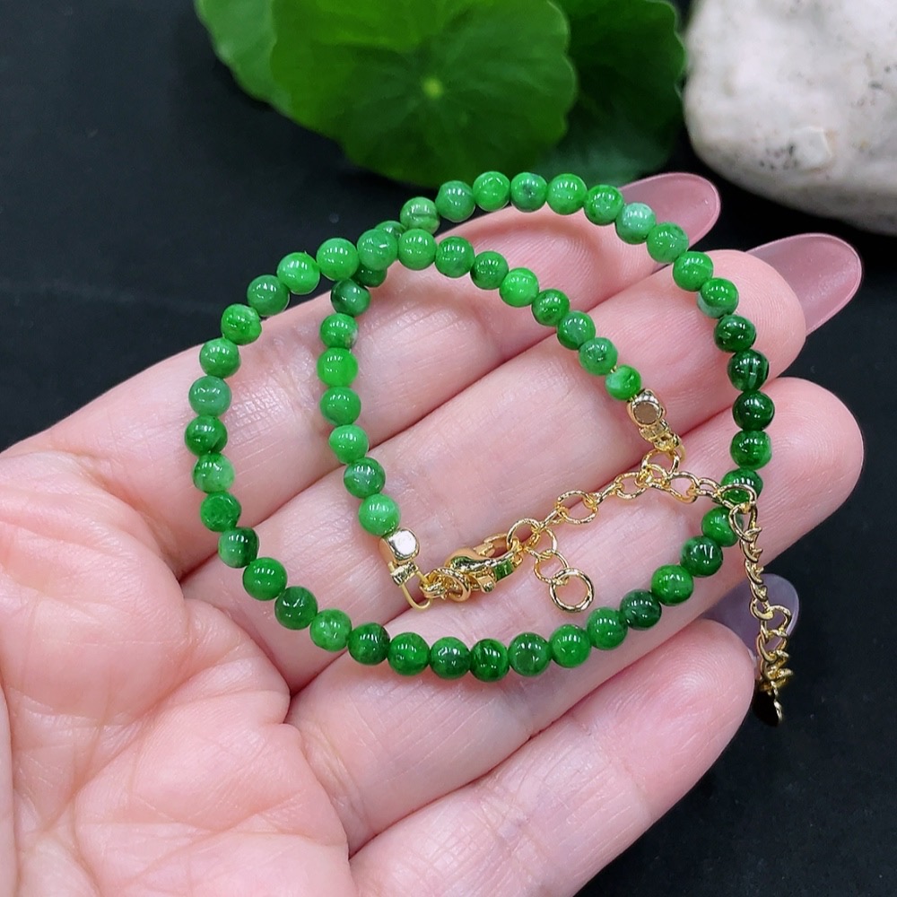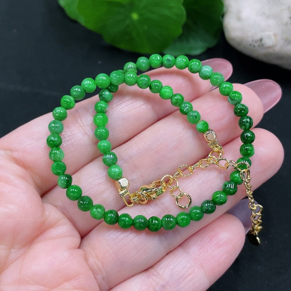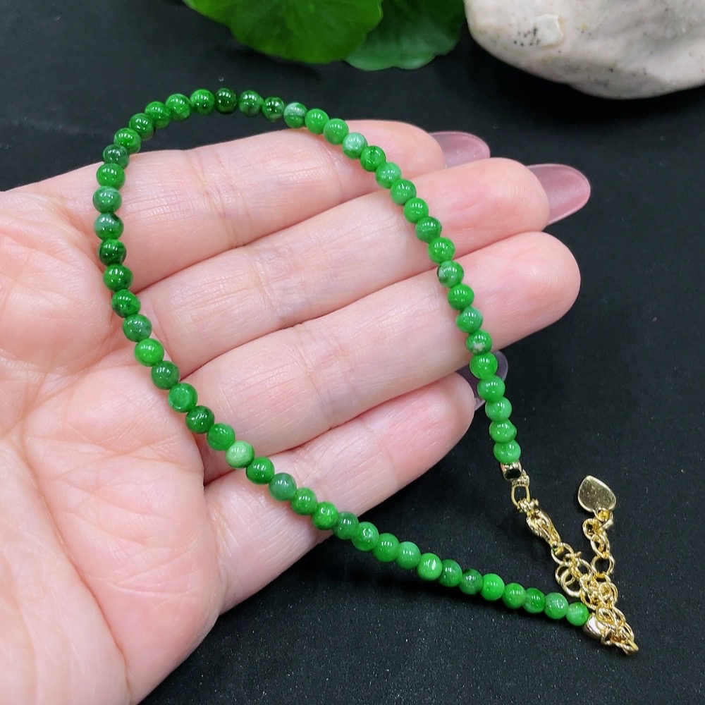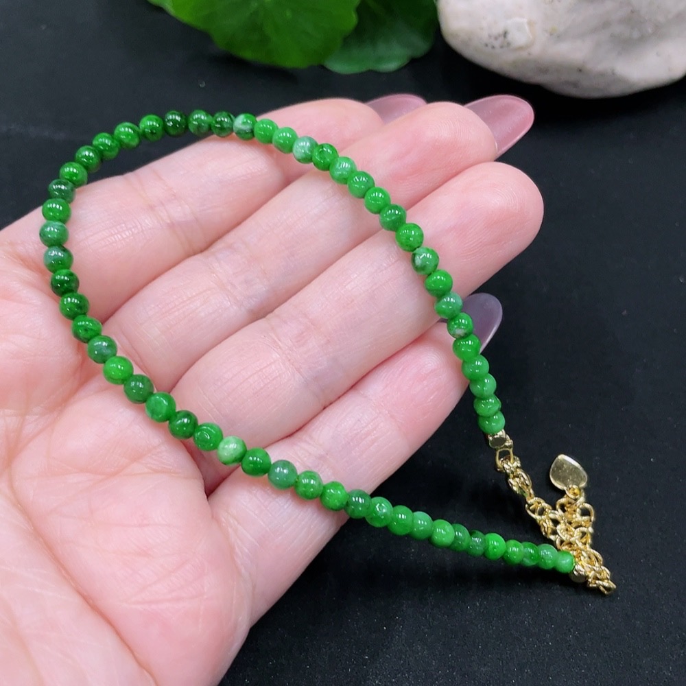 Jadeite Beads Approx. 3.8mm Non-gold-inlaid Containing Other Mineral Components Total Weight Approx. 6.2g