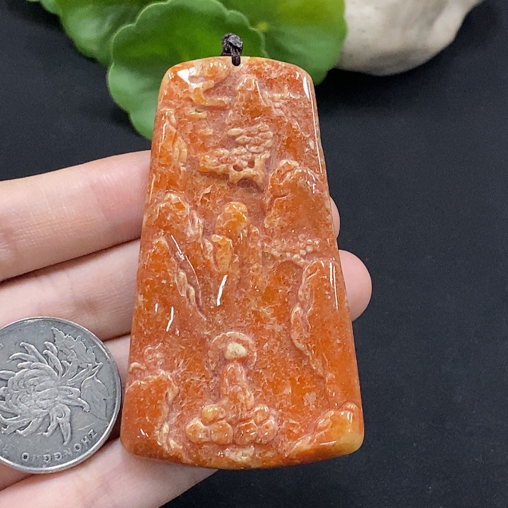 Jadeite Enlightenment Pendant, Yellow Part Color Origin Undetermined, Total Weight Approx. 38.2g