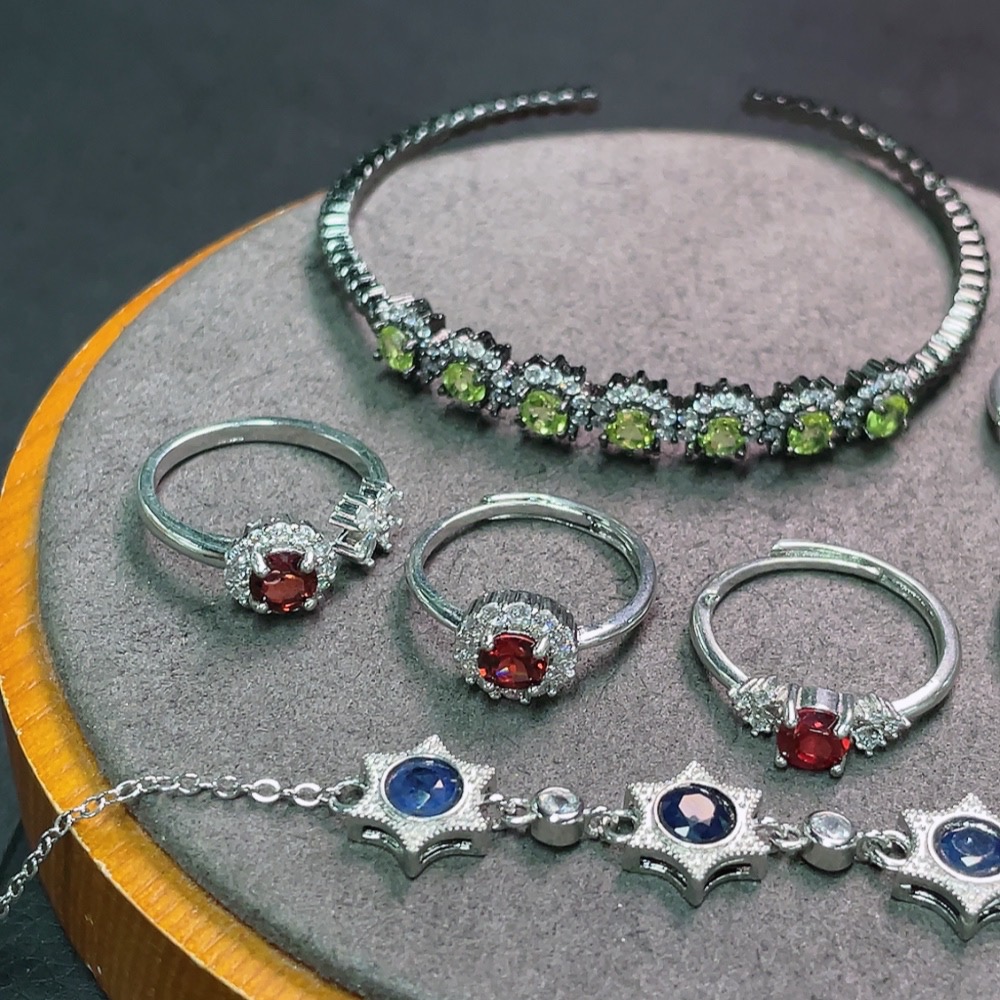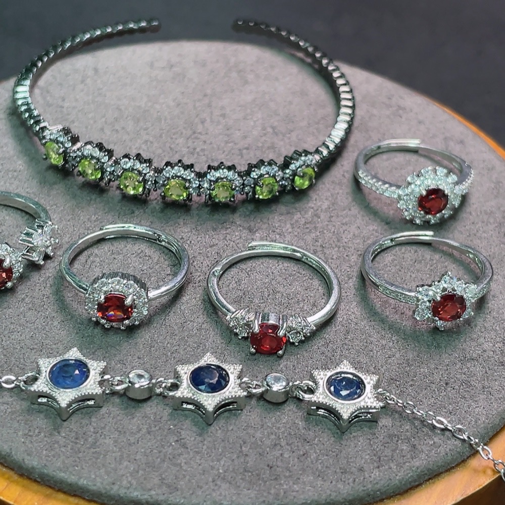 Garnet + Peridot + Sapphire Jewelry Non-Gold Total Weight Approx. 22.06g Sell as a Lot