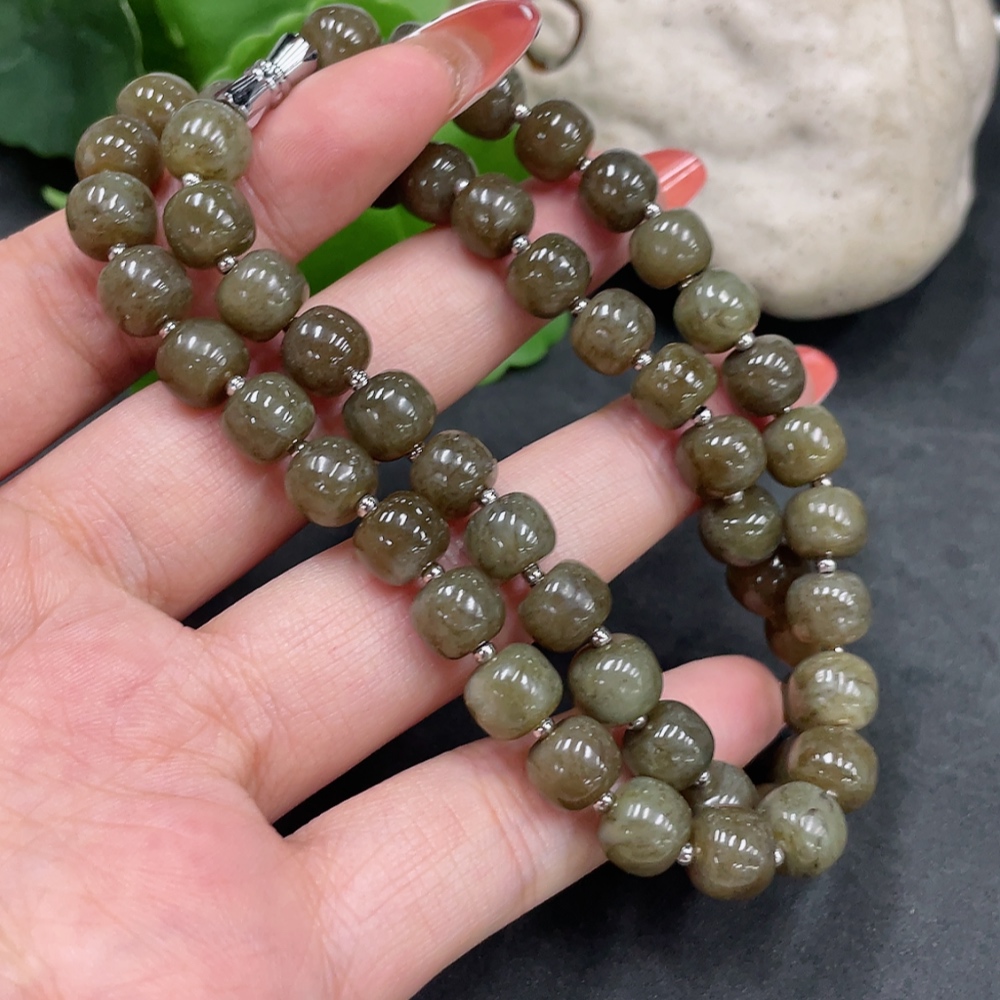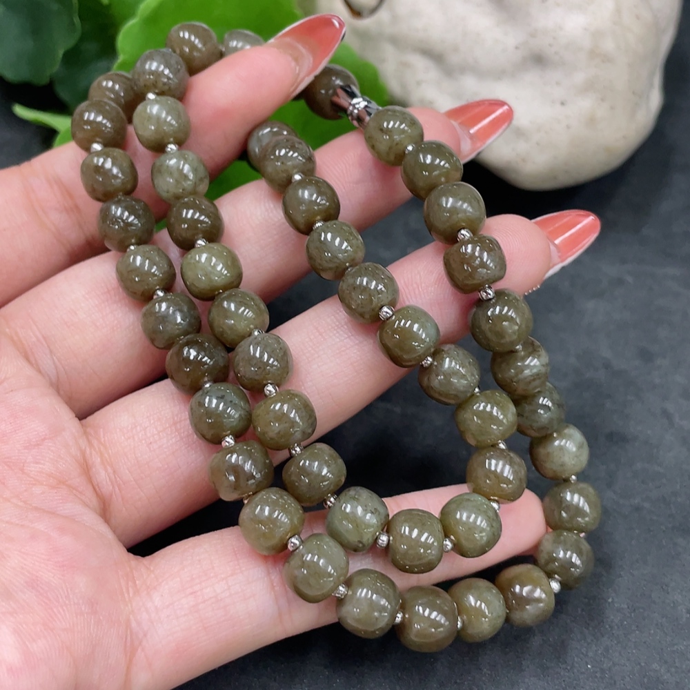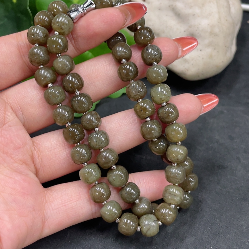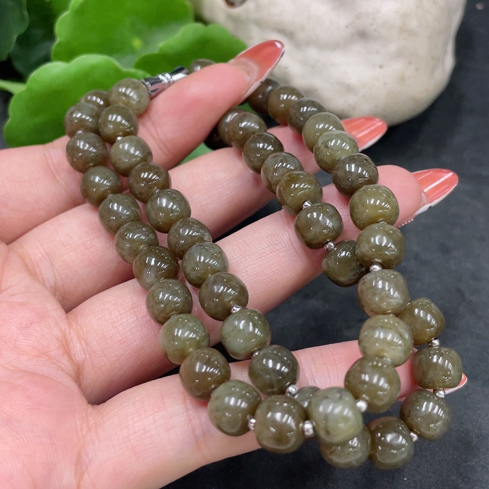 Hetian Jade Bead Necklace, approx. 8mm, Non-Gold, Total Weight approx. 45g