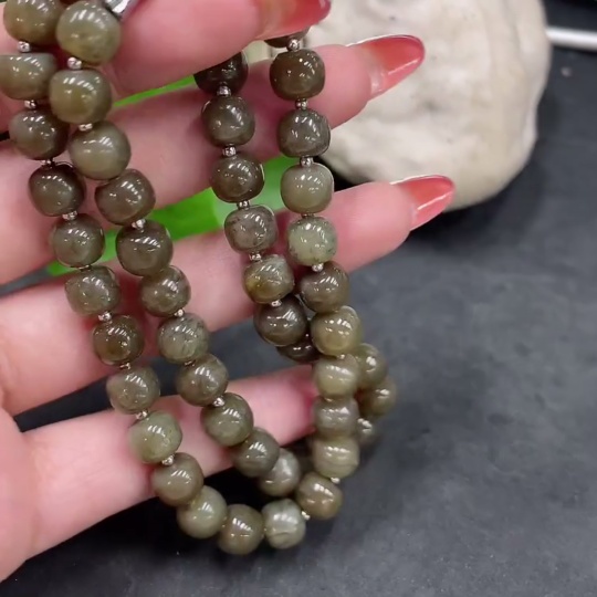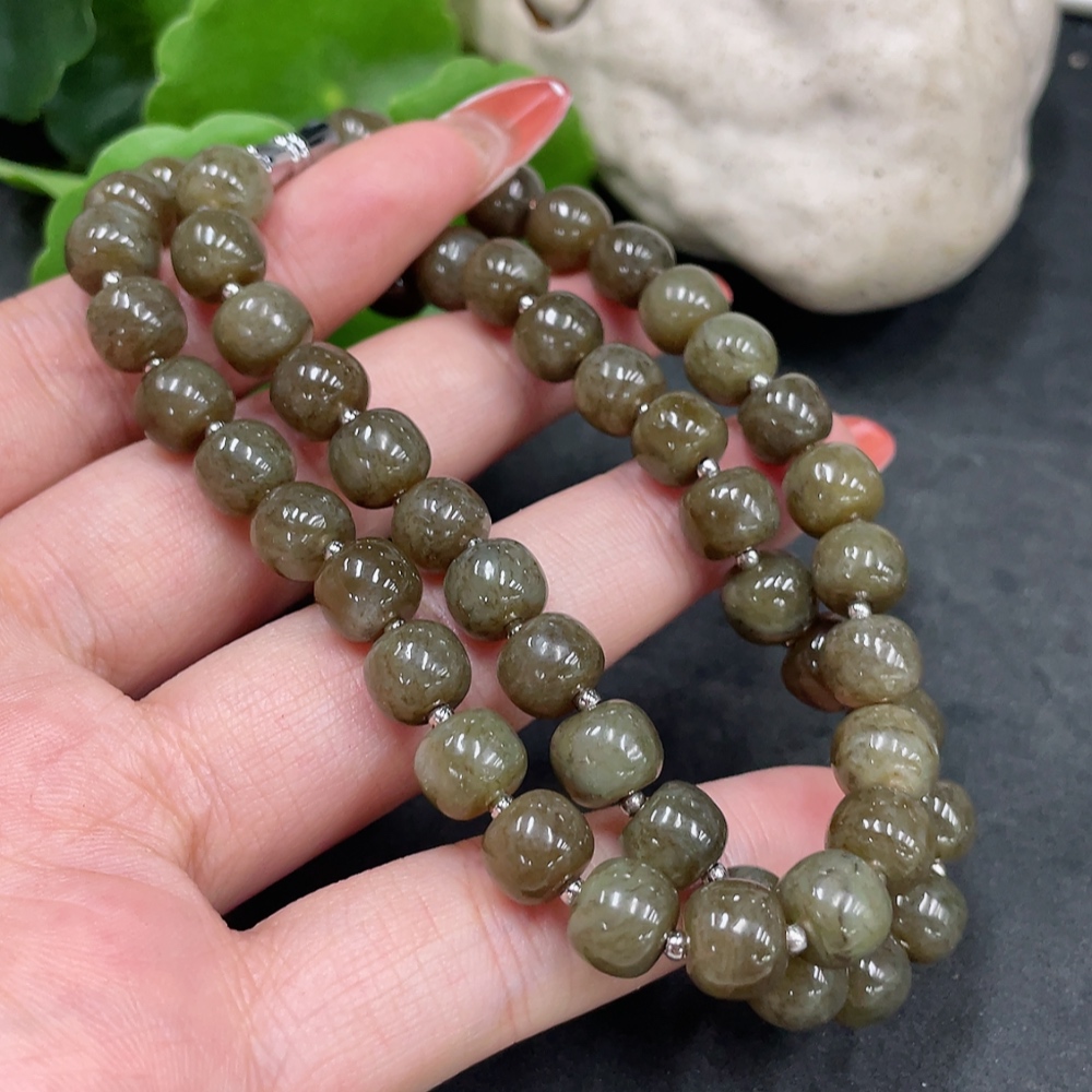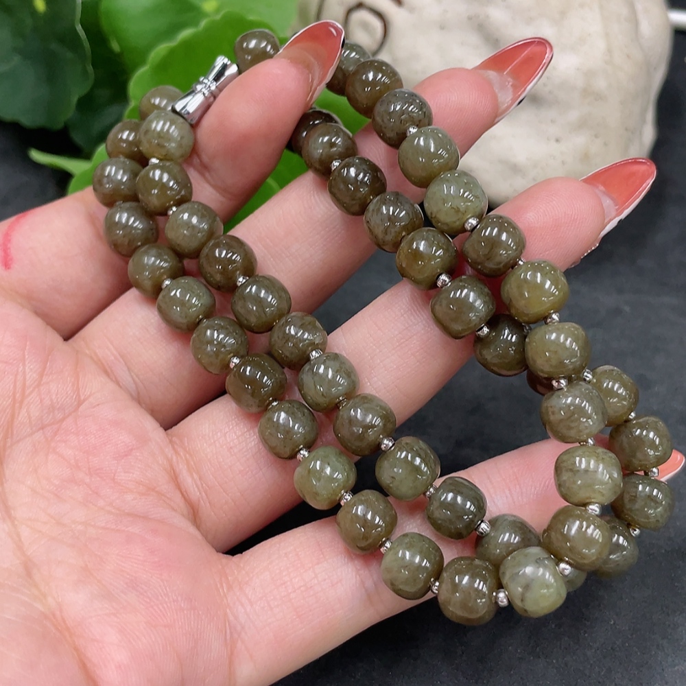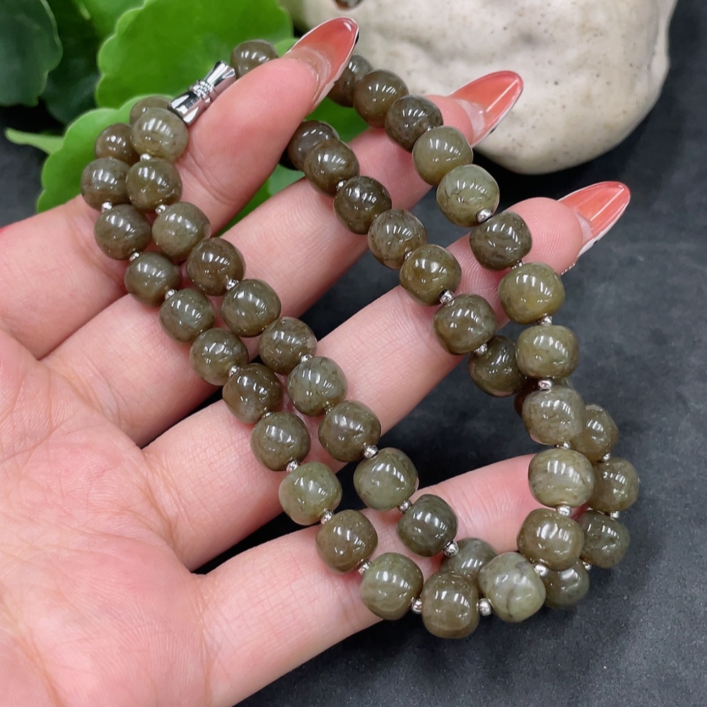 Hetian Jade Bead Necklace, approx. 8mm, Non-Gold, Total Weight approx. 45g