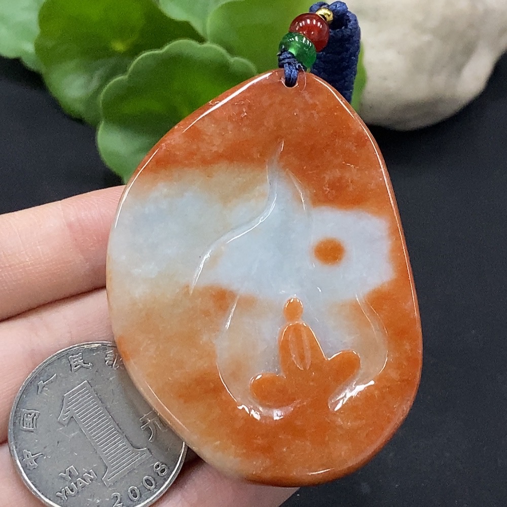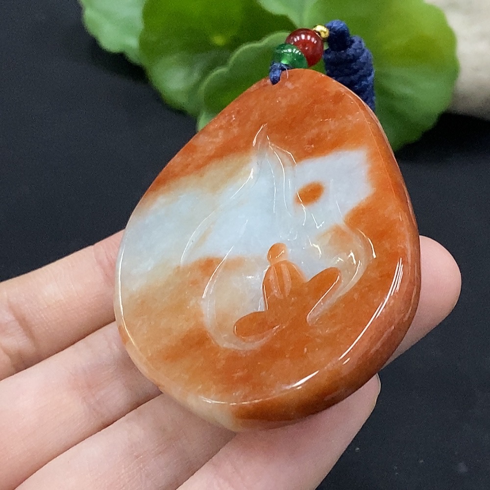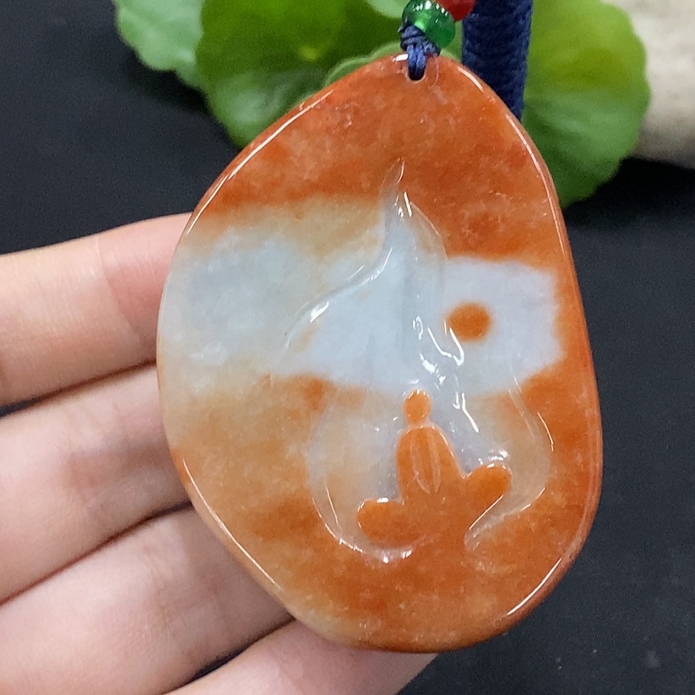 Jadeite Enlightenment Pendant, yellow part color origin undetermined, total weight approximately 51.85g