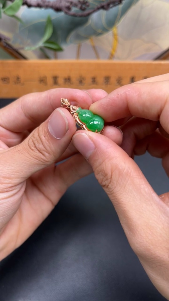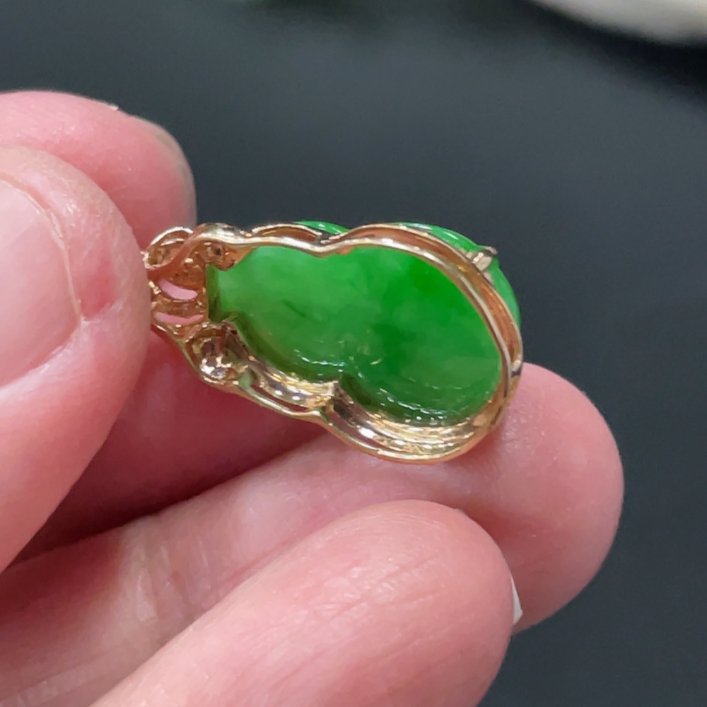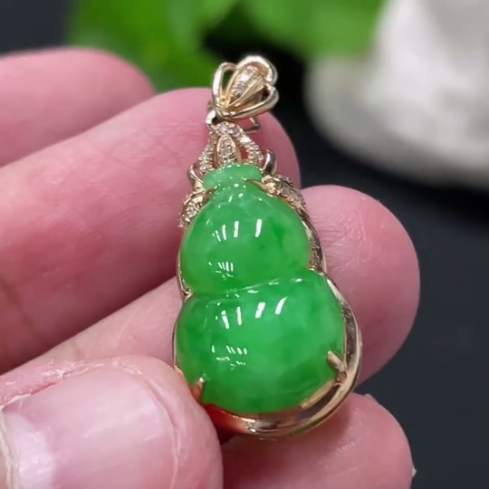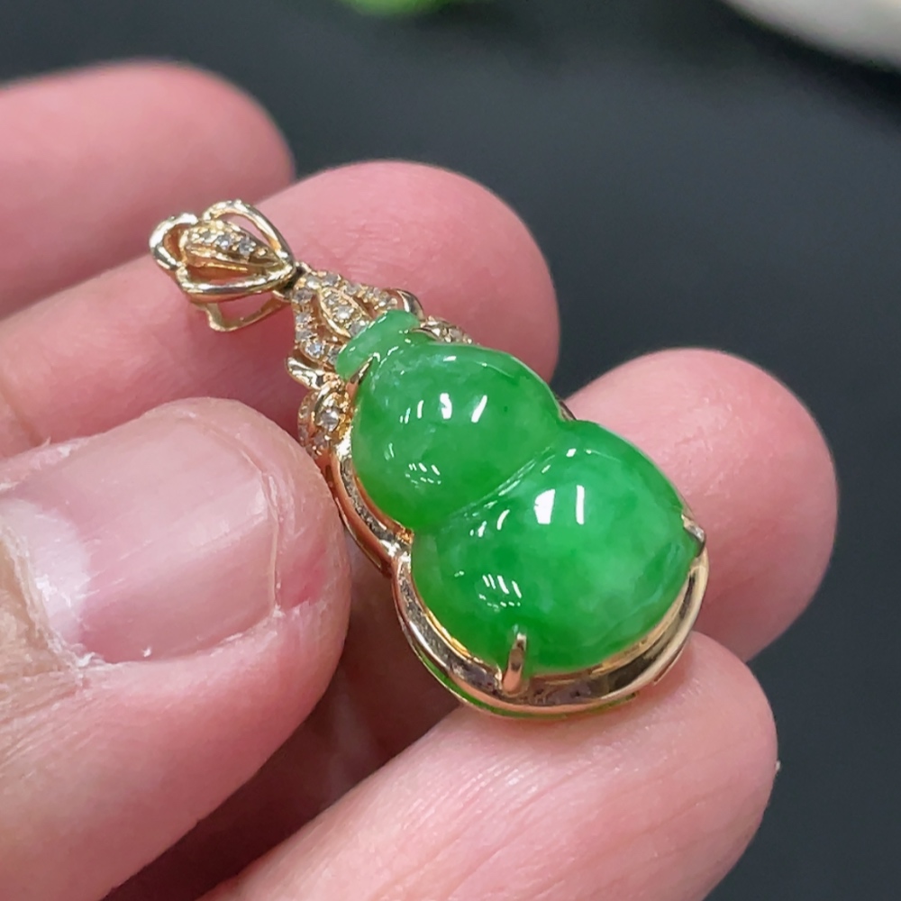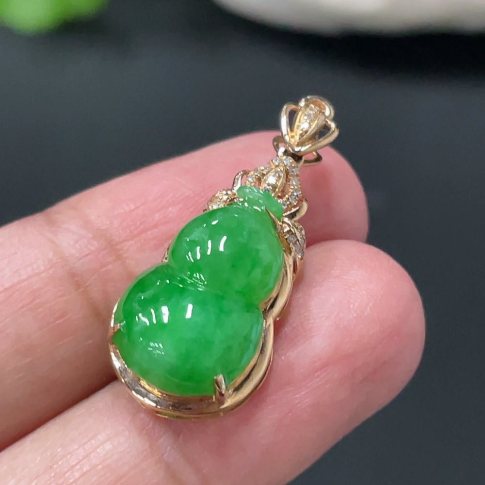 Jadeite Inlaid Calabash Pendant with 18k Gold and Diamond Accents, Total Weight Approximately 2.33g