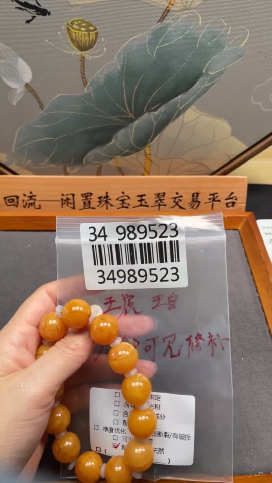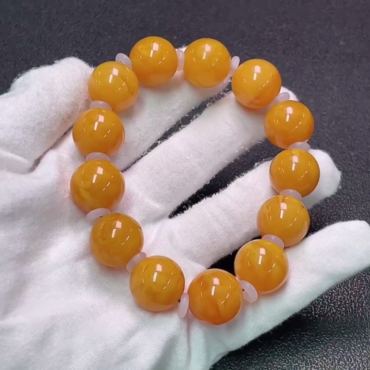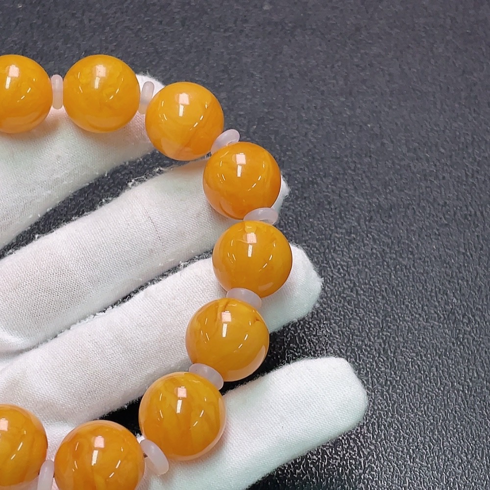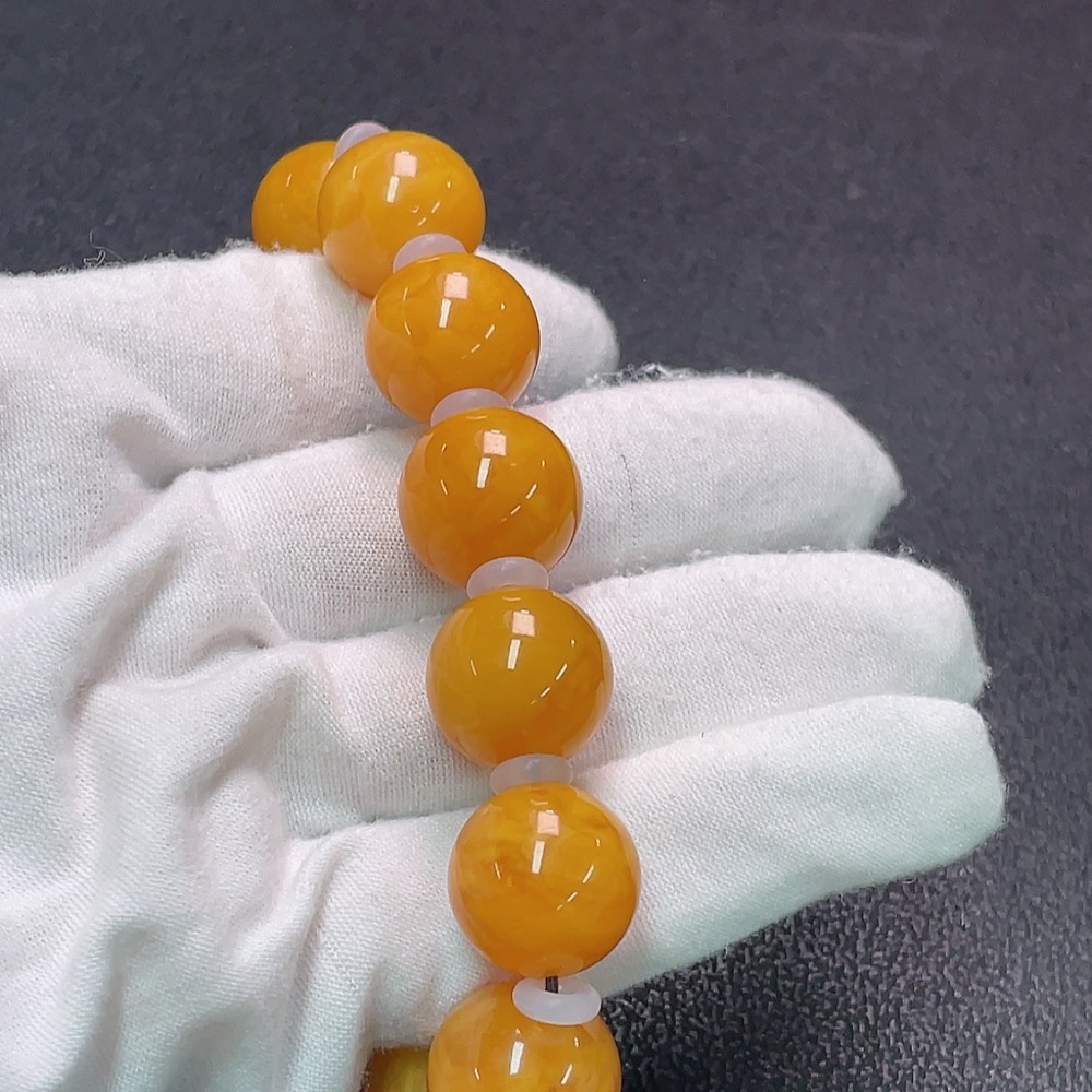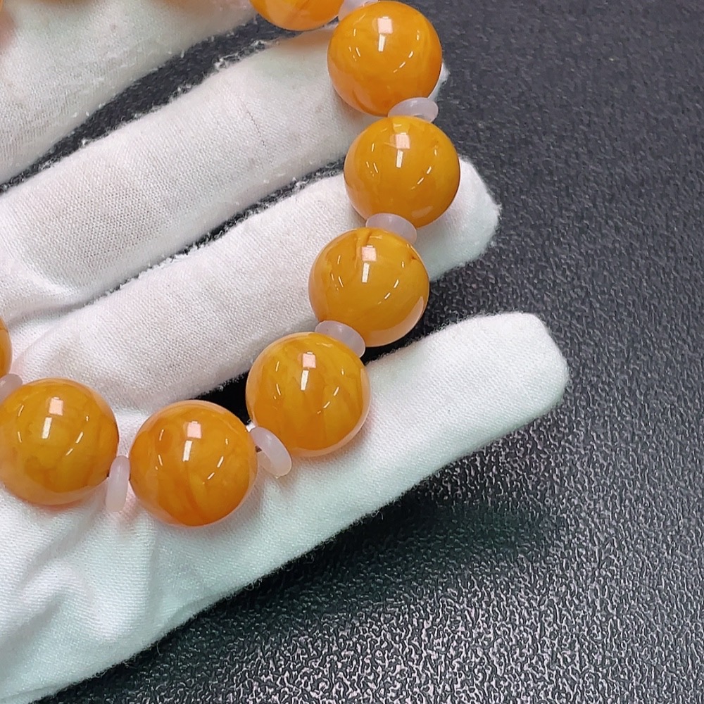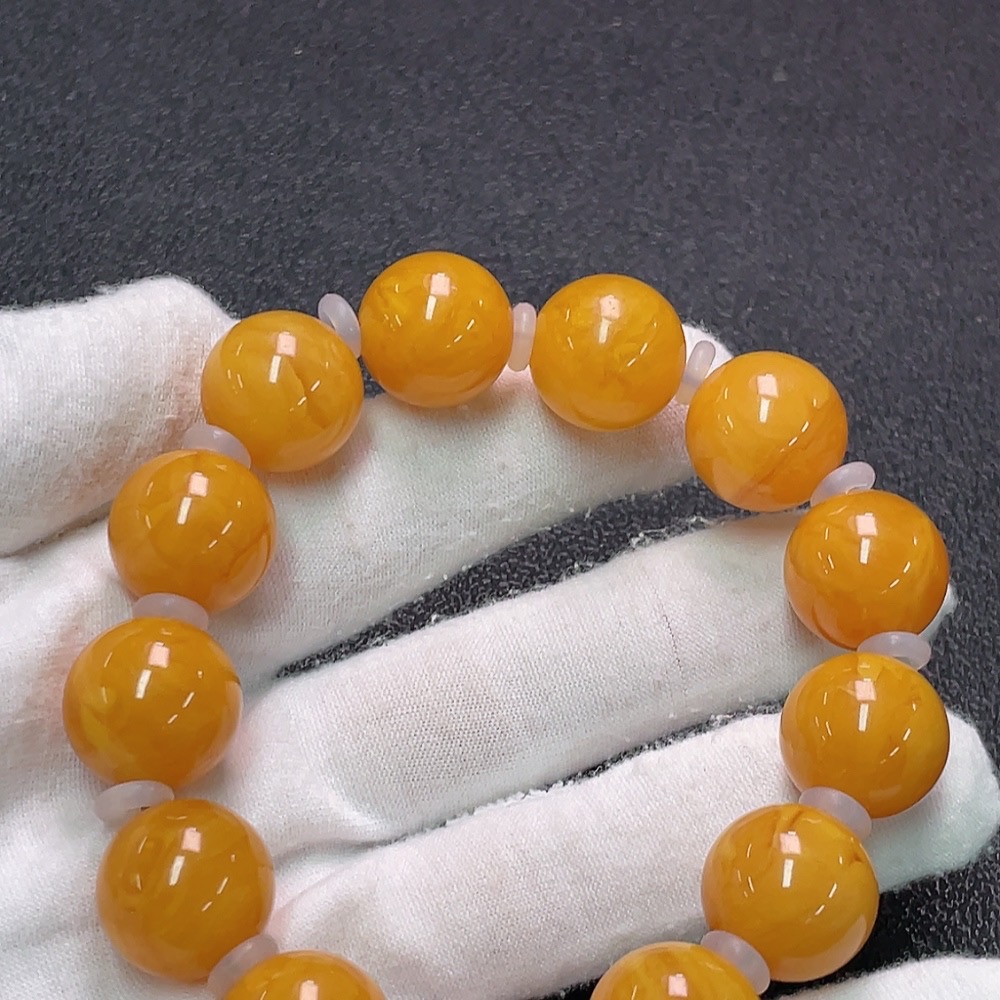 Amber Honey Wax Bracelet, Partial Repairs Visible, Stones May Not Be Natural, Total Weight Approx. 31.9g, Size About 16mm