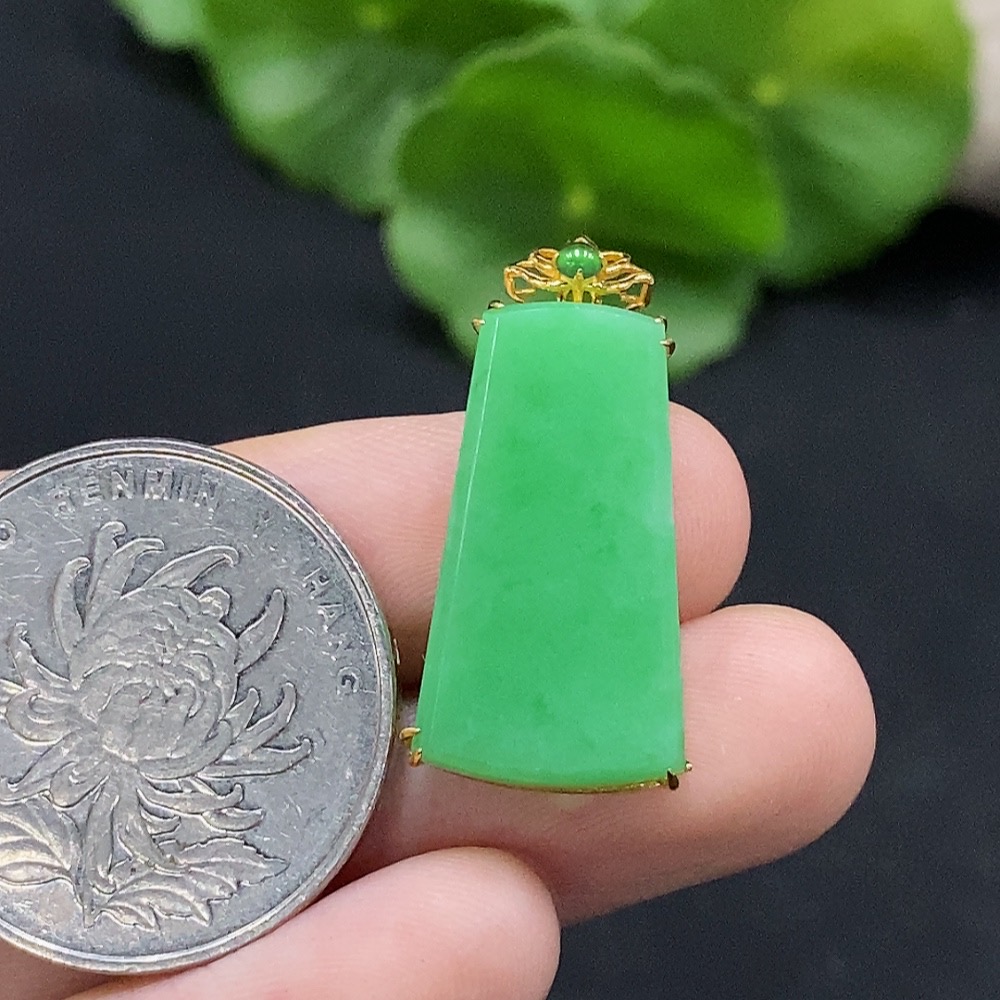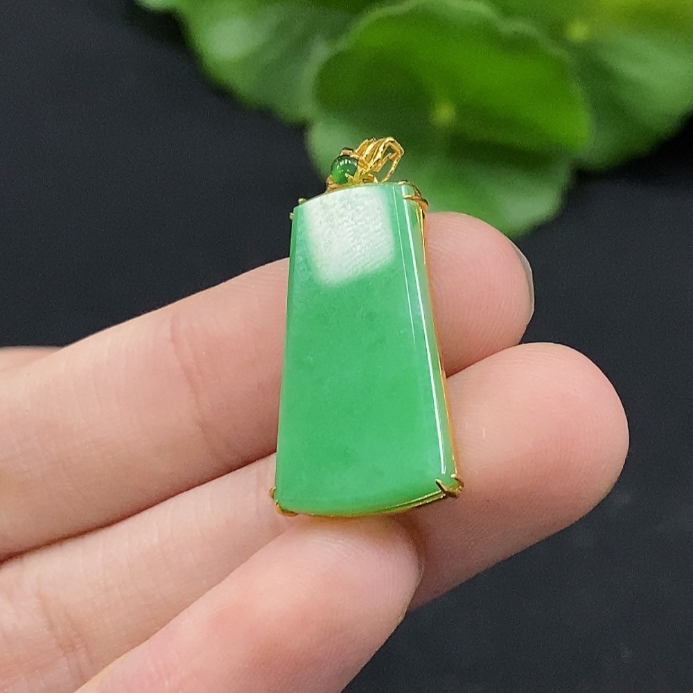 Jadeite Plain Pendant Pendant with 18K Gold Setting, Total Weight Approx. 2.39g