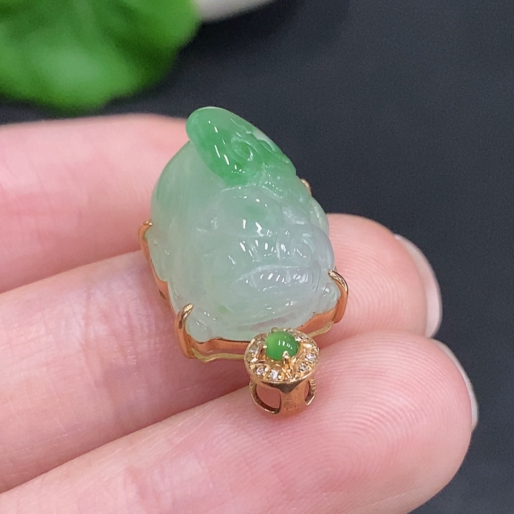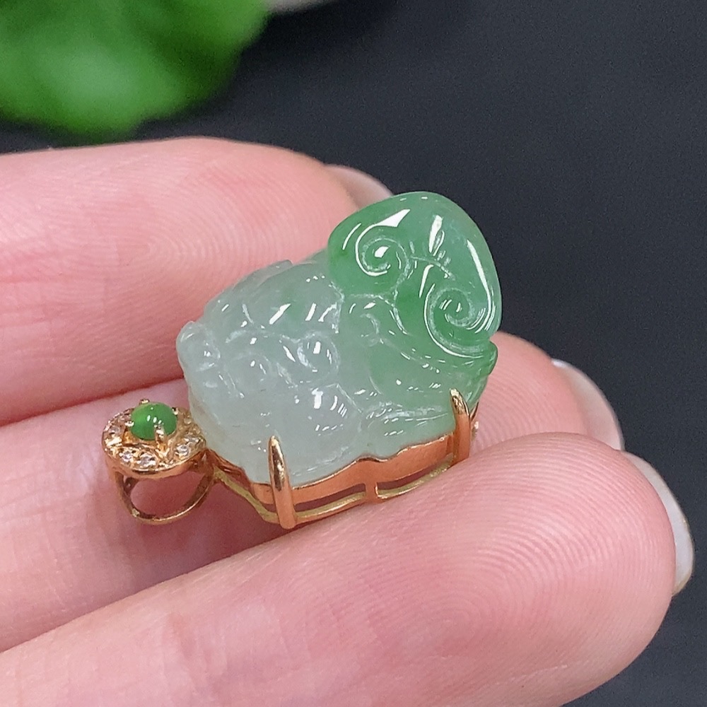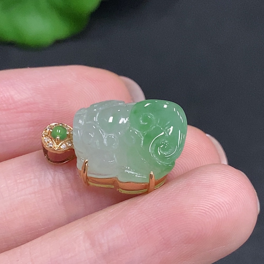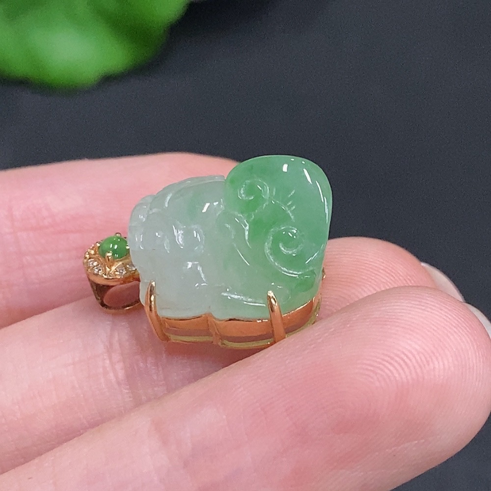 Jadeite Pi Xiu Inlaid Pendant 18K Gold Total Weight Approx. 3.8g With Diamond Accents