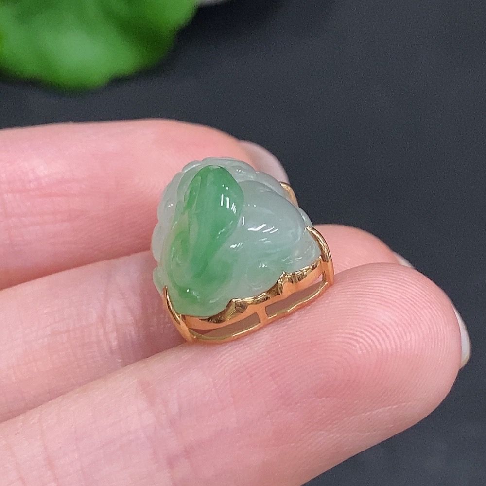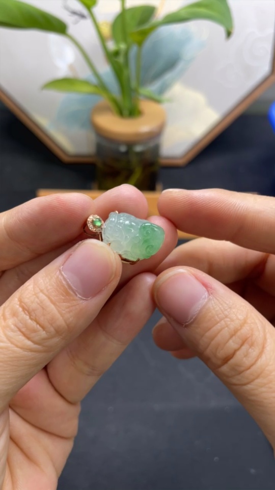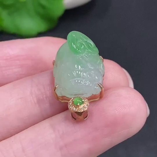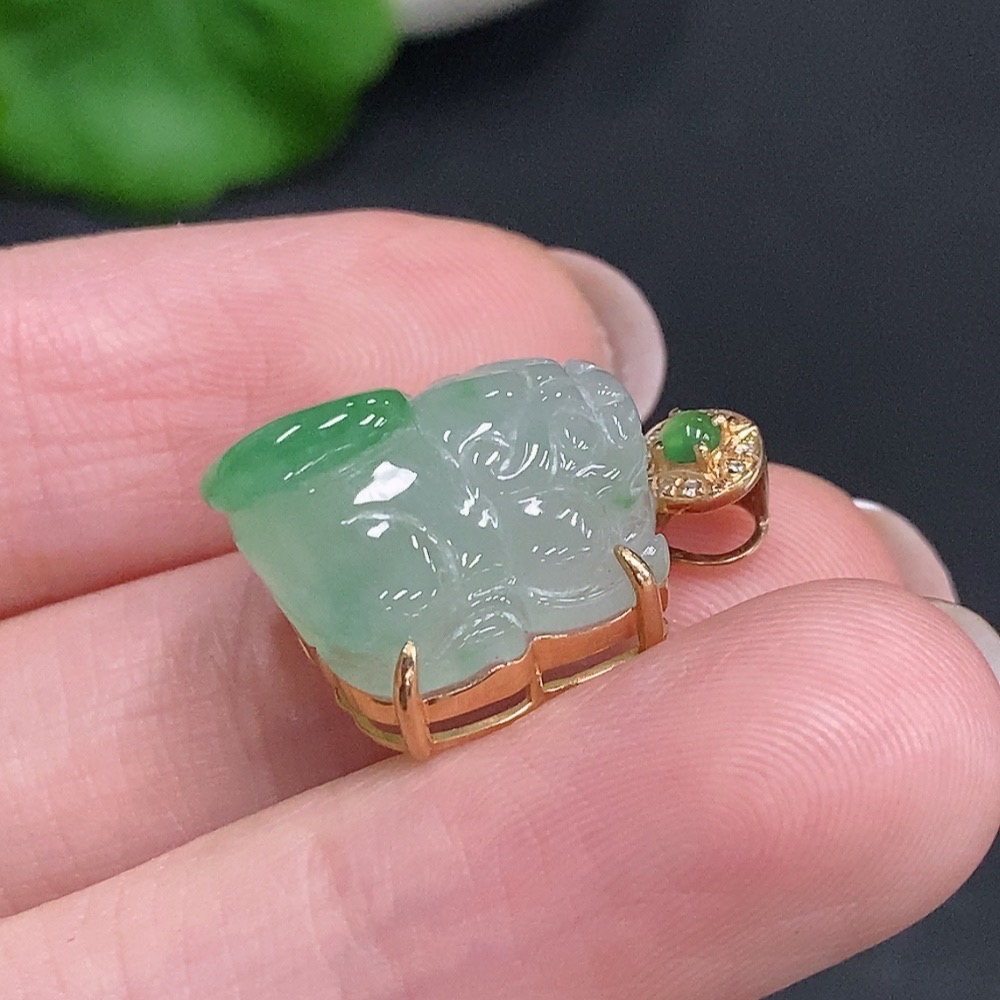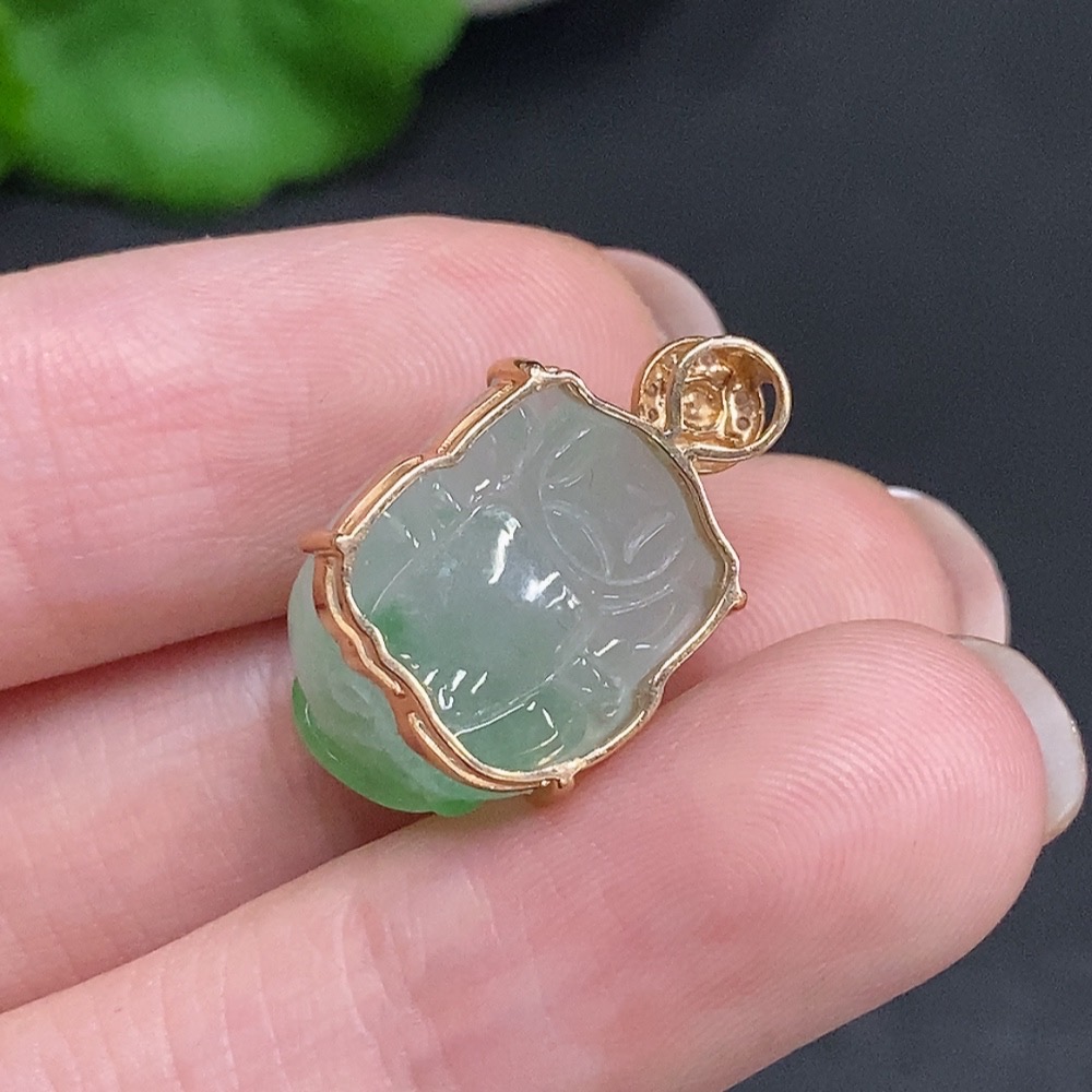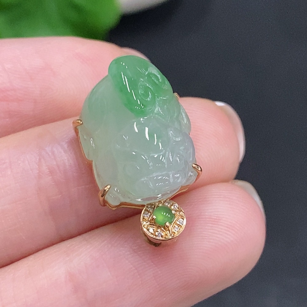 Jadeite Pi Xiu Inlaid Pendant 18K Gold Total Weight Approx. 3.8g With Diamond Accents