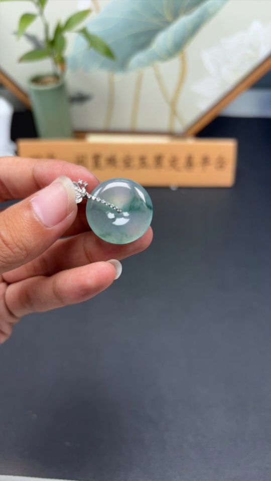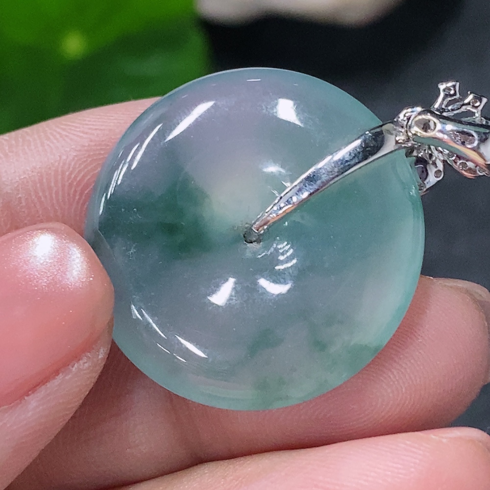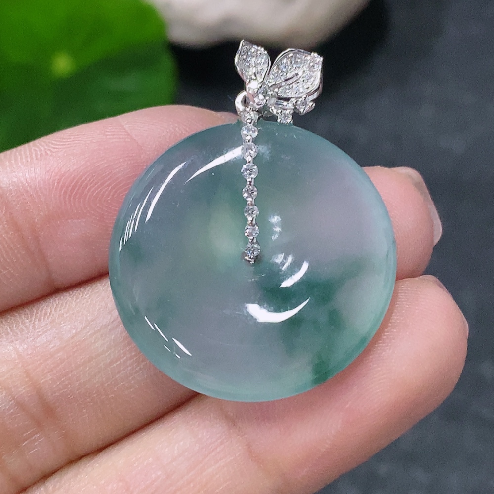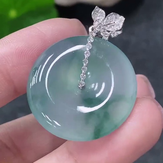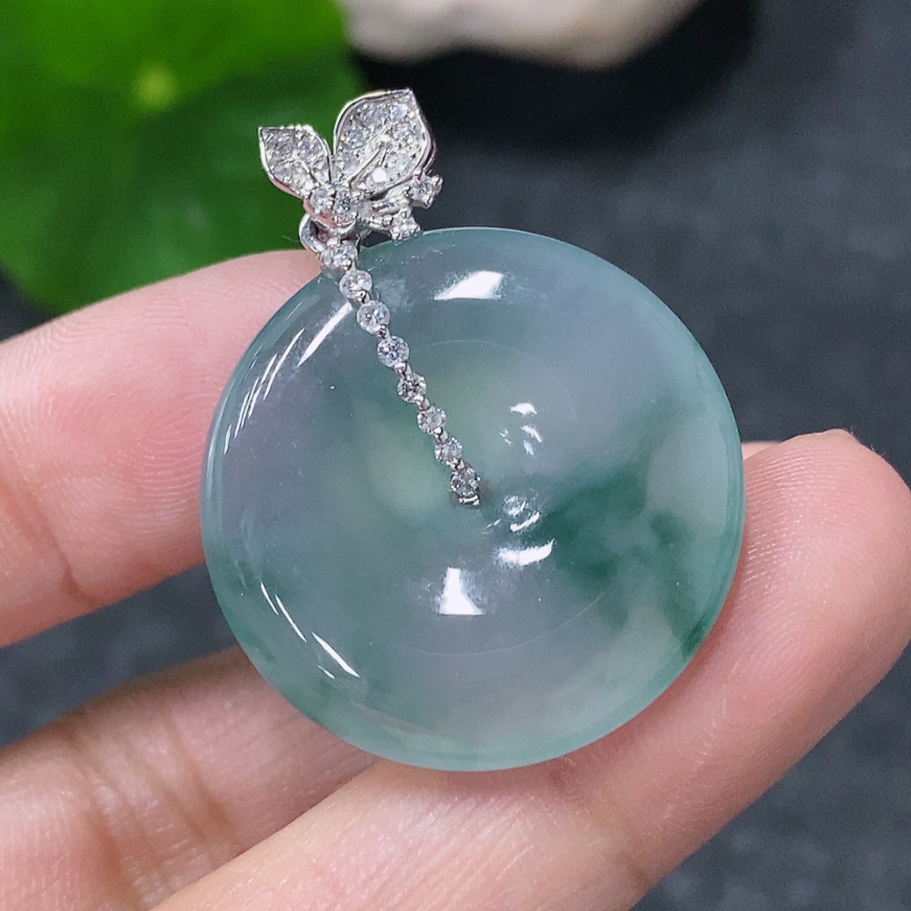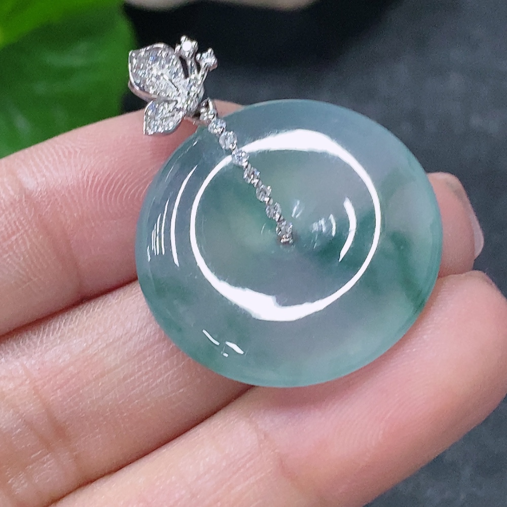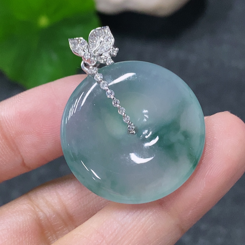 Jadeite Pendant Peace Buckle with 18K Gold and Diamond Accent, Total Weight Approx. 7.6g