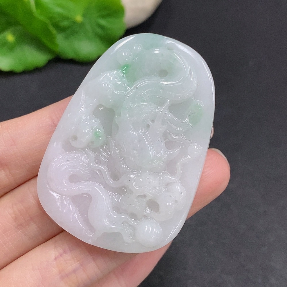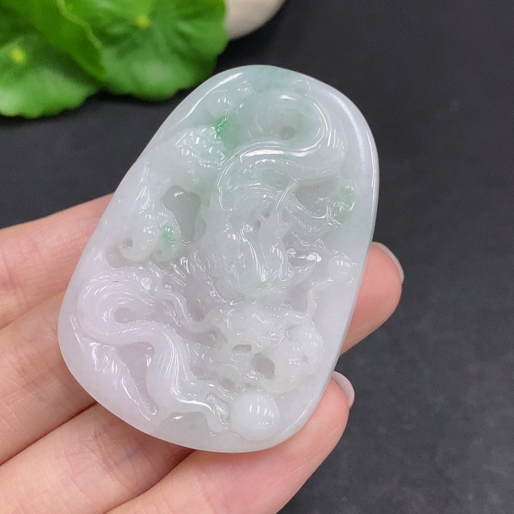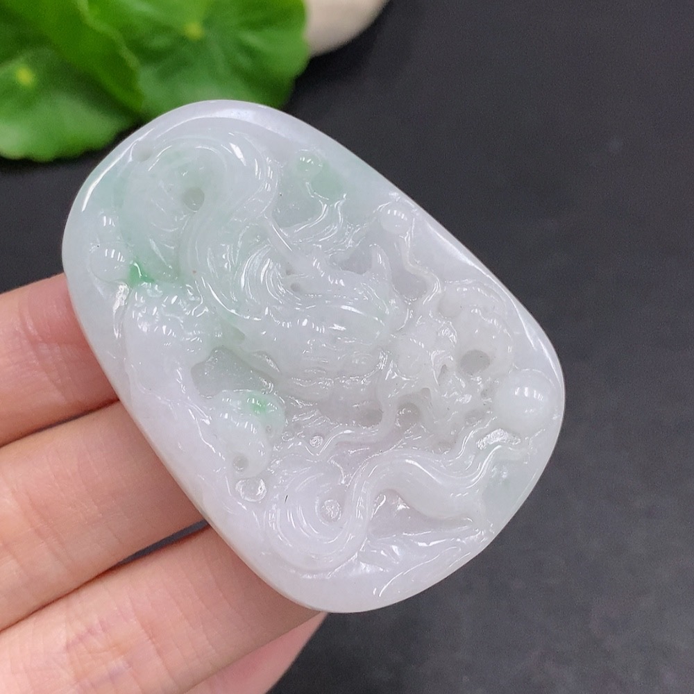 Jadeite Dragon Soaring Across the Seas Pendant Total Weight Approximately 32.3 Grams