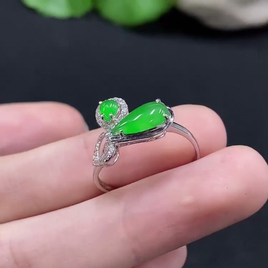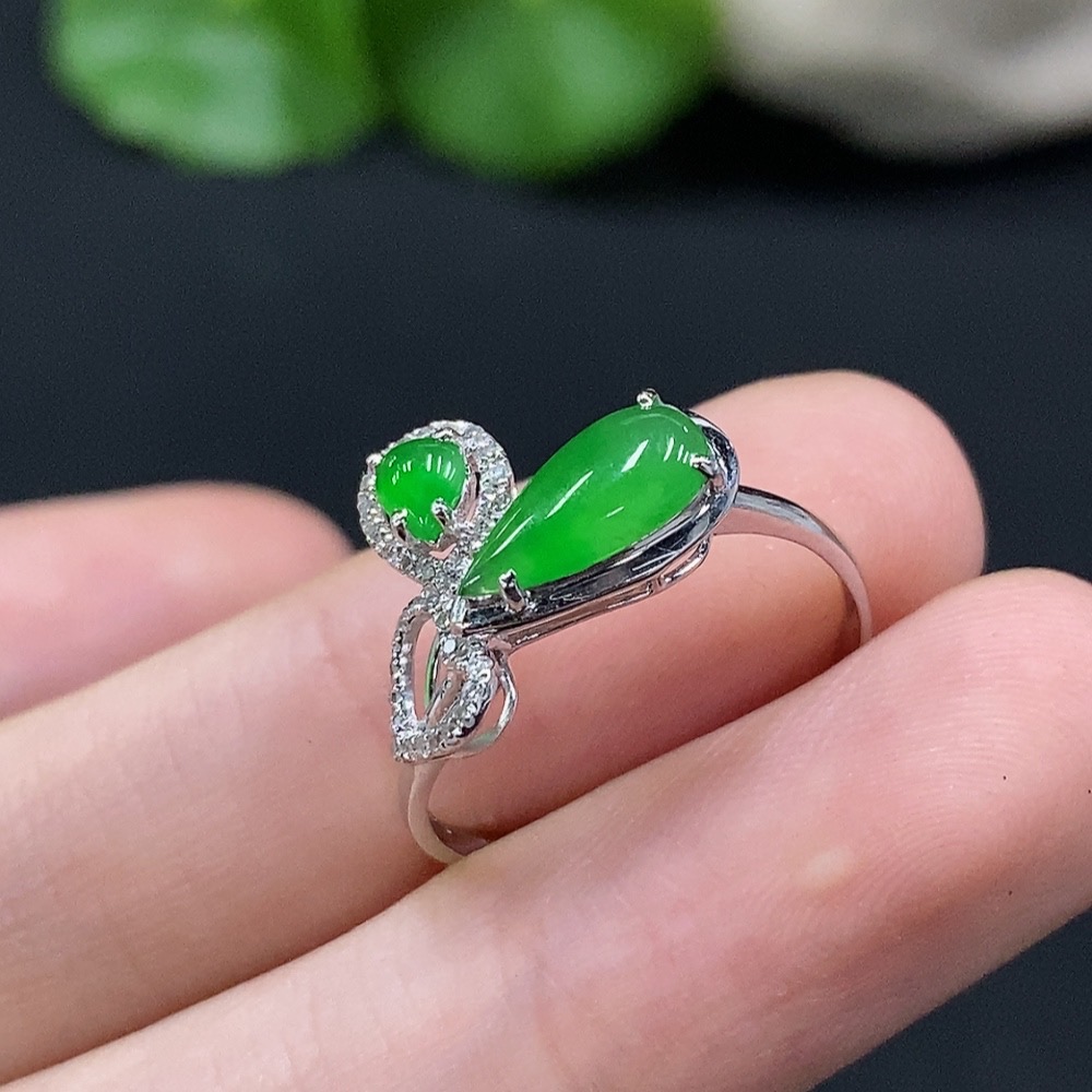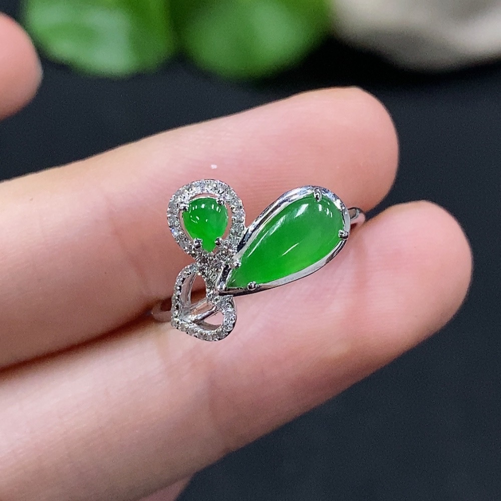 Jadeite Inlaid Ring Size 14 18K Gold Total Weight Approx. 1.7g (With Diamond Accents)