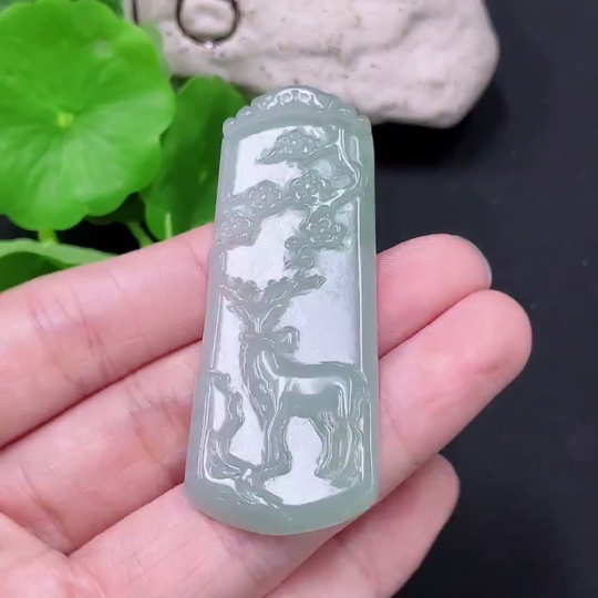 Jadeite Deer Pendant Total Weight Approx. 15.9g