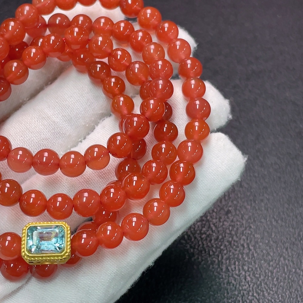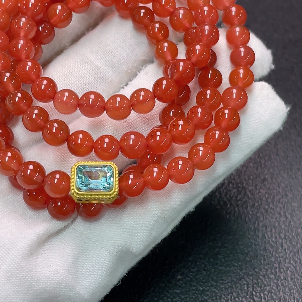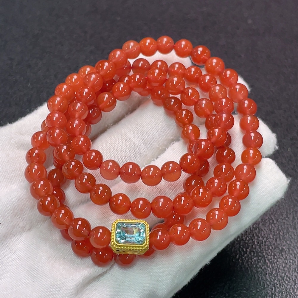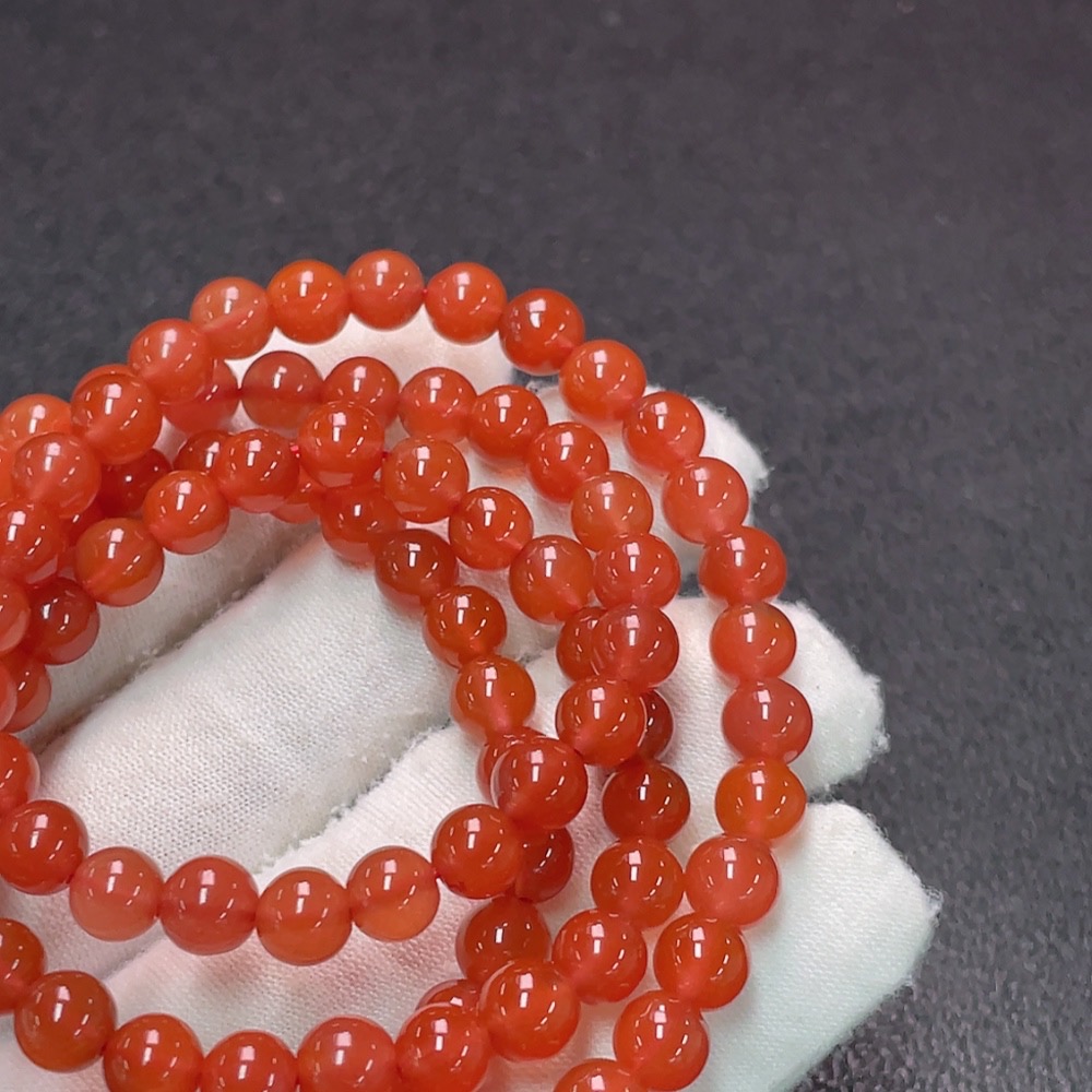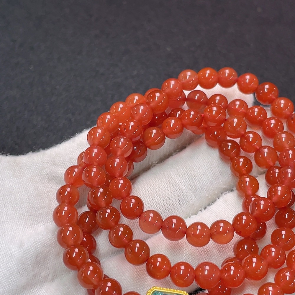Red Agate Bead Strand with Visible Organic Matter, Topaz Accents, Undetermined Color Origin, Non-Gold, Total Weight Approx. 44.16g, 6.5mm Beads