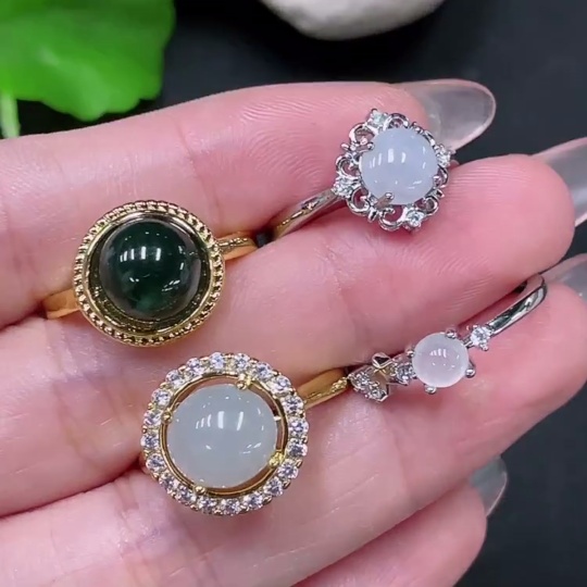 Jadeite Inlaid Piece Non-Gold Adjustable Sell as a Lot