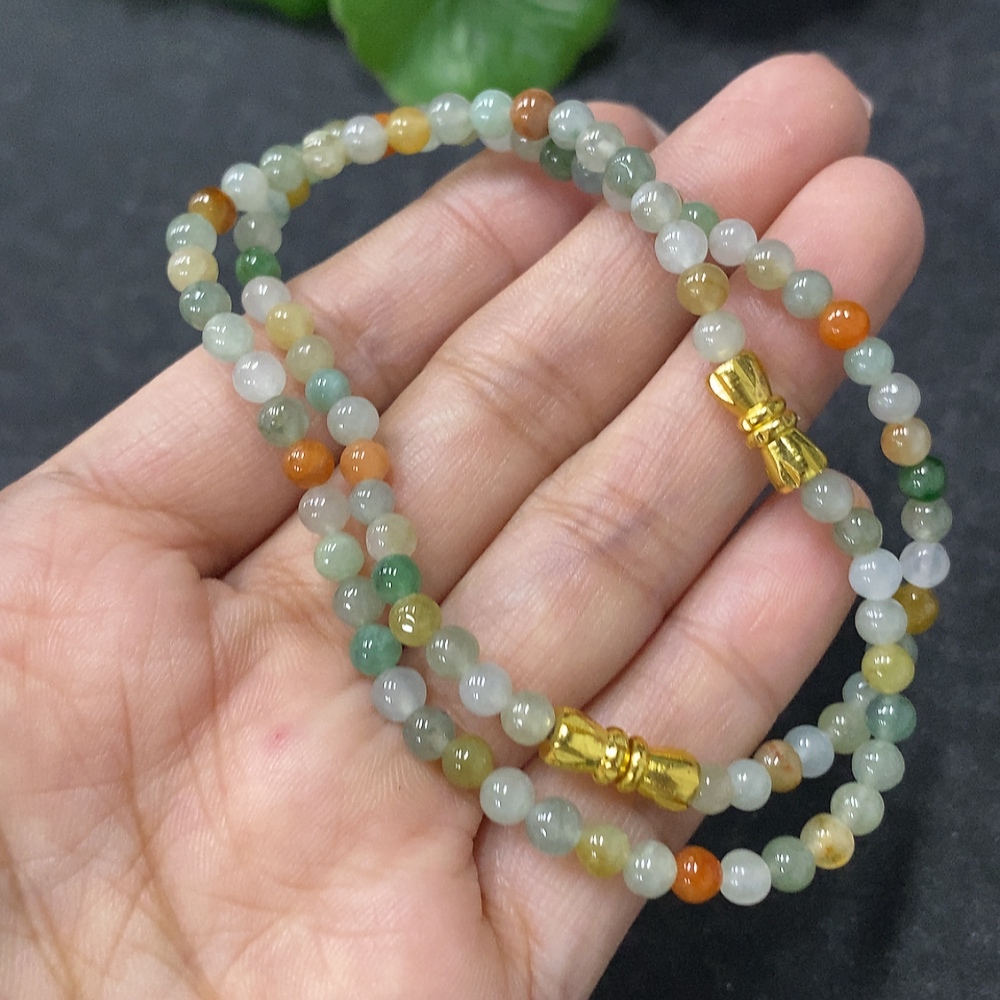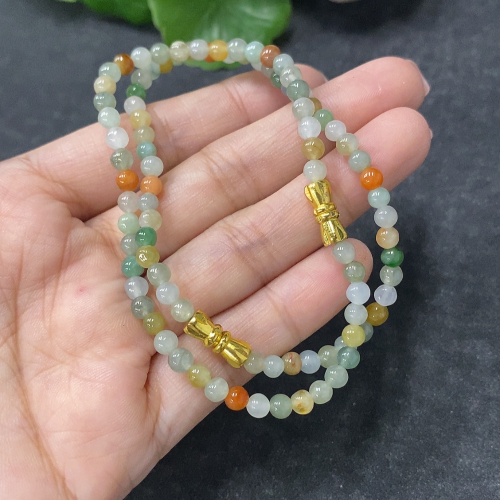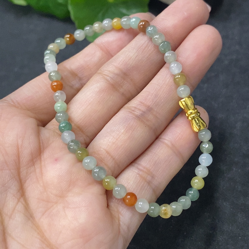 Jadeite Bracelet Sell as a Lot Non-Gold Partially Yellow-Red Color Origin Undetermined