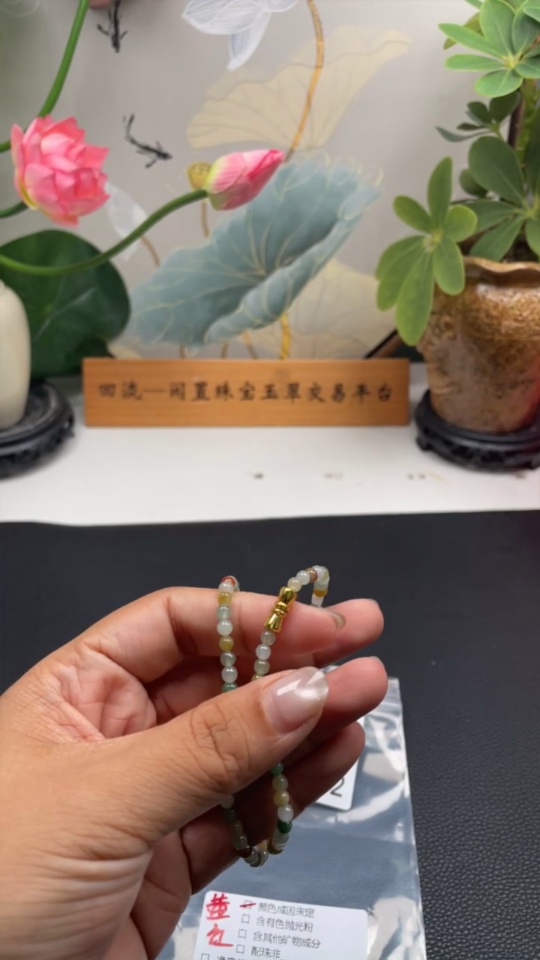 Trezaar - Jadeite Bracelet Sell as a Lot Non-Gold Partially Yellow-Red Color Origin Undetermined
