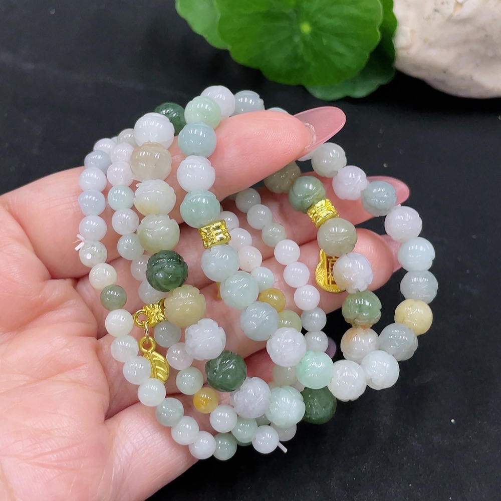Jadeite Bracelet Sell as a Lot (Non Gold Inlaid) (Yellow Part Color Origin Undetermined)