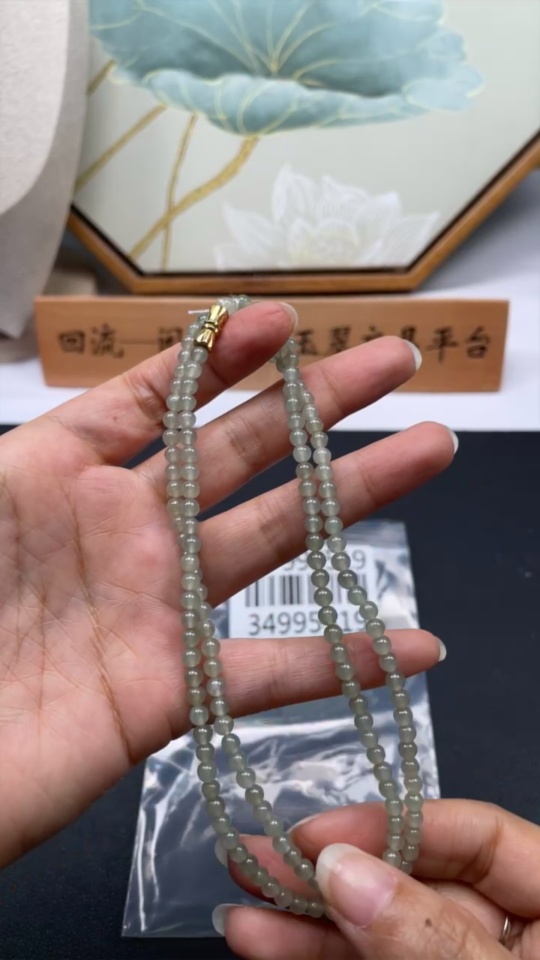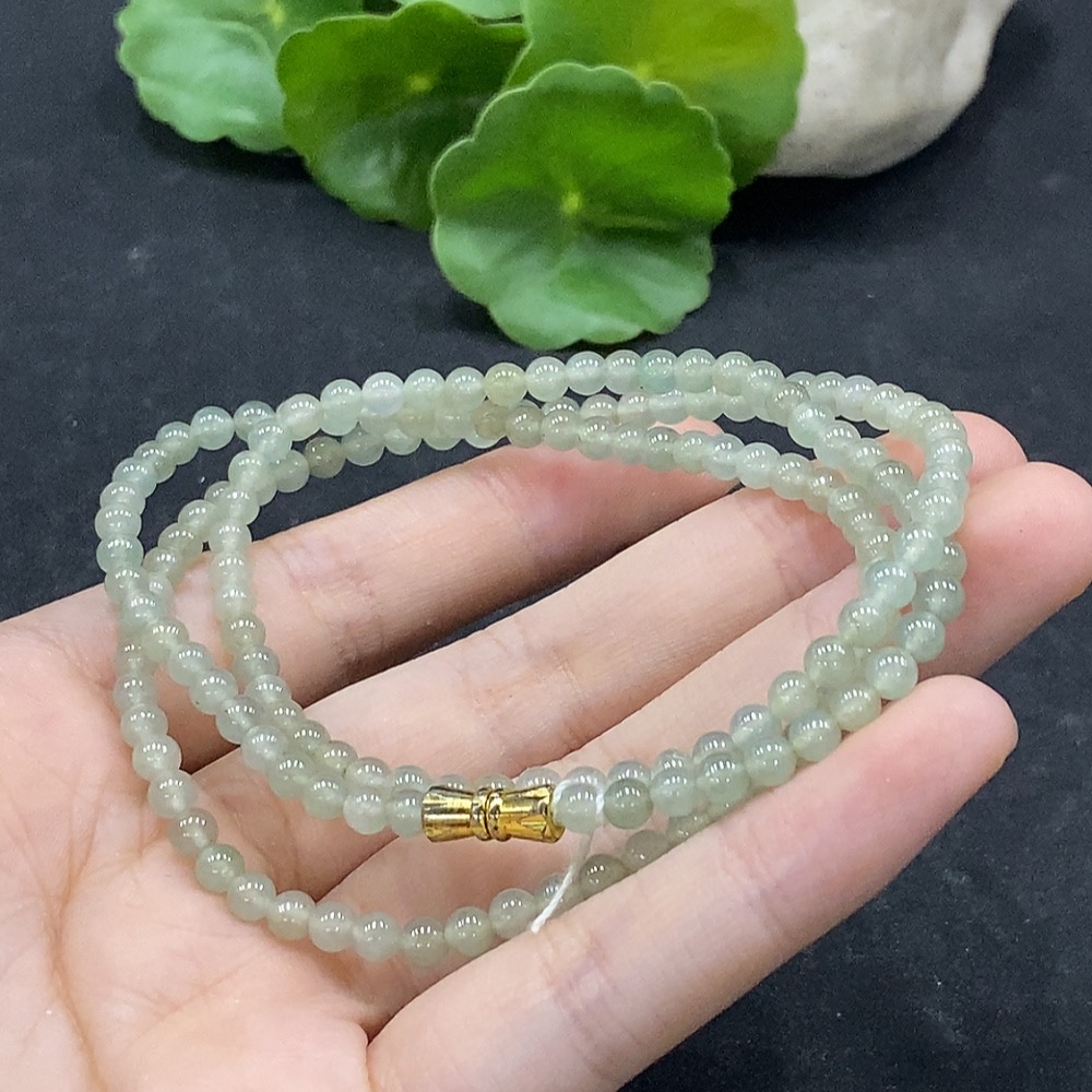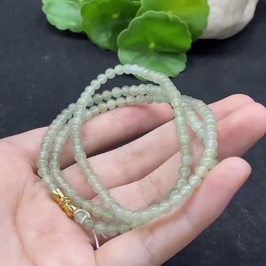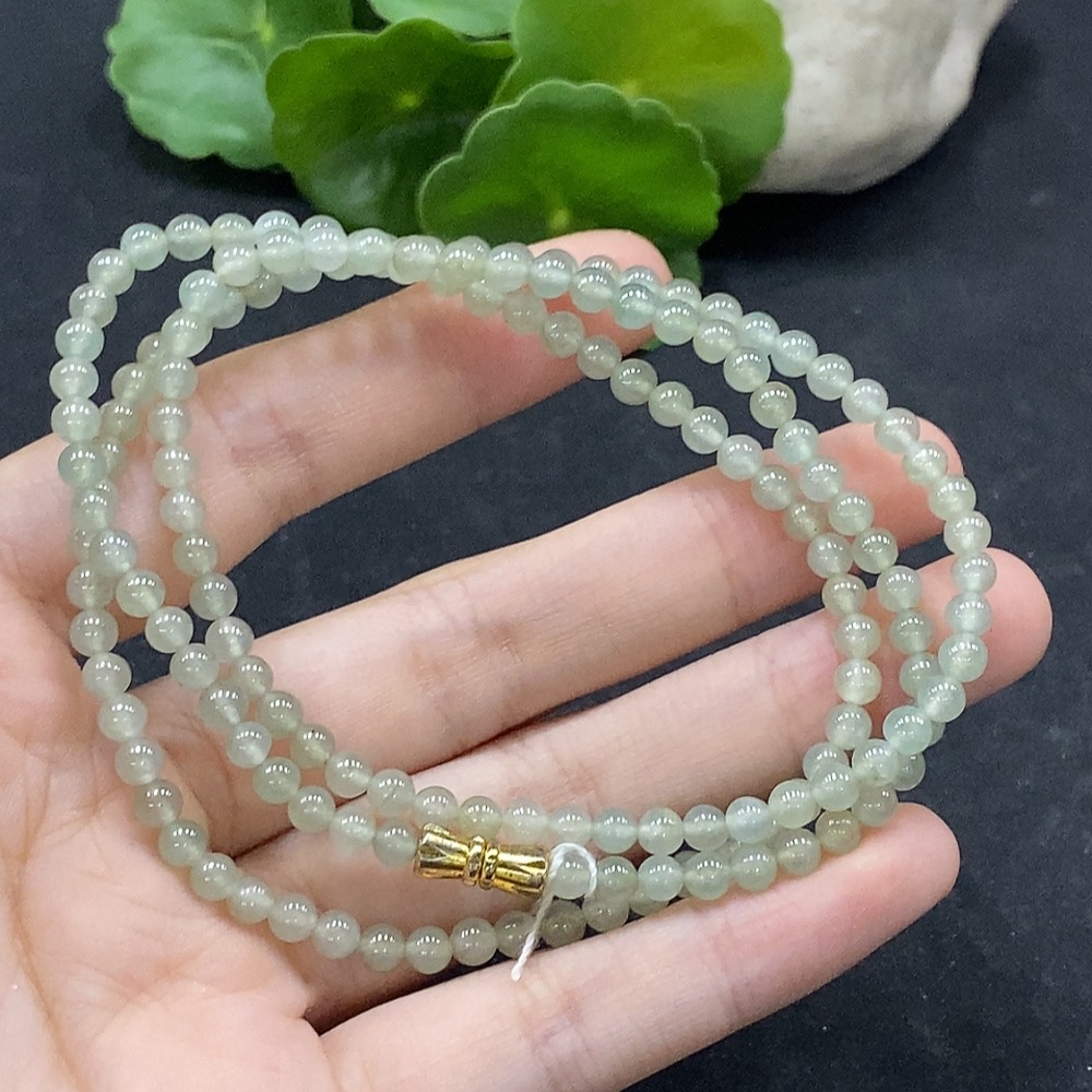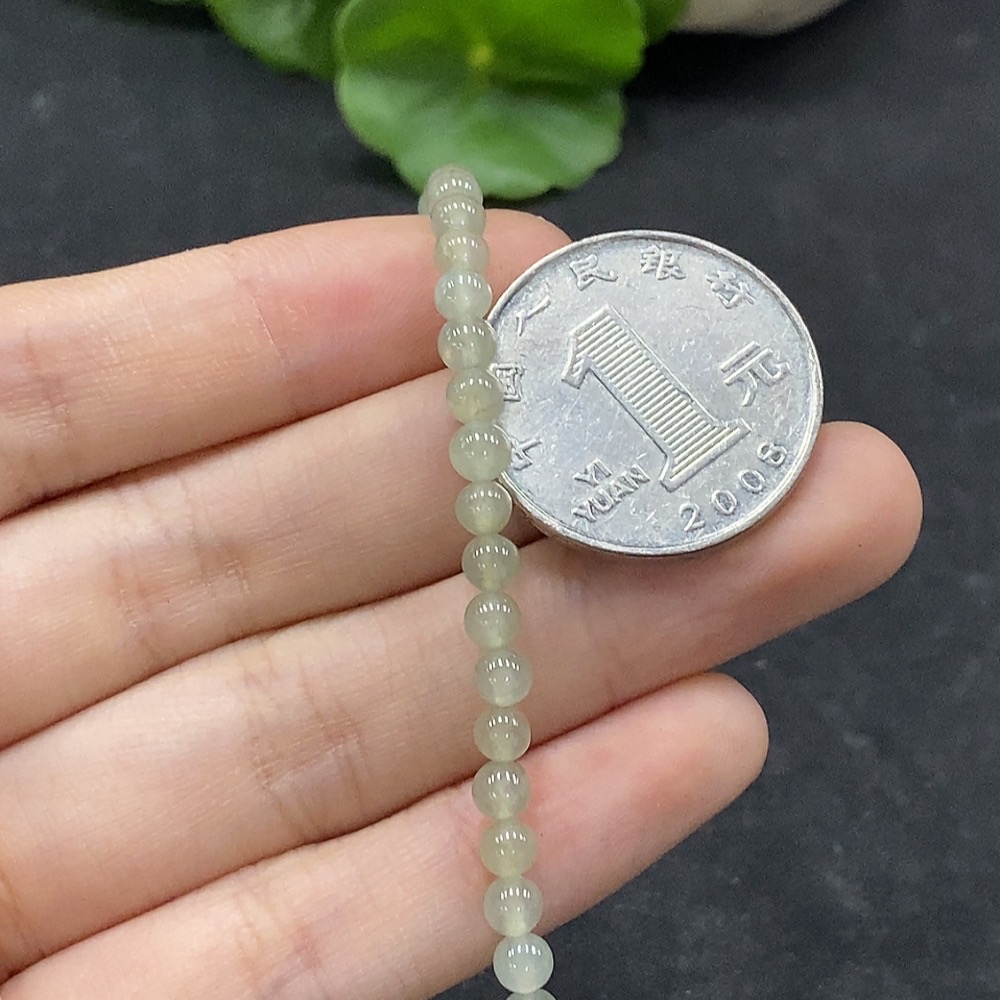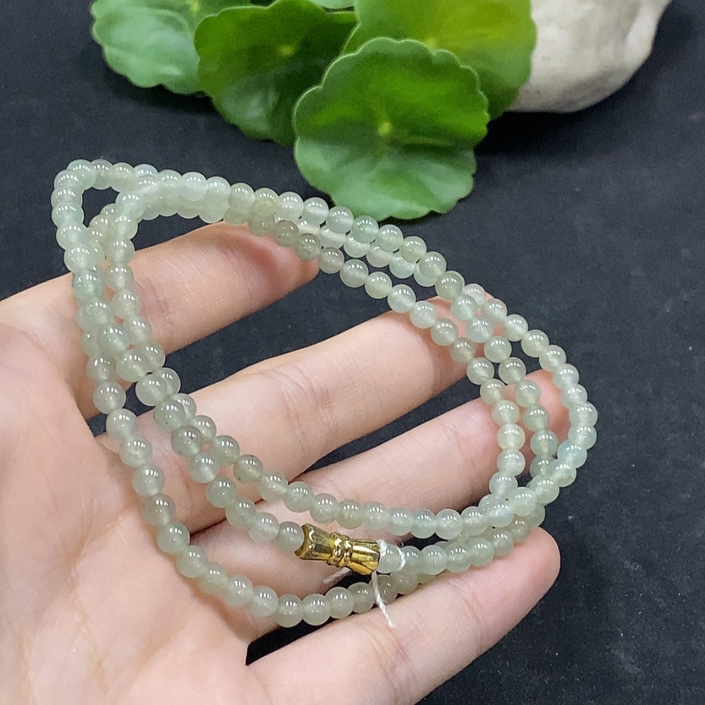 Jadeite Bead Necklace Approximately 4mm Non-Gold Set Total Weight About 17.58g