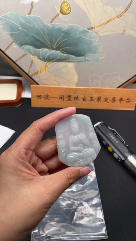 Jadeite Guanyin Pendant, Total Weight Approx. 28.3g