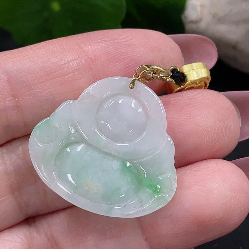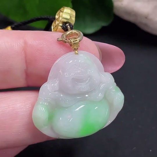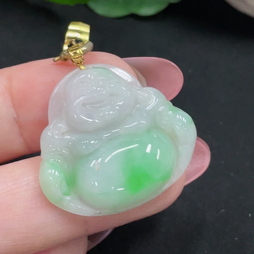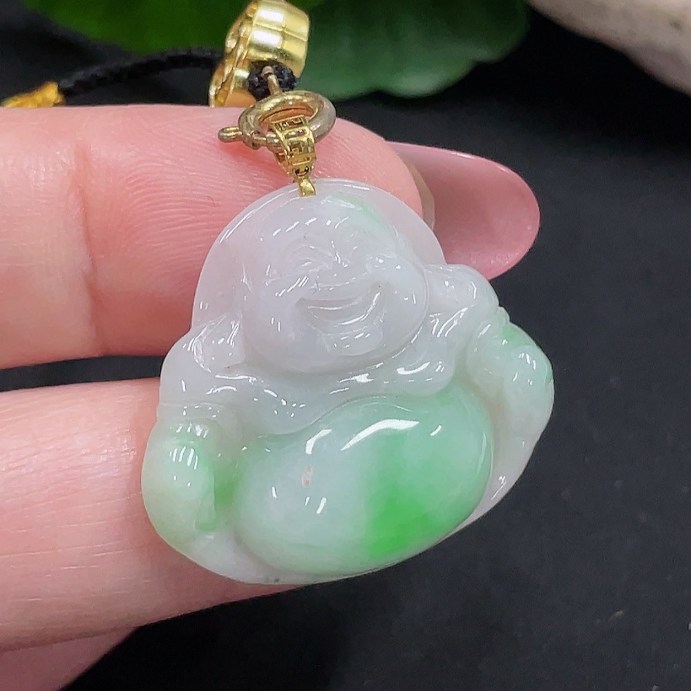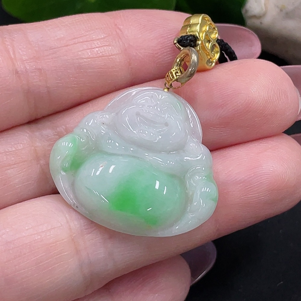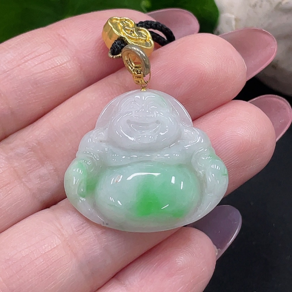 Jadeite Buddha Pendant with 18K Gold, Total Weight Approx. 5.2g (Excluding Rope)