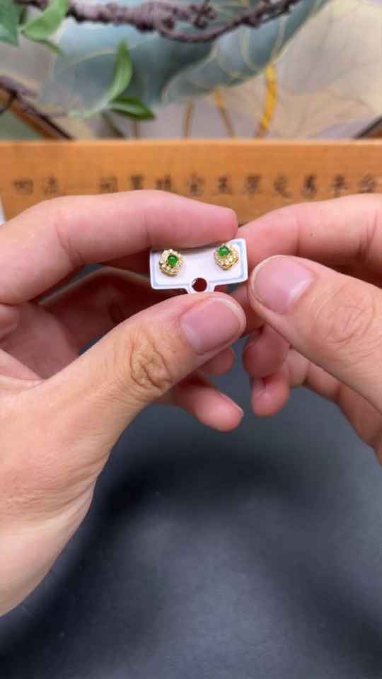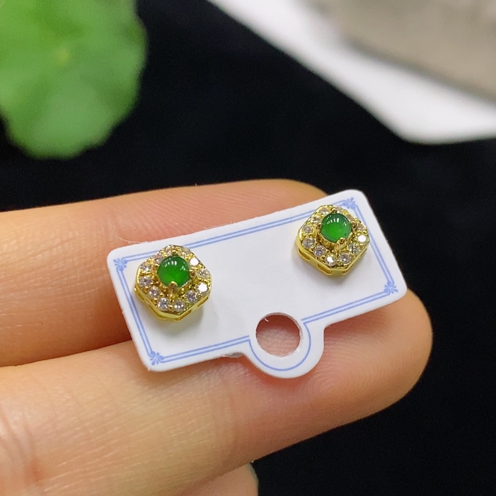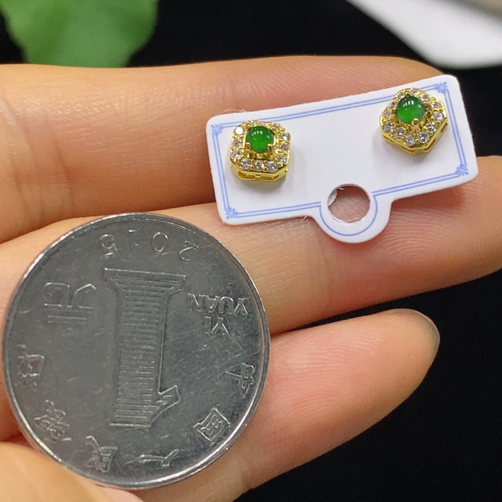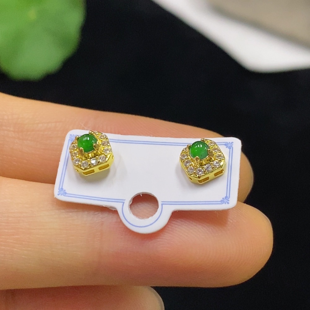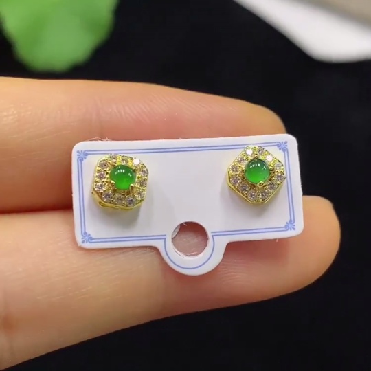 Jadeite Inlaid Earrings Non-Gold Total Weight Approx. 0.9g