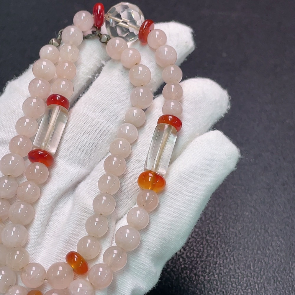 Crystal Bead Necklace with Non-Natural/Non-Gold Accent Stones, Total Weight Approx. 34.23g, Bead Size 13.3mm