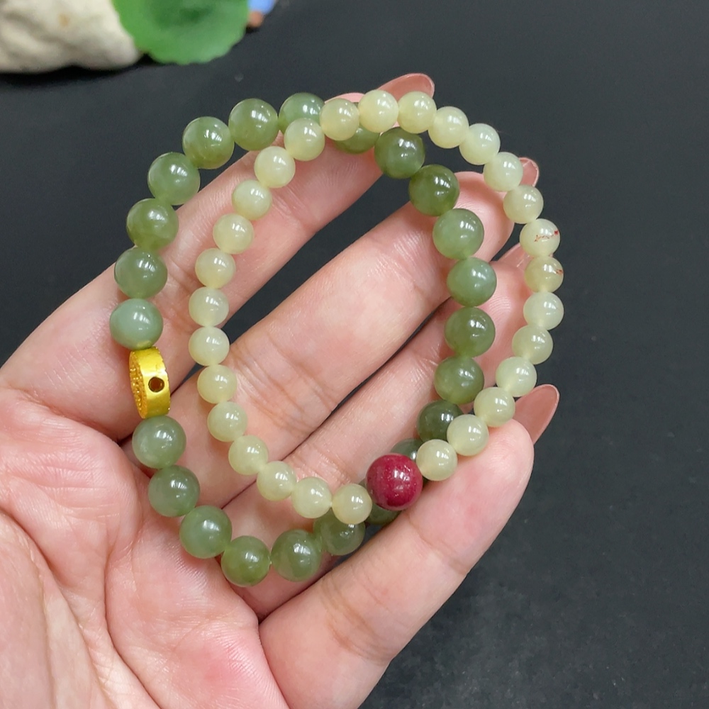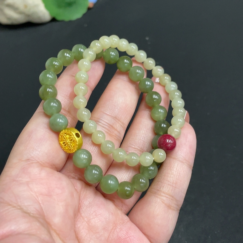 Hetian Jade Bracelet Card 7.3mm Approx. Total Weight 27.2g Non-Gold