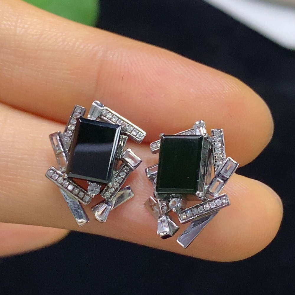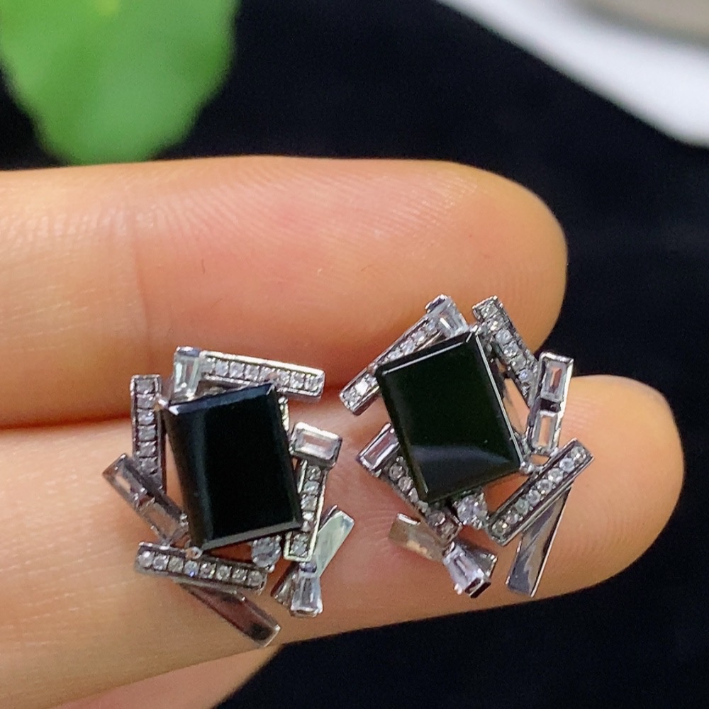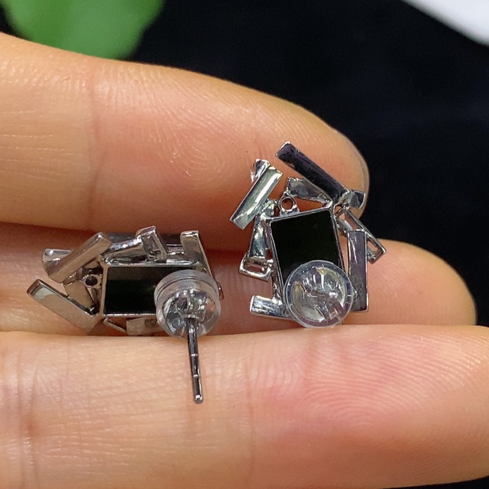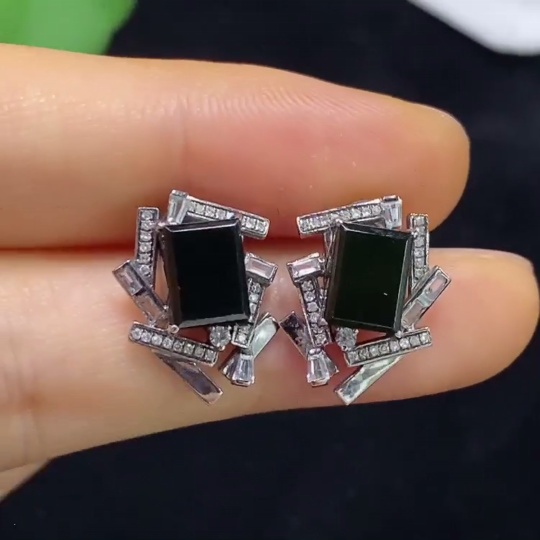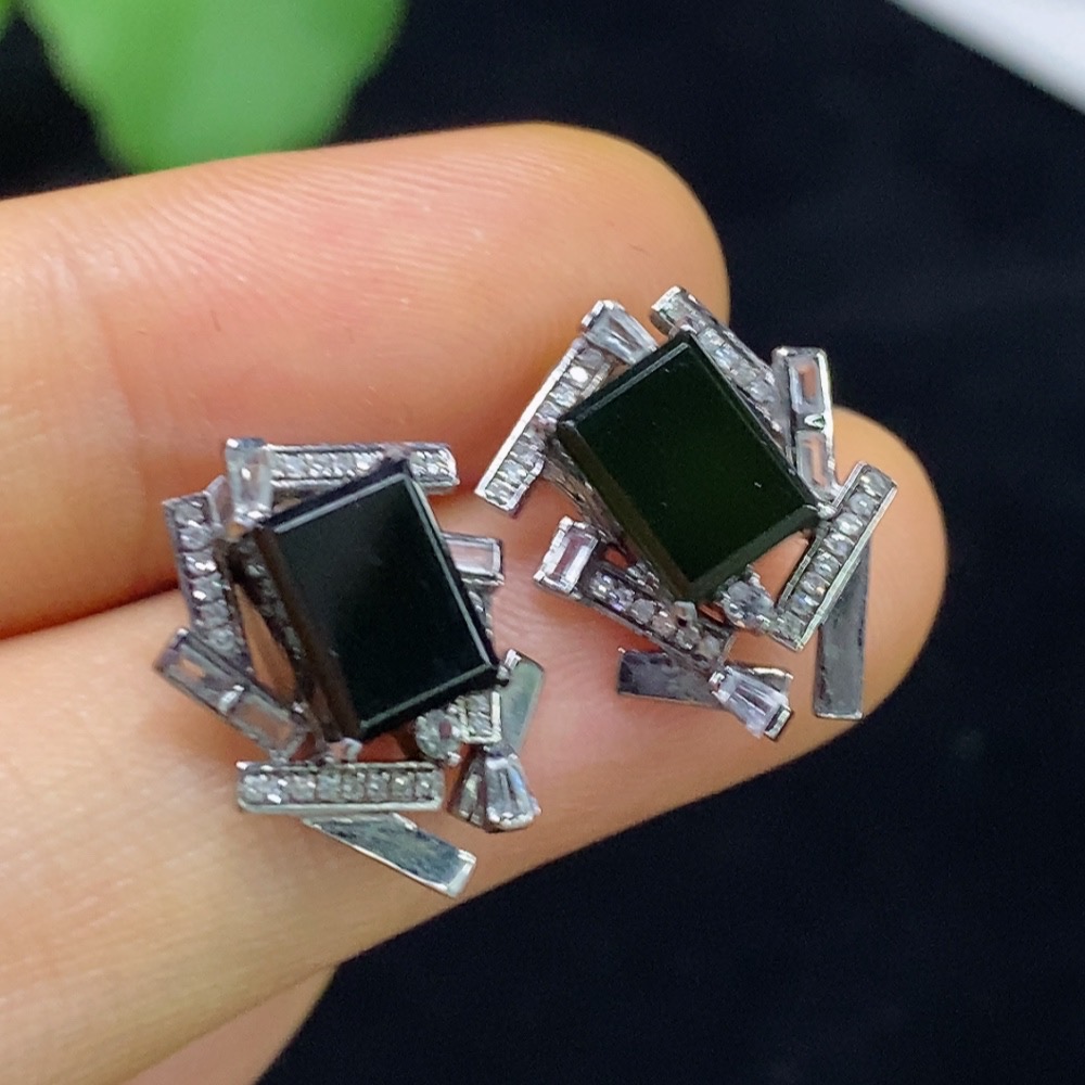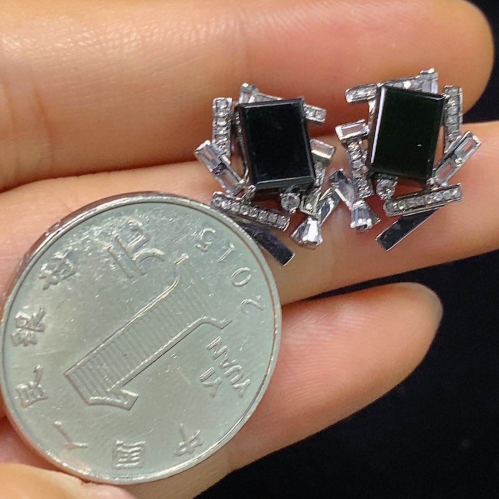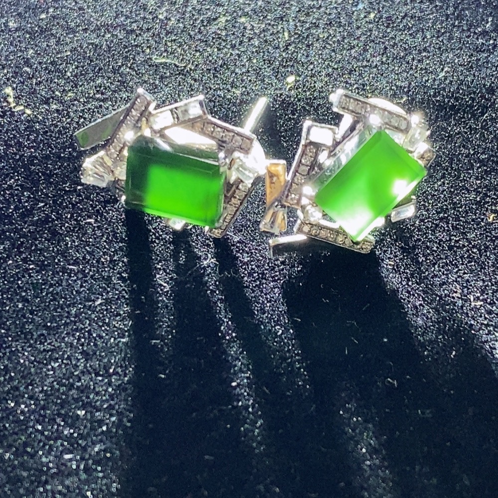 Jadeite earrings AU70% with diamond accents (smallest accent stones only) total weight approx. 3.2g (excluding ear caps)