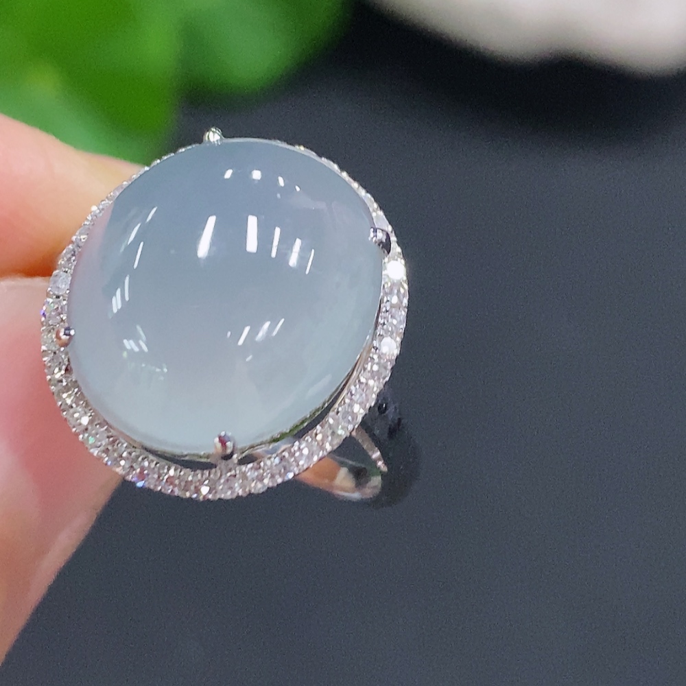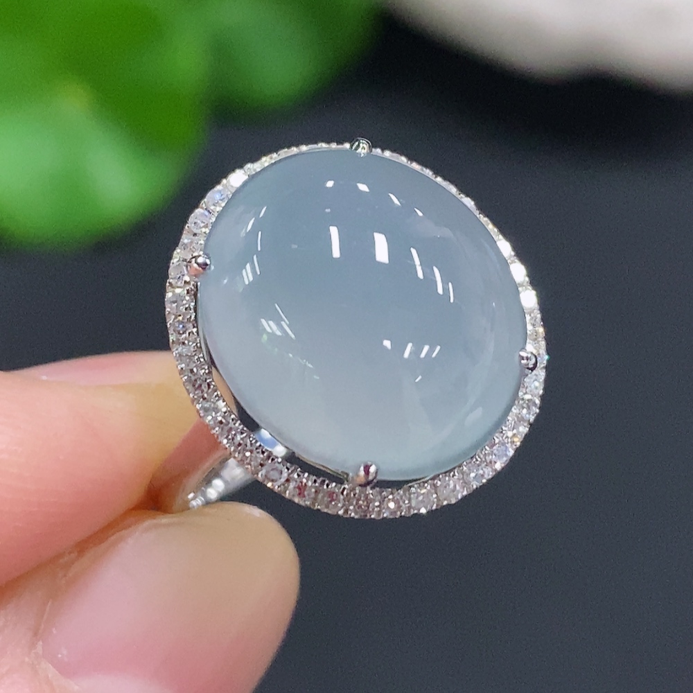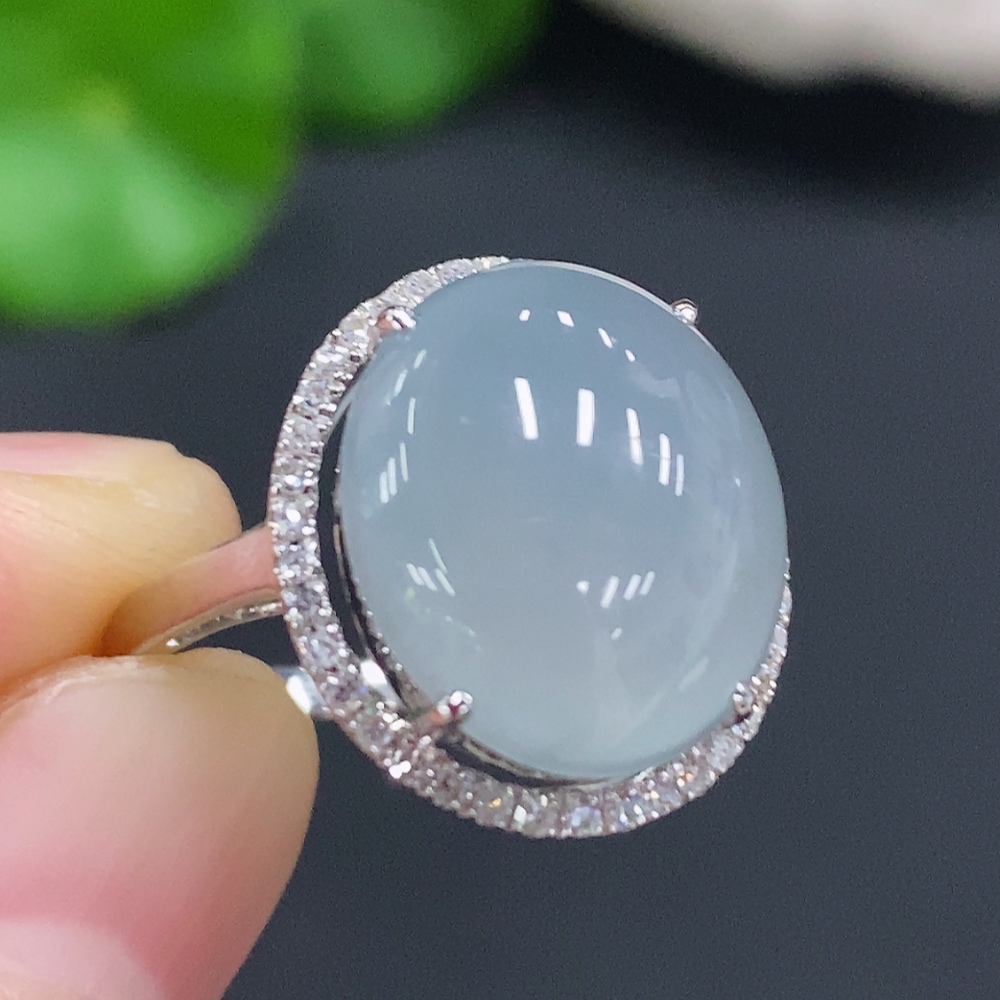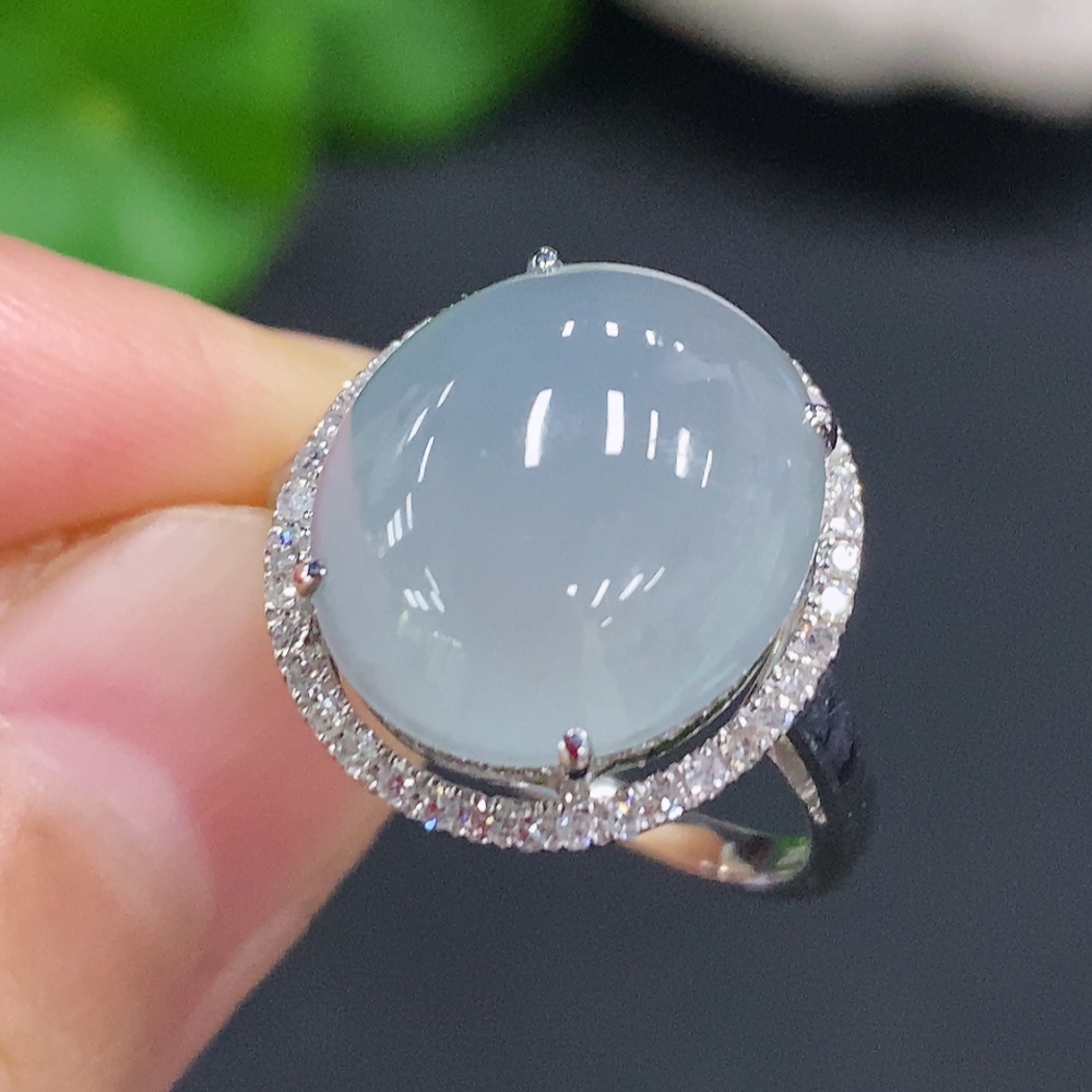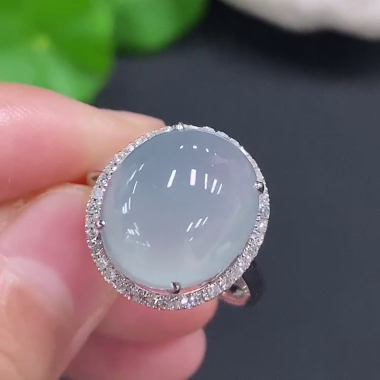Jadeite Cabochon Inlaid Ring 18K Gold Size 14 Total Weight Approx. 4.9g (With Diamond Accents)