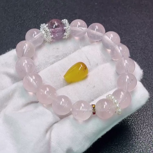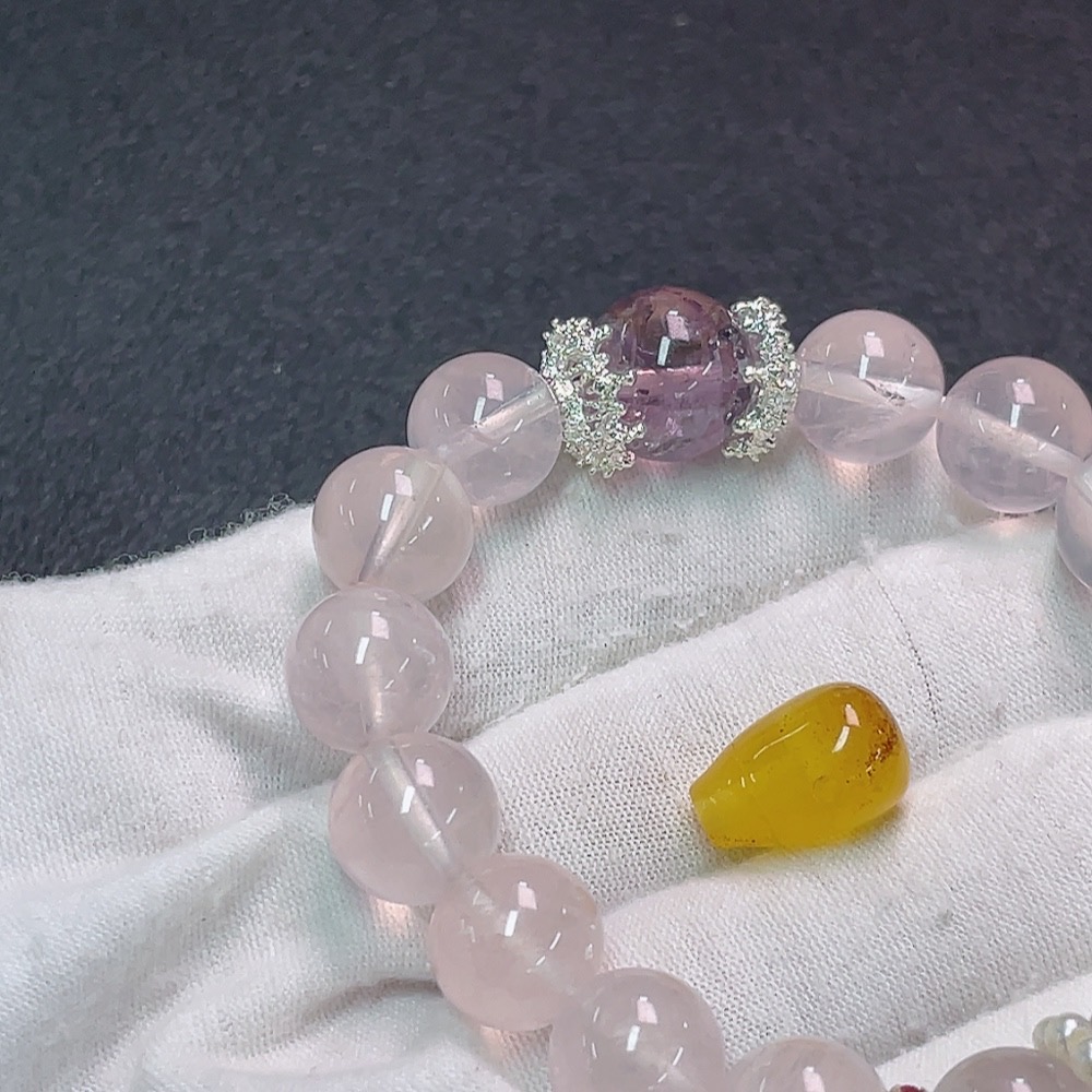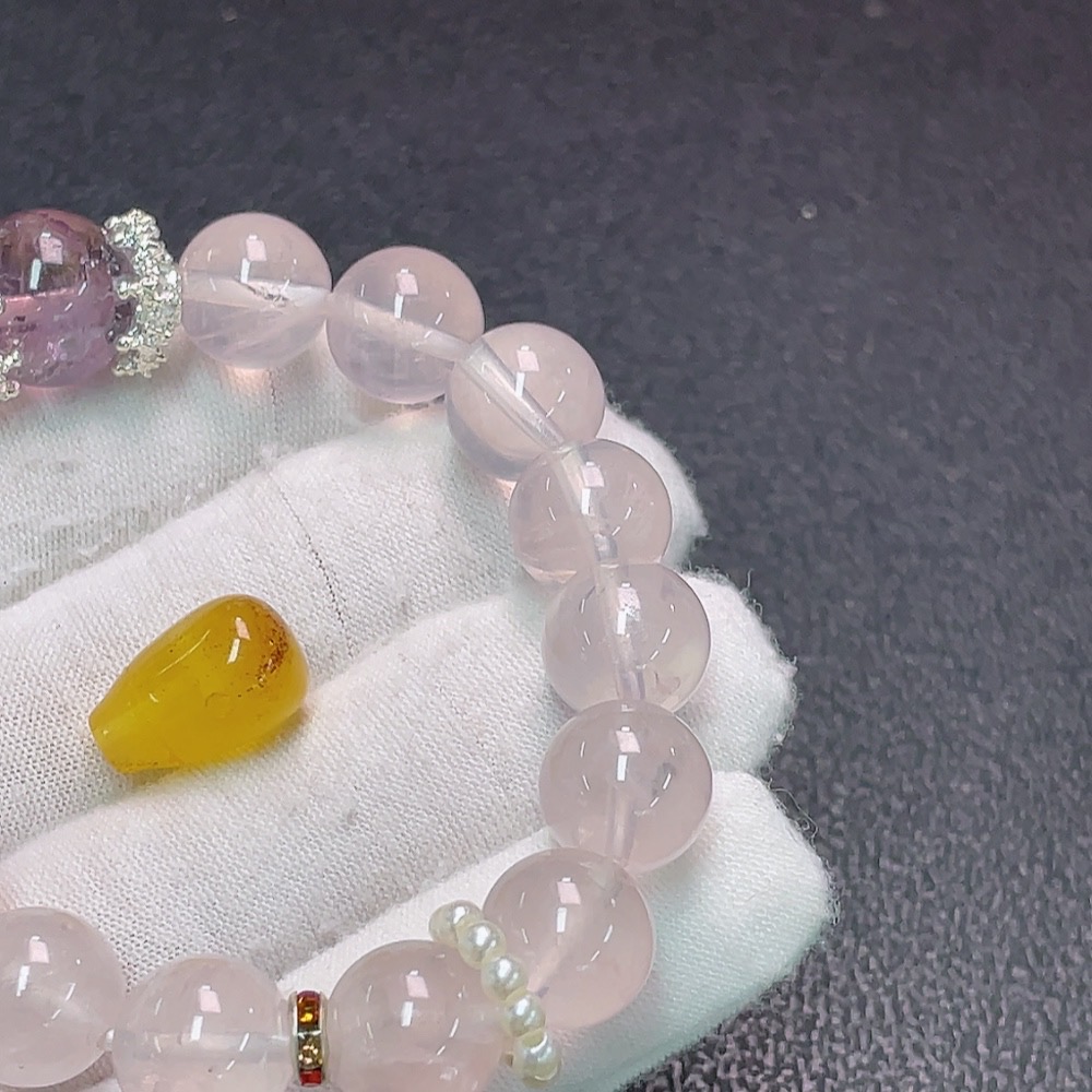 Amber Beeswax Three-way Bead + Crystal Bracelet (stones may be non-natural, non-gold, total weight approx. 34.74g, sell as a lot)