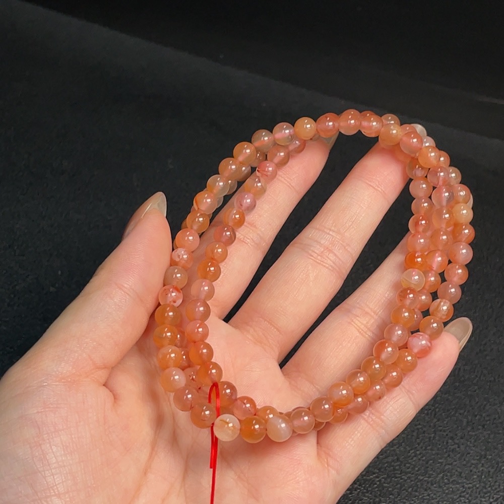 South Red Agate Bead Necklace with Visible Organic Matter, Total Weight 37.3g, Approx. 5.6mm