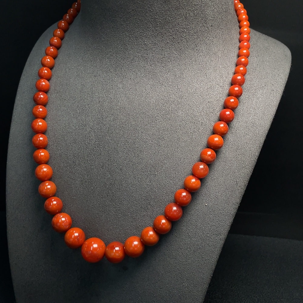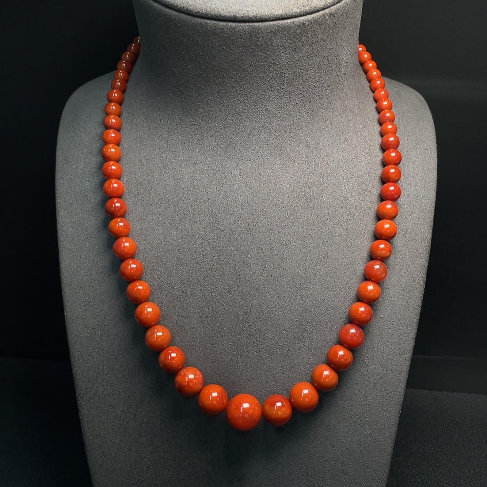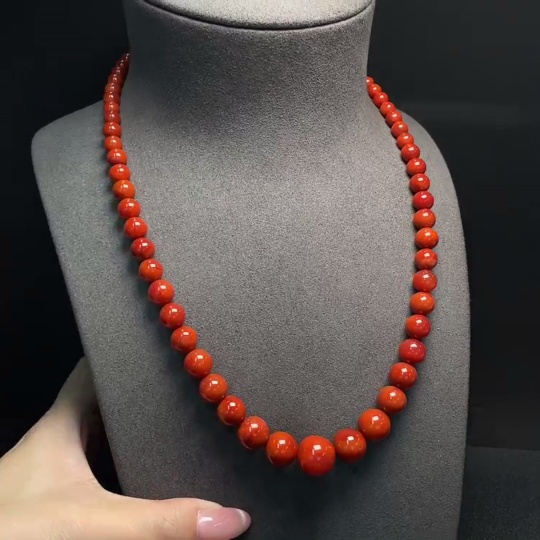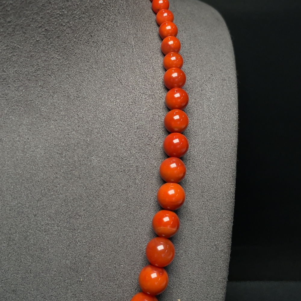 South Red Agate Bead Necklace with Visible Organic Matter, Total Weight Approximately 53.62g, Bead Size 5.3-14.1mm, Non-Gold