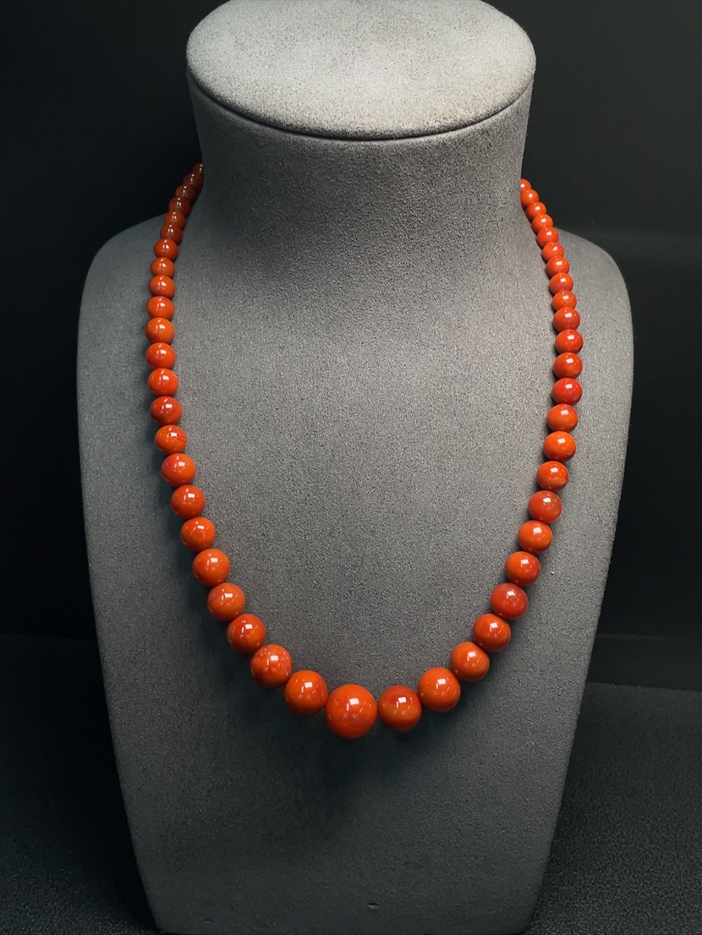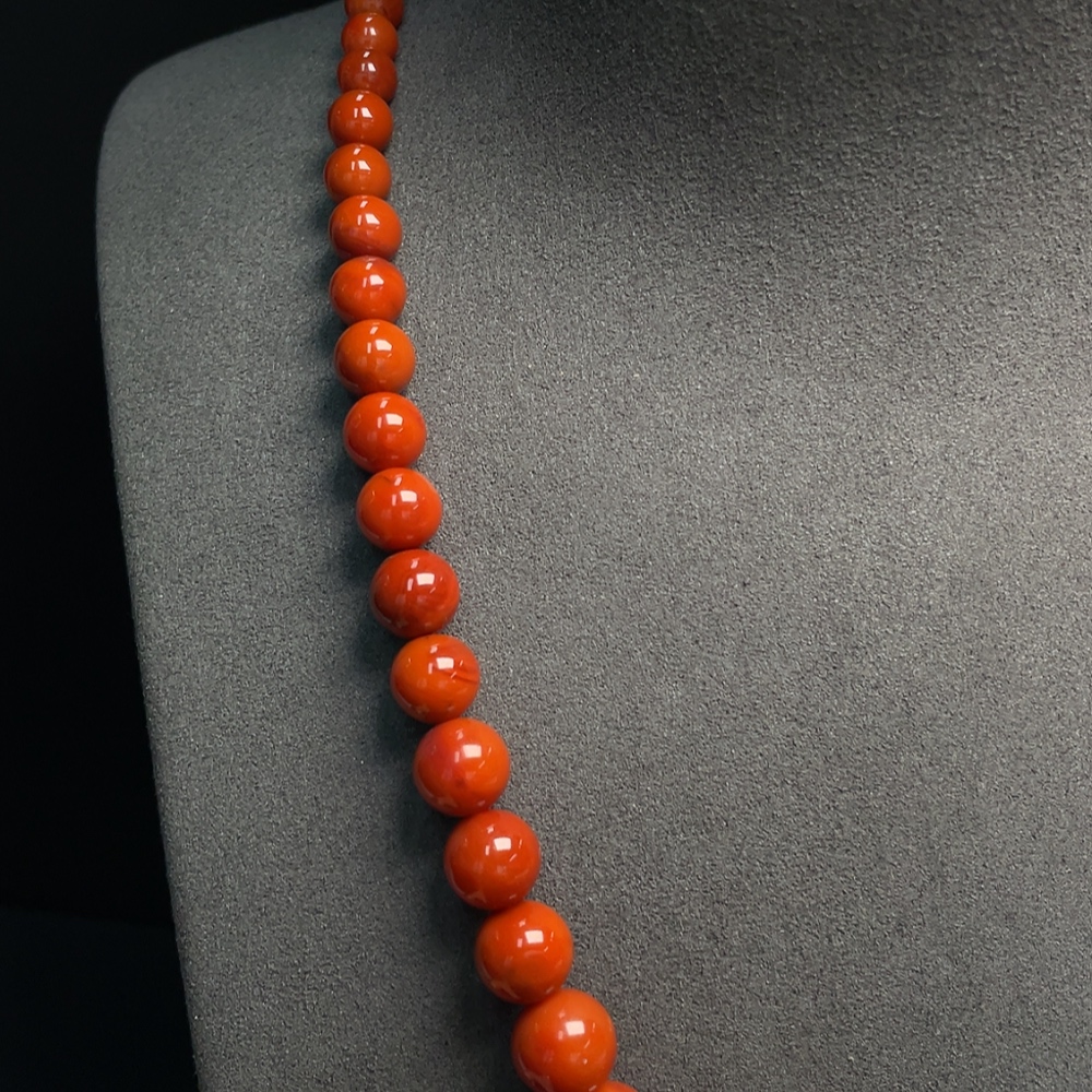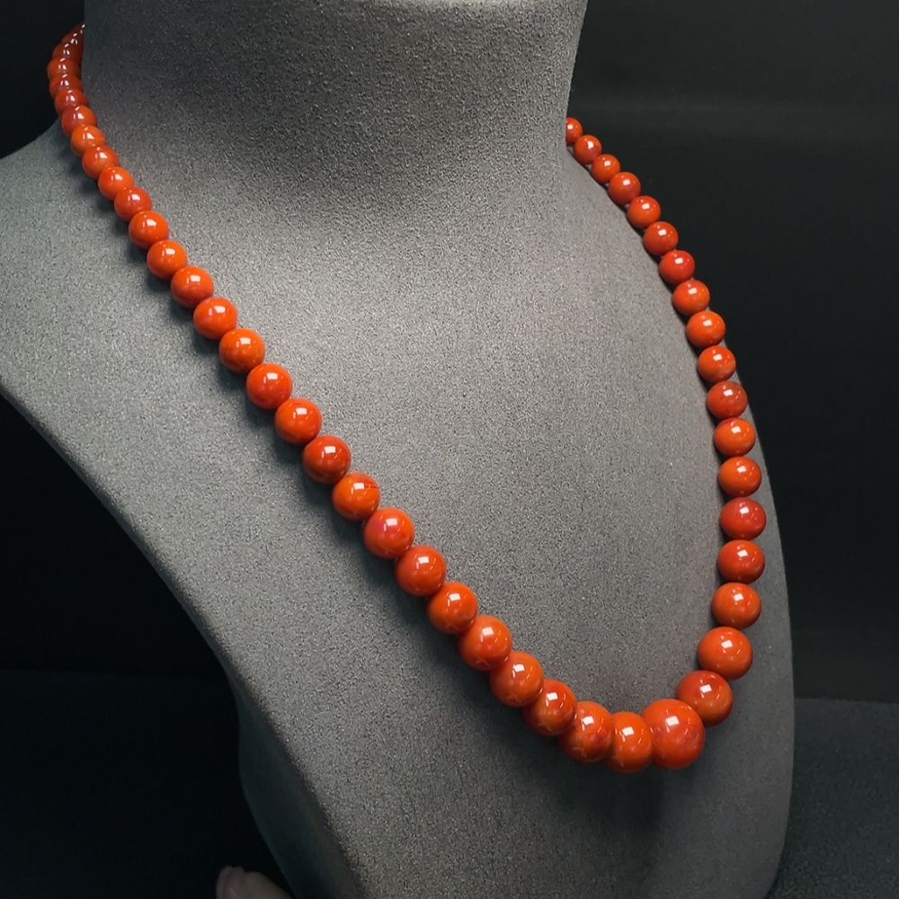 South Red Agate Bead Necklace with Visible Organic Matter, Total Weight Approximately 53.62g, Bead Size 5.3-14.1mm, Non-Gold
