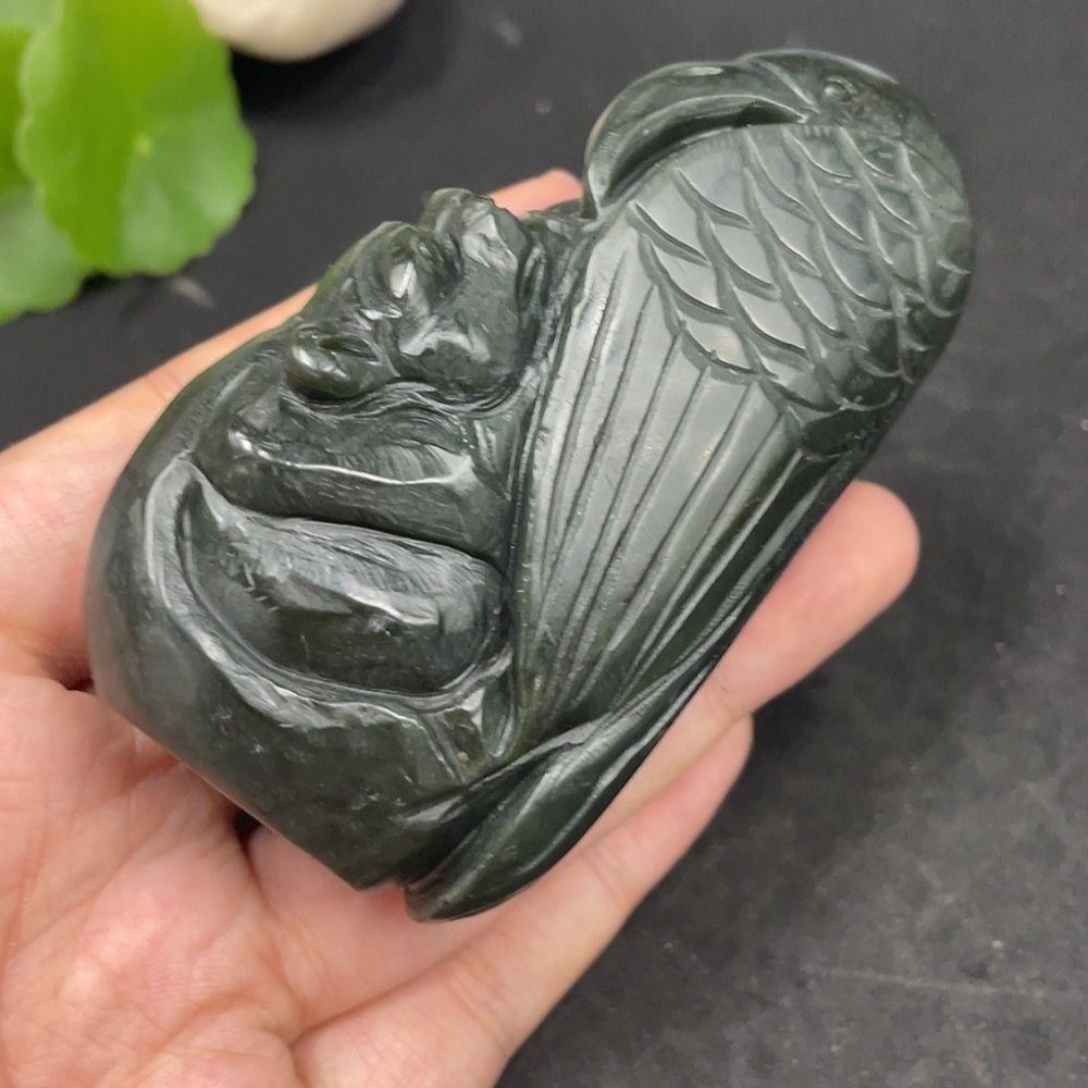 Hetian Jade Handheld Piece - Seize the Opportunity, Total Weight Approx. 203.8g