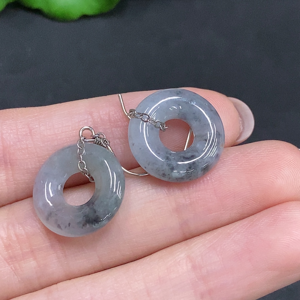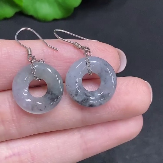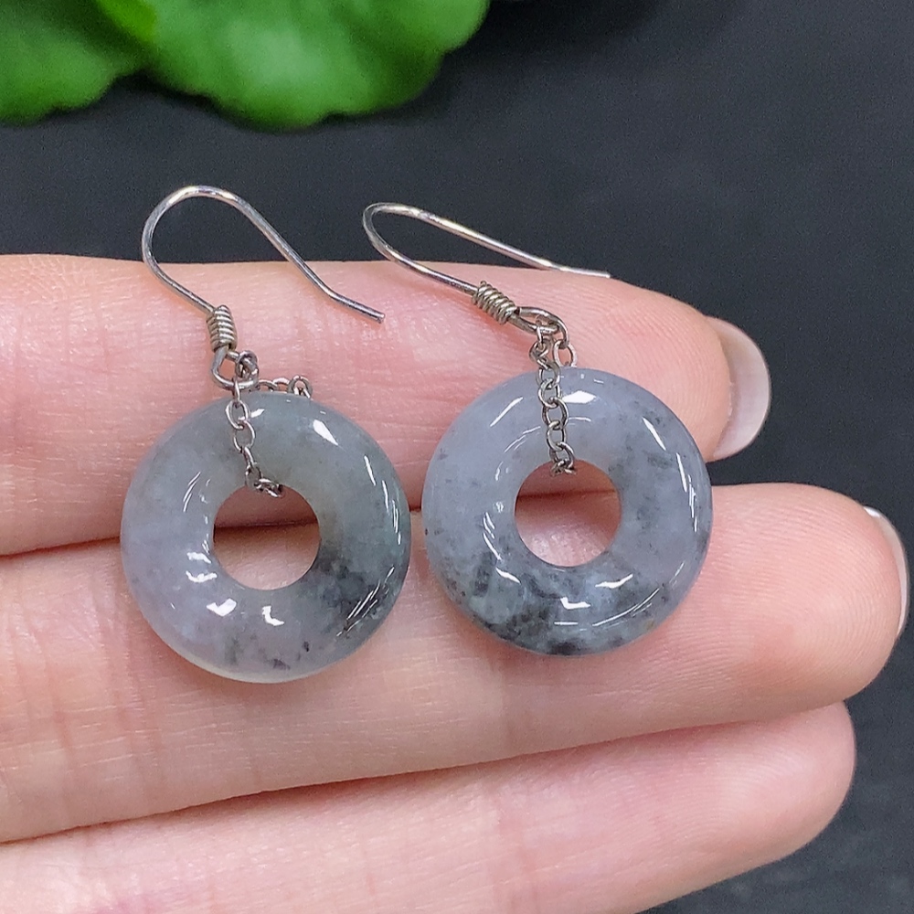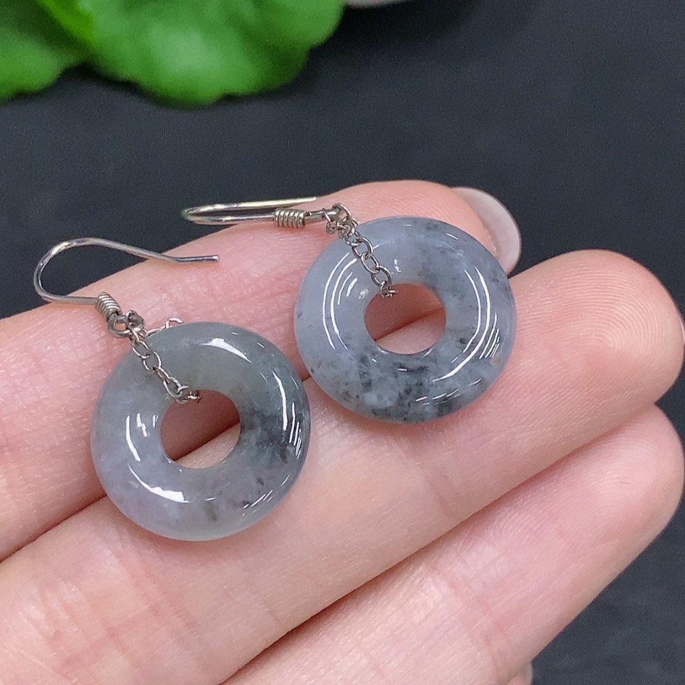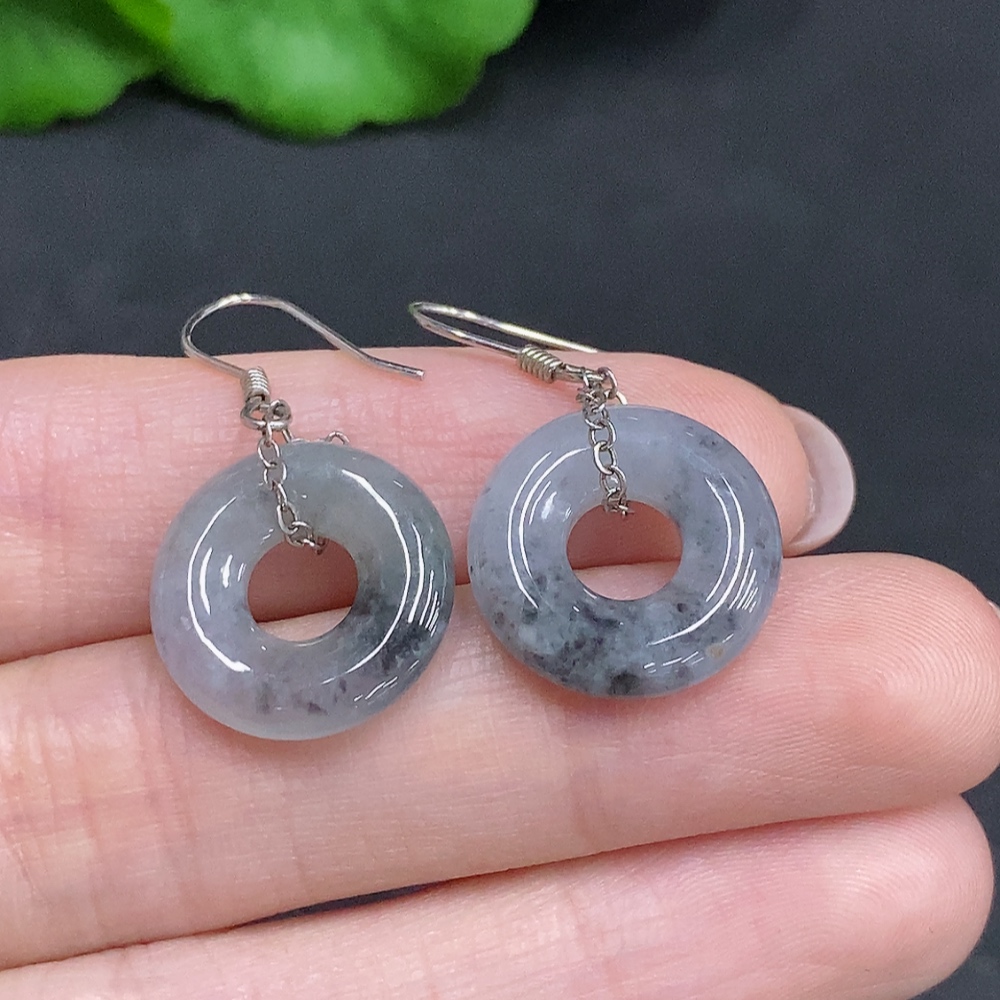 Jadeite Inlaid Earrings Non-Gold Inlaid Total Weight Approx. 3.9g