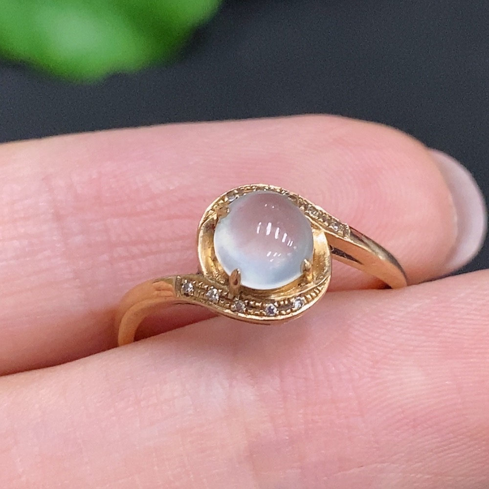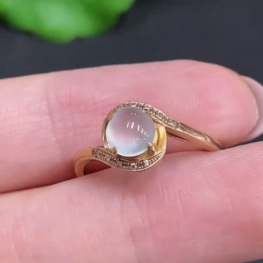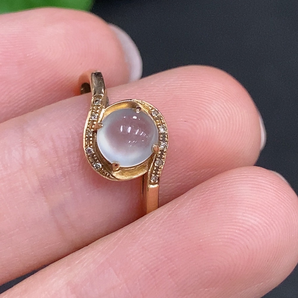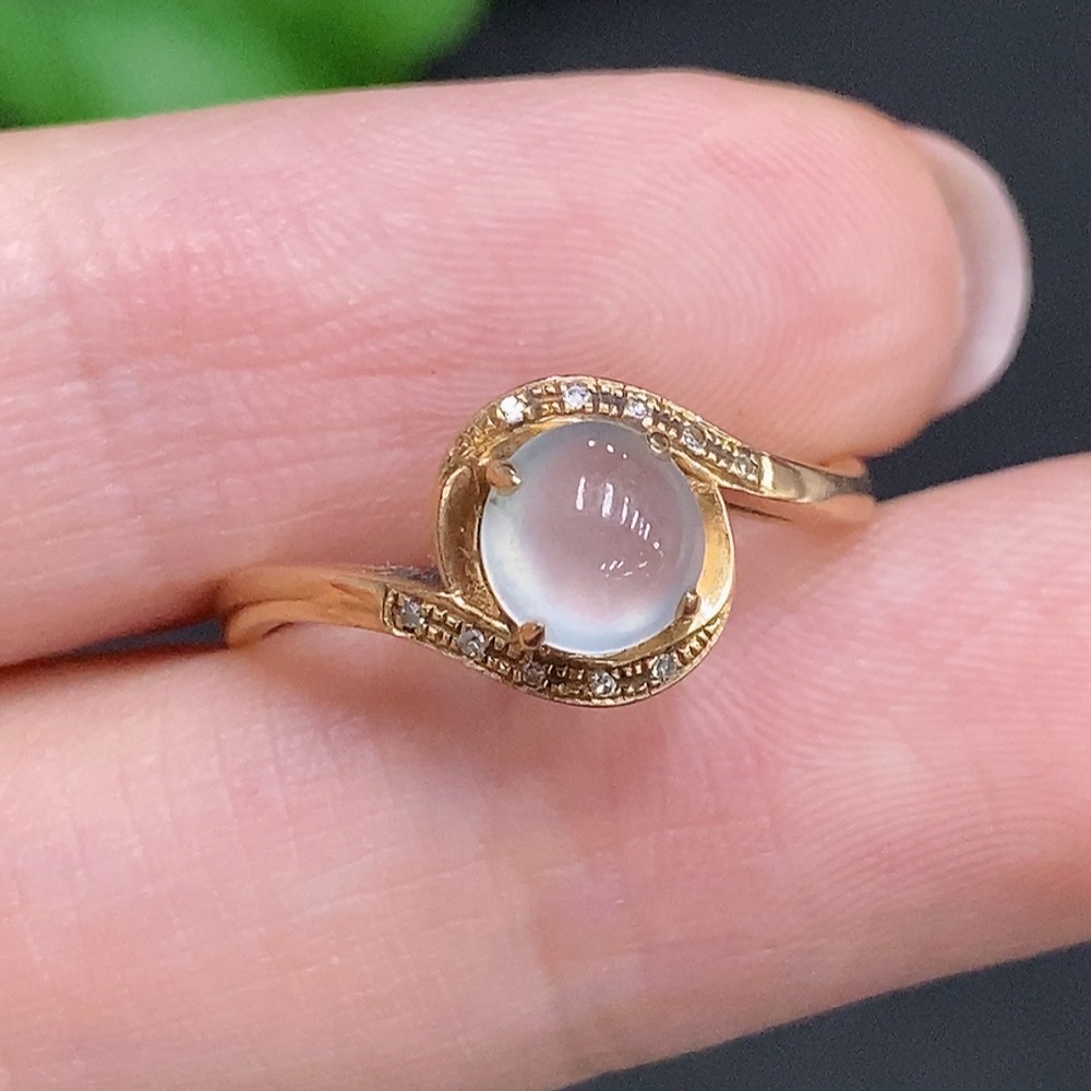 Jadeite Cabochon Ring 18k Gold Total Weight Approx. 1.6g Size 13 with Diamond Accents