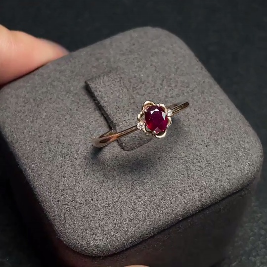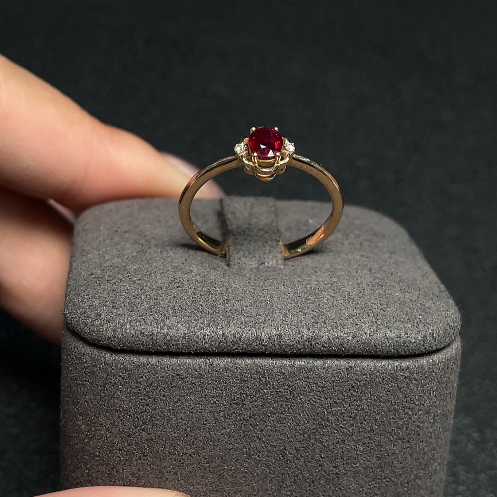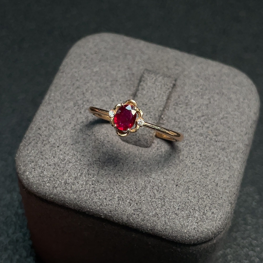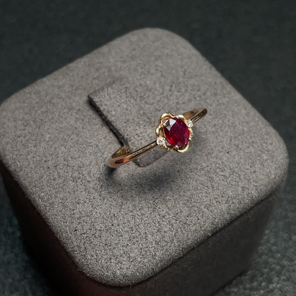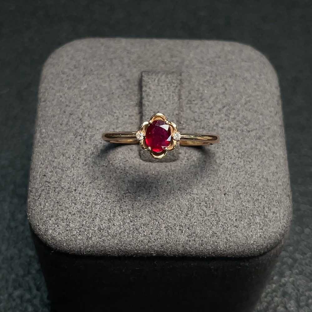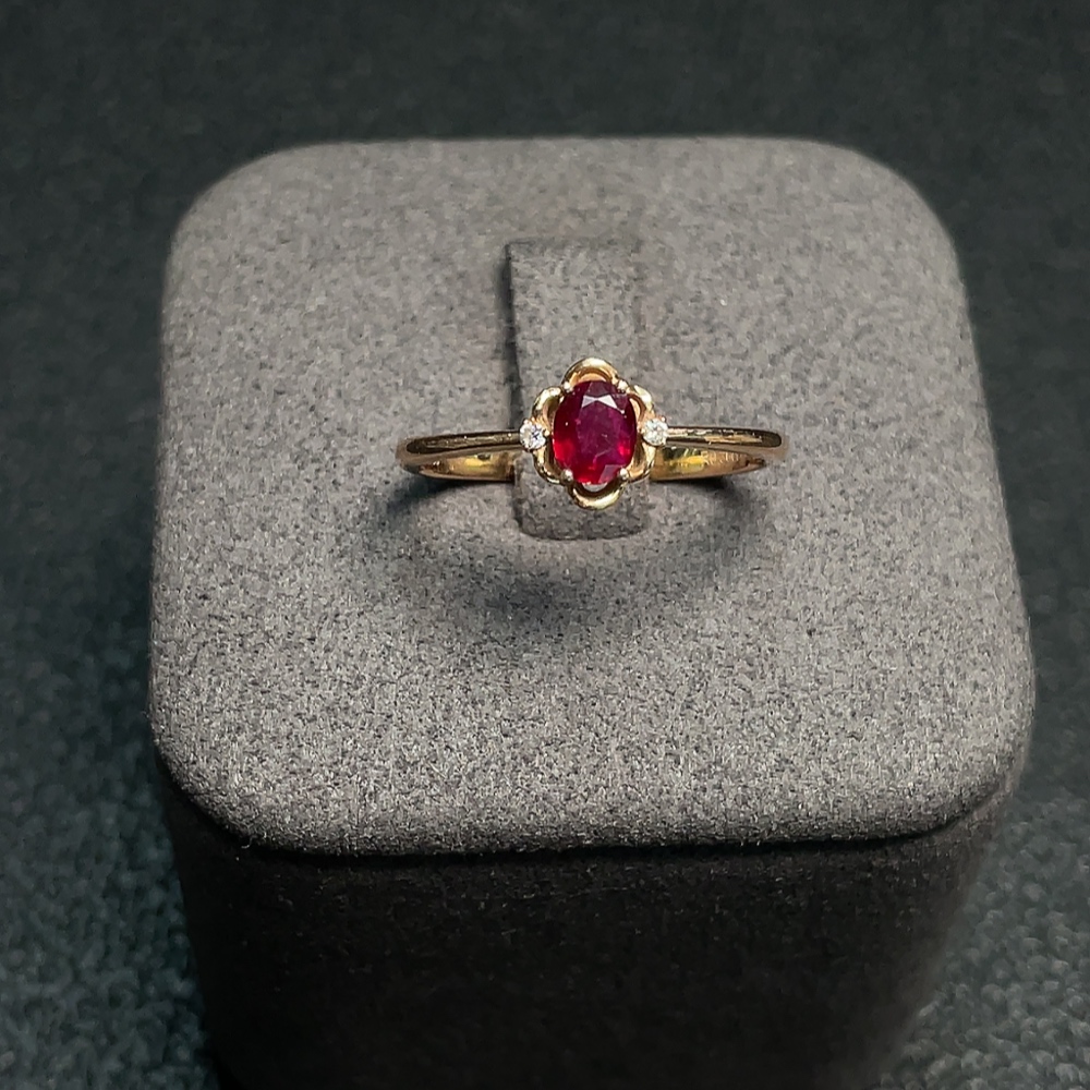 Ruby Ring 18K Gold with Diamond Accents, Total Weight Approx. 1.94g, Size 14, Stone 4.5*3.4mm