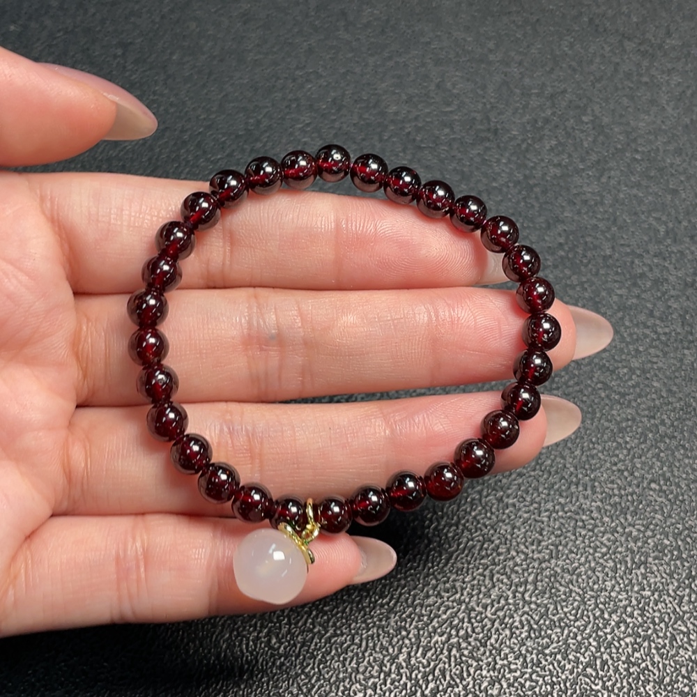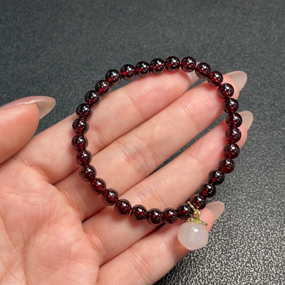 Garnet Bracelet Non-Gold Total Weight Approx.13.06g Size 5.9mm Stones May Be Non-Natural