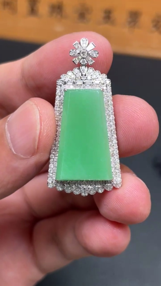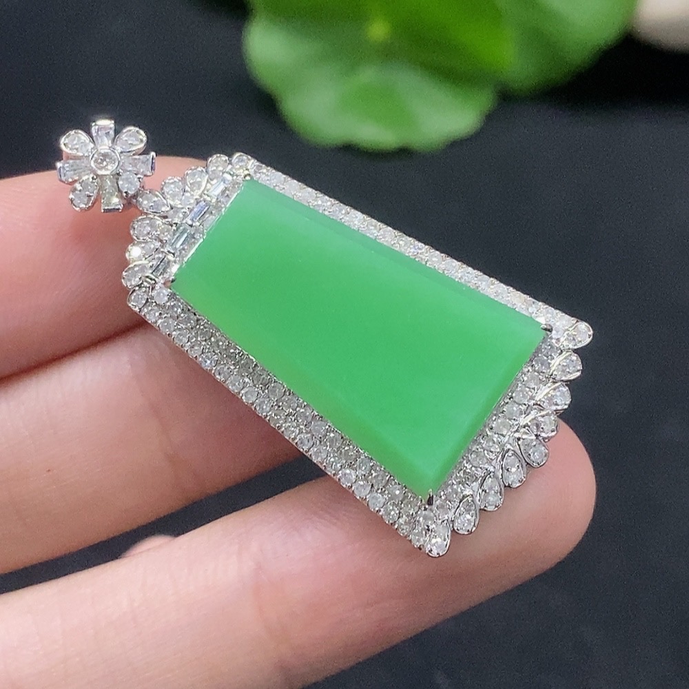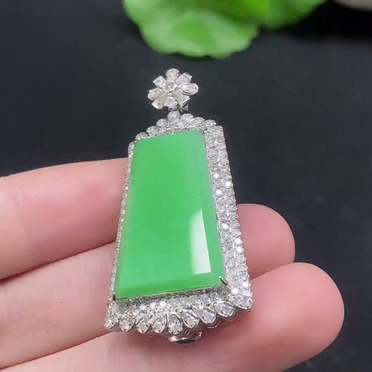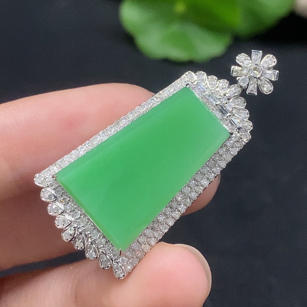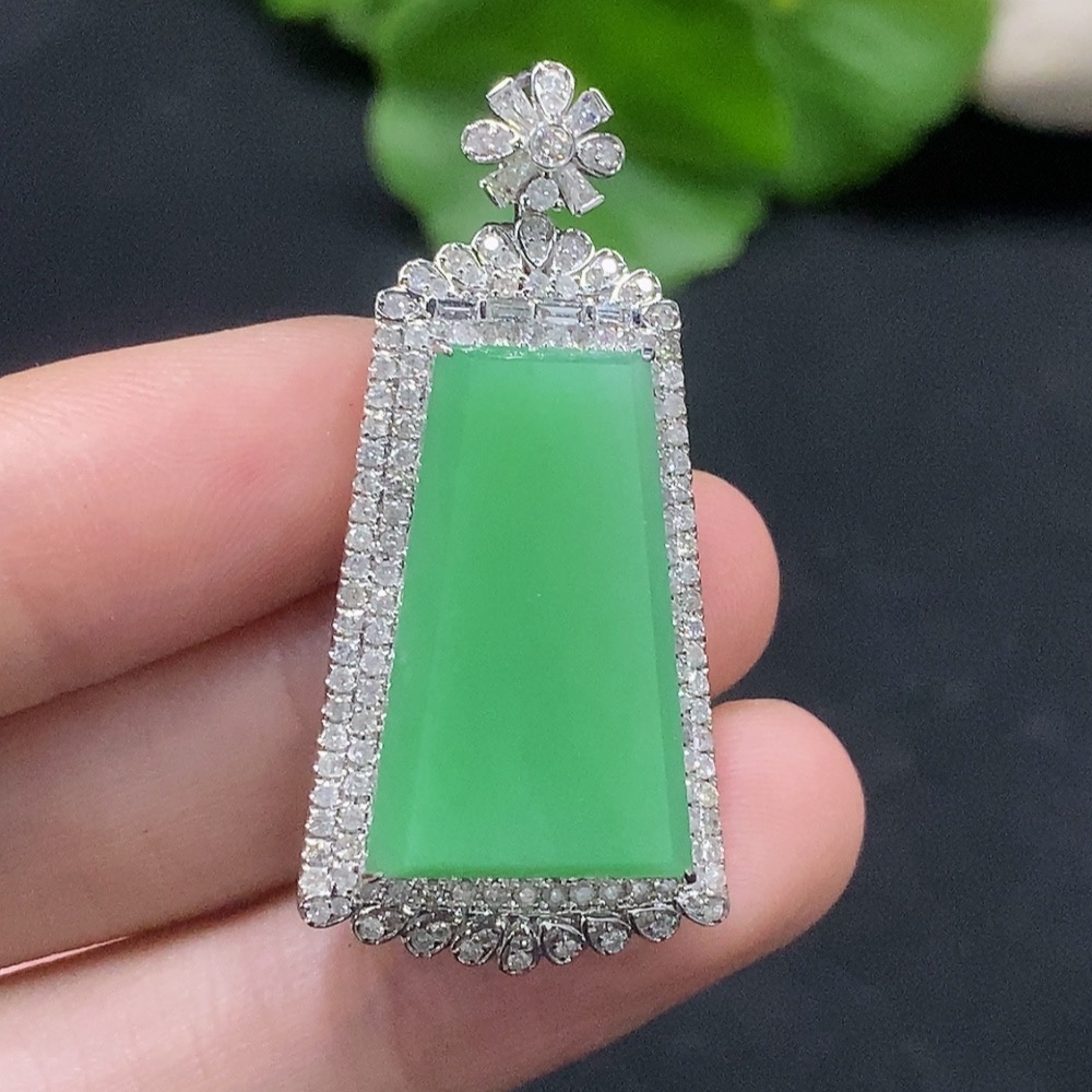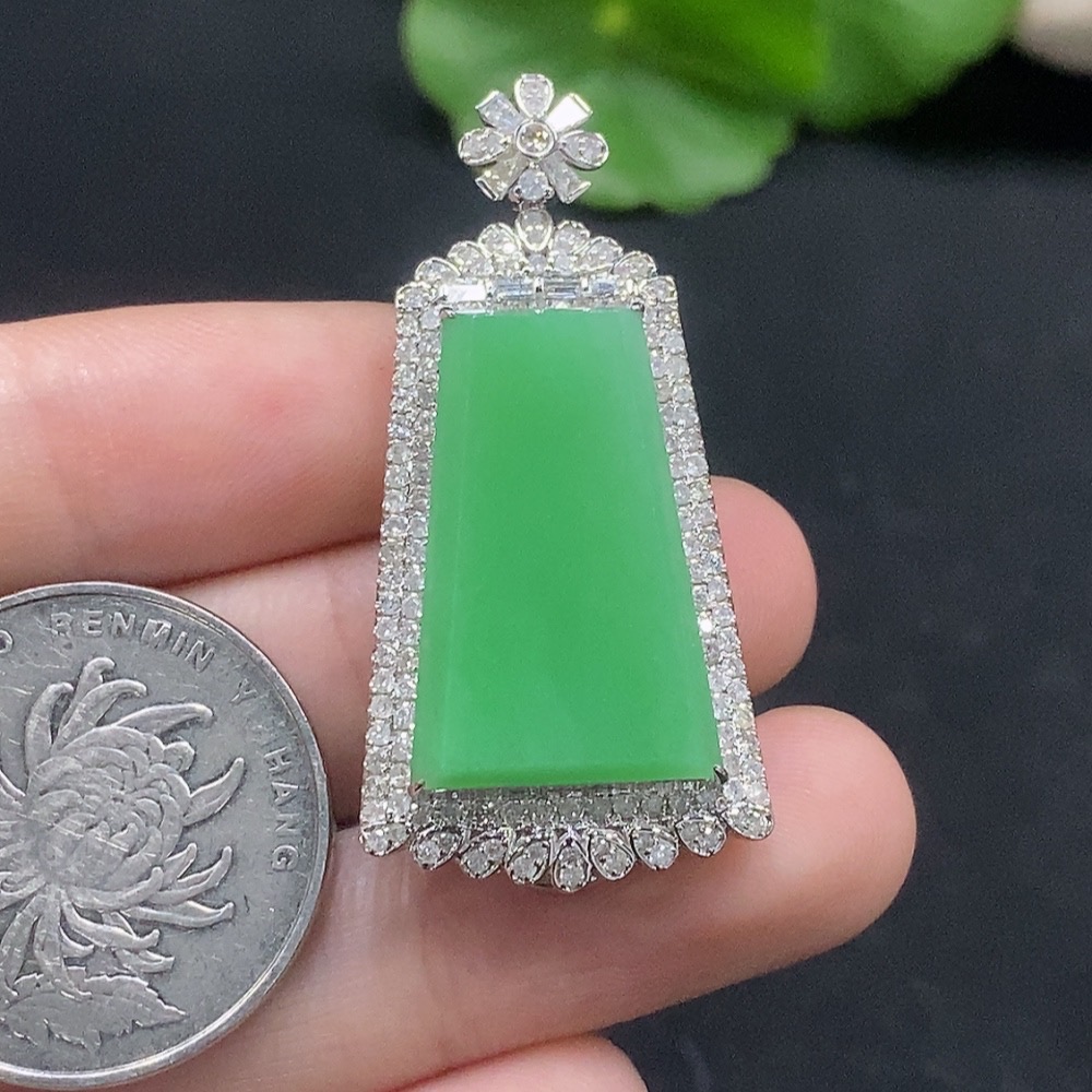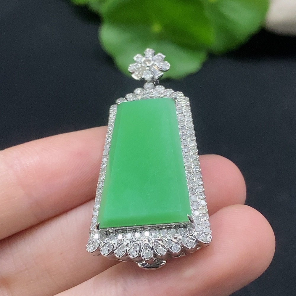 Jadeite Plain Pendant with 18K Gold and Diamond Accents, Total Weight Approx. 9.3g
