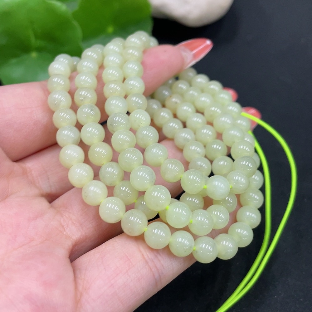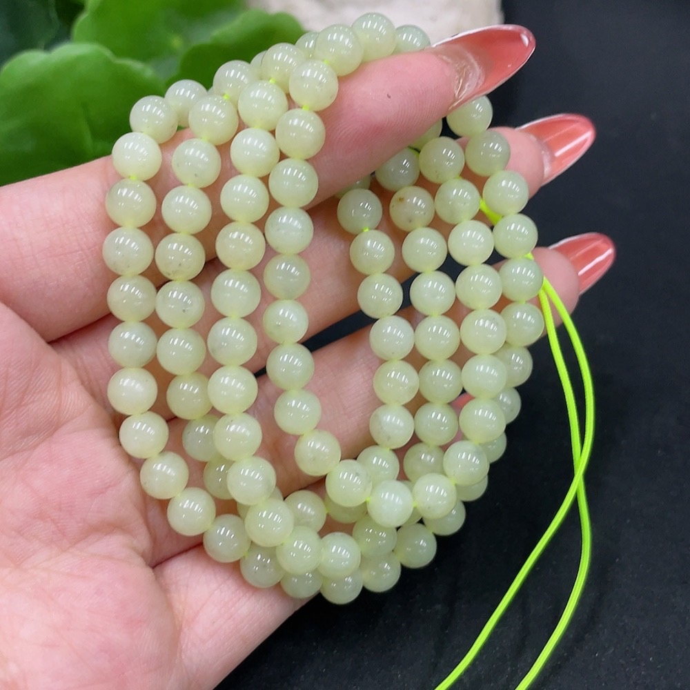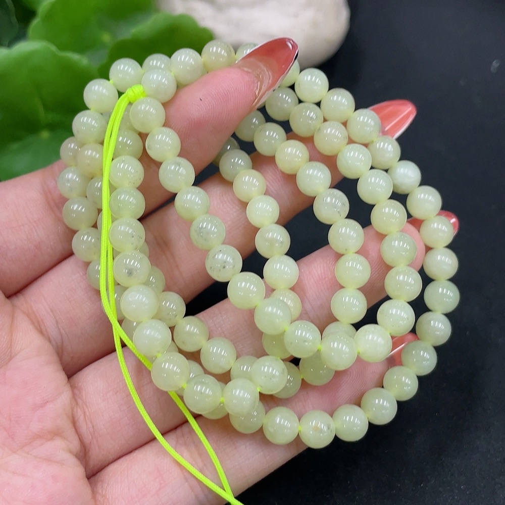 Hetian Jade Bead Necklace, Approx. 6mm, Total Weight Approx. 36.5g