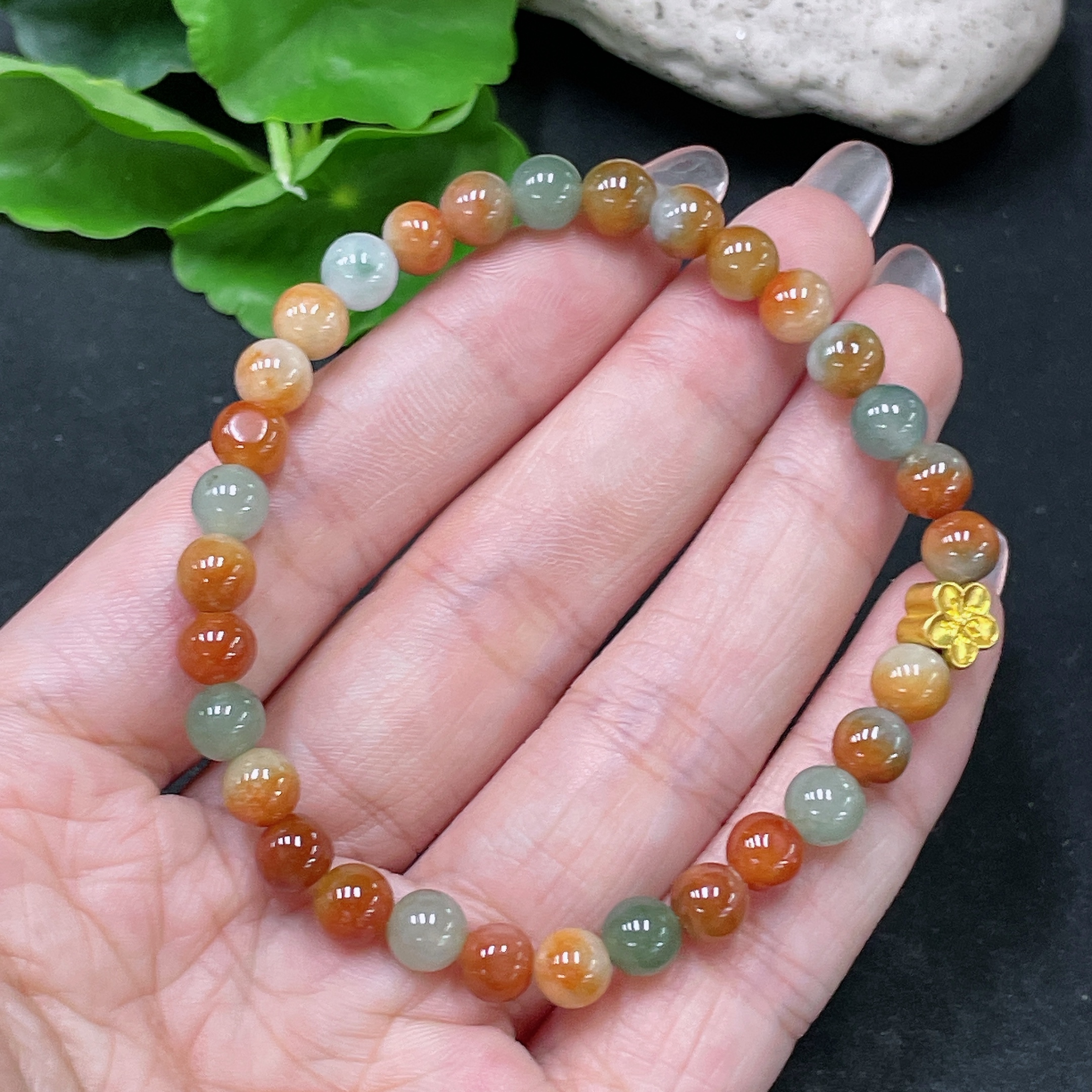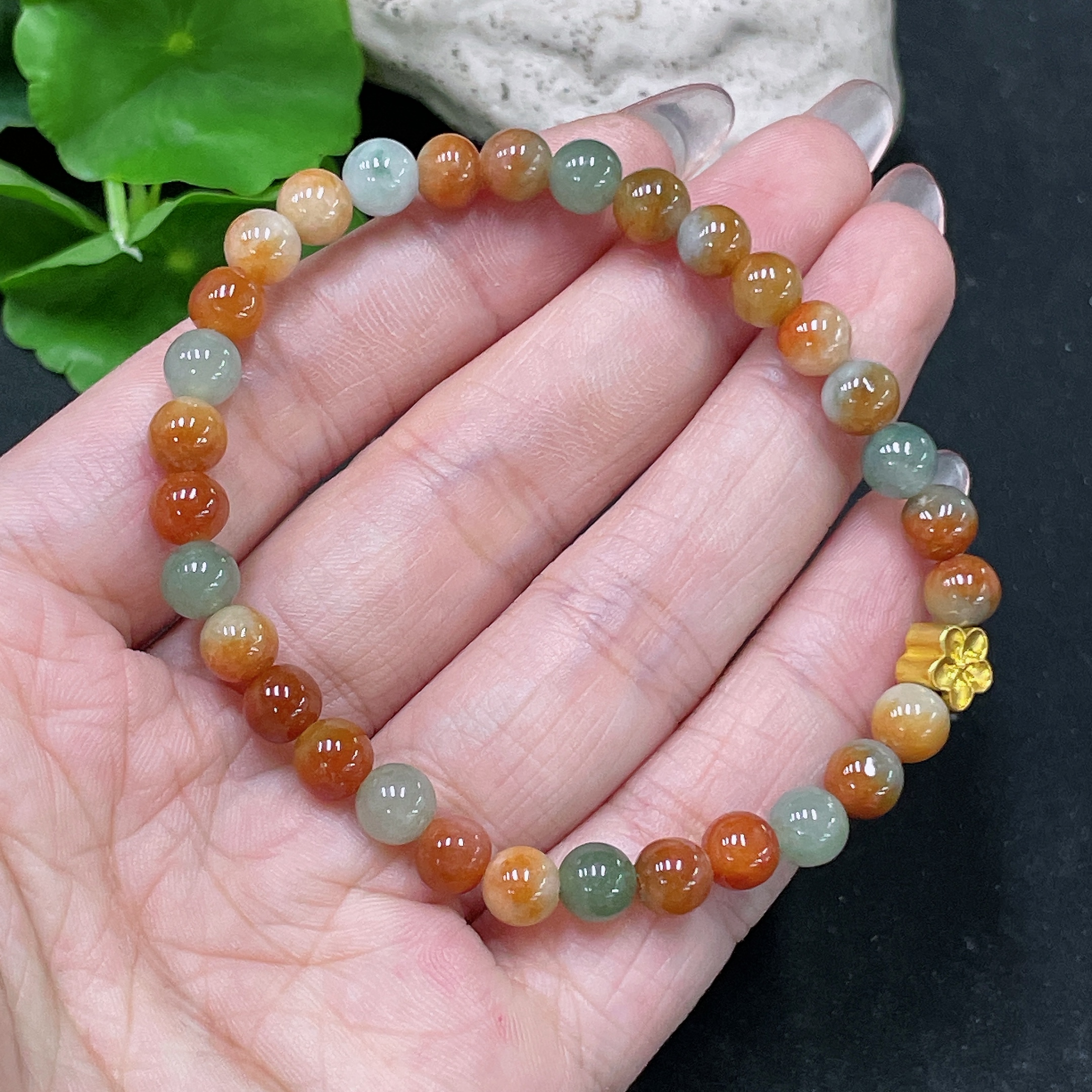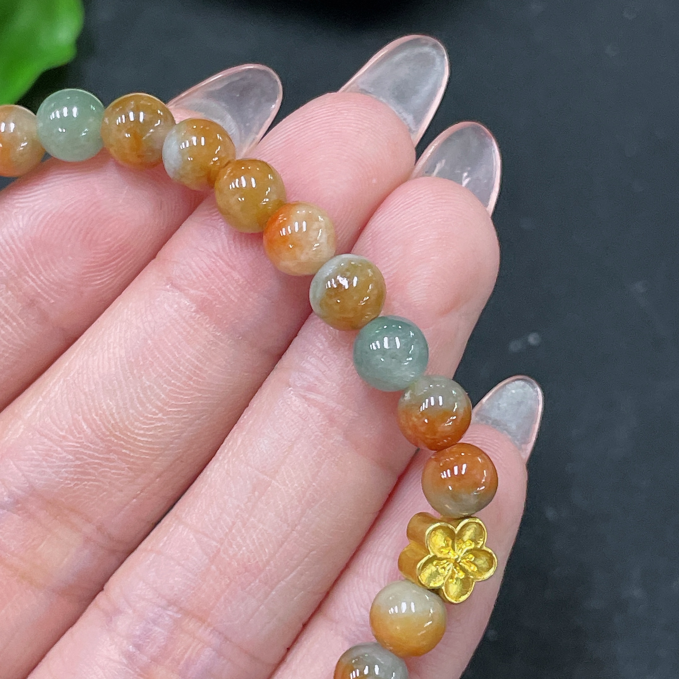 Jadeite Beads Non-Gold Yellow Red Color Origin Undetermined Total Weight Approx. 12.68g Size About 6.3mm