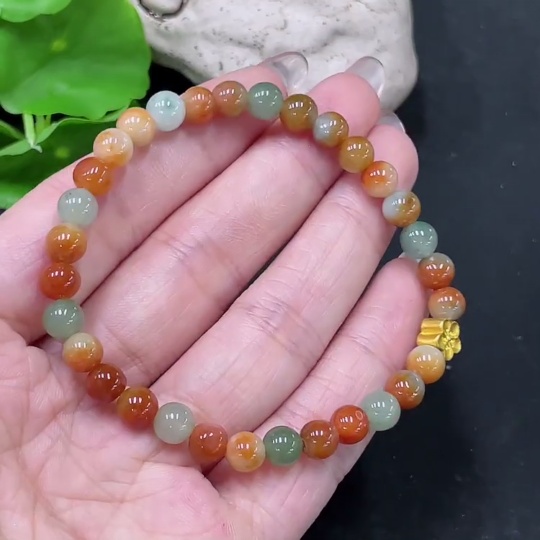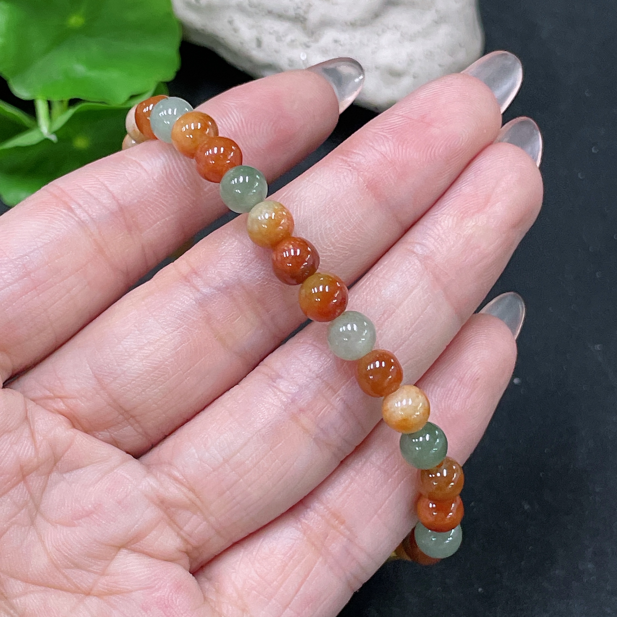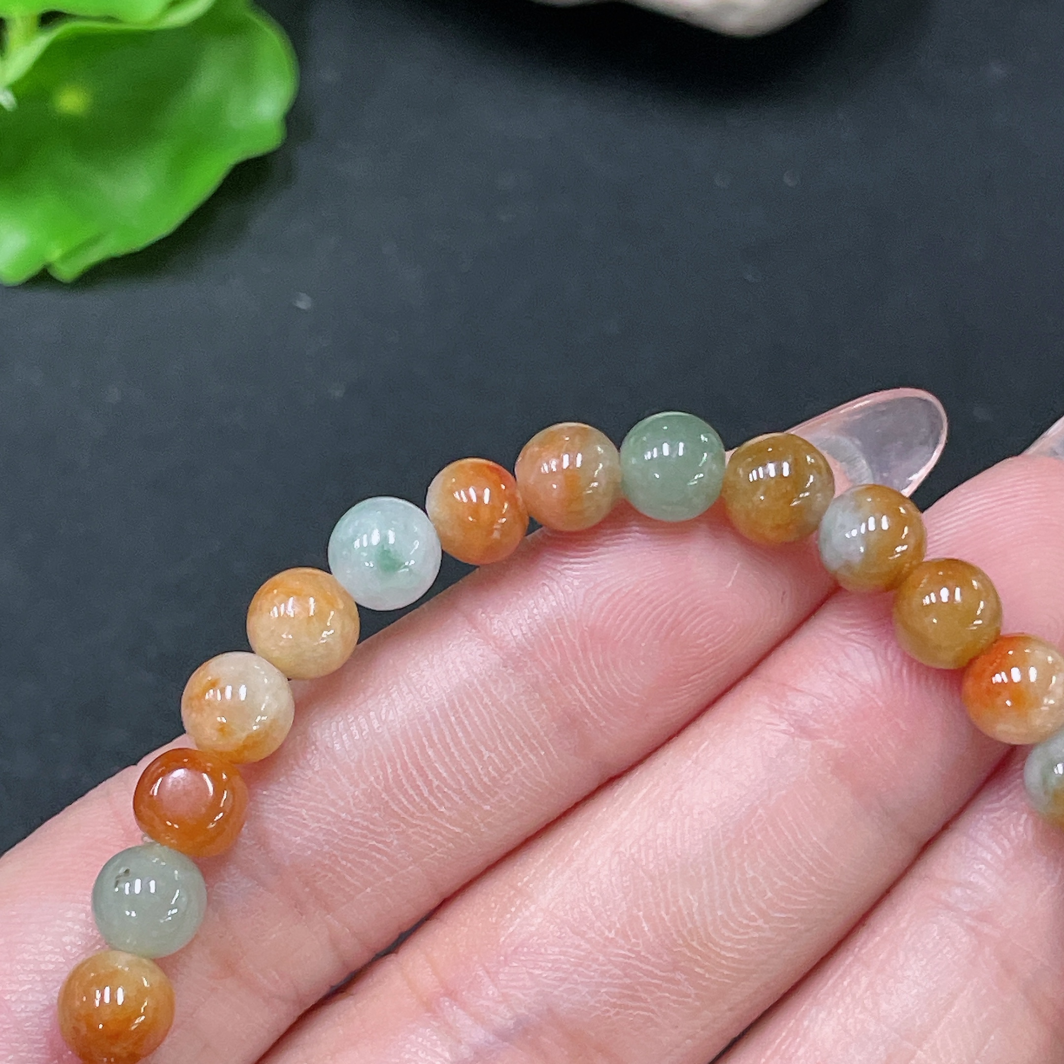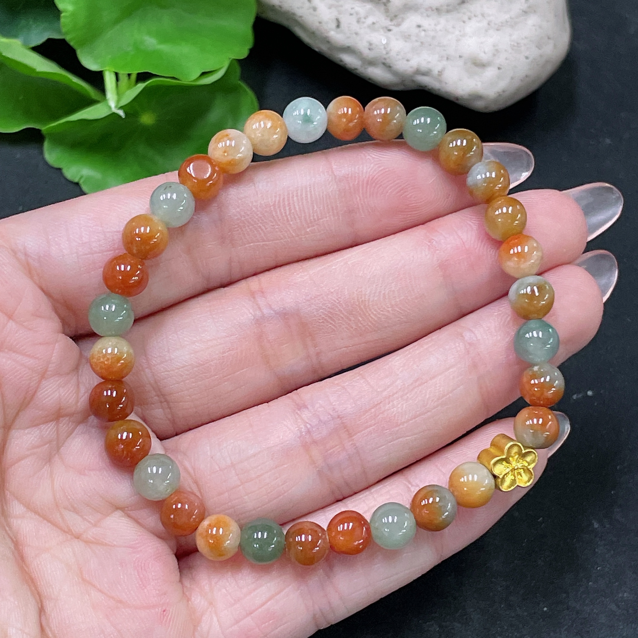 Jadeite Beads Non-Gold Yellow Red Color Origin Undetermined Total Weight Approx. 12.68g Size About 6.3mm