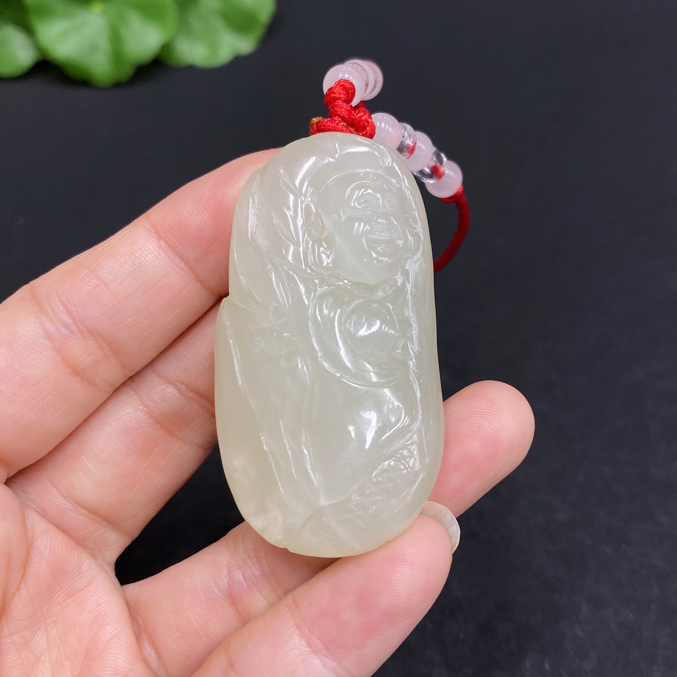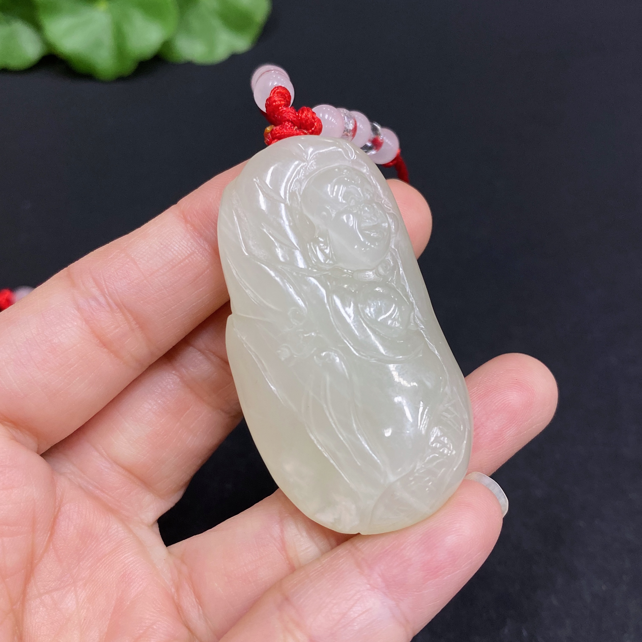 Hetian Jade Pendant - Buddha, Total Weight (including rope): 33.8g, Accessories Not Hetian Jade
