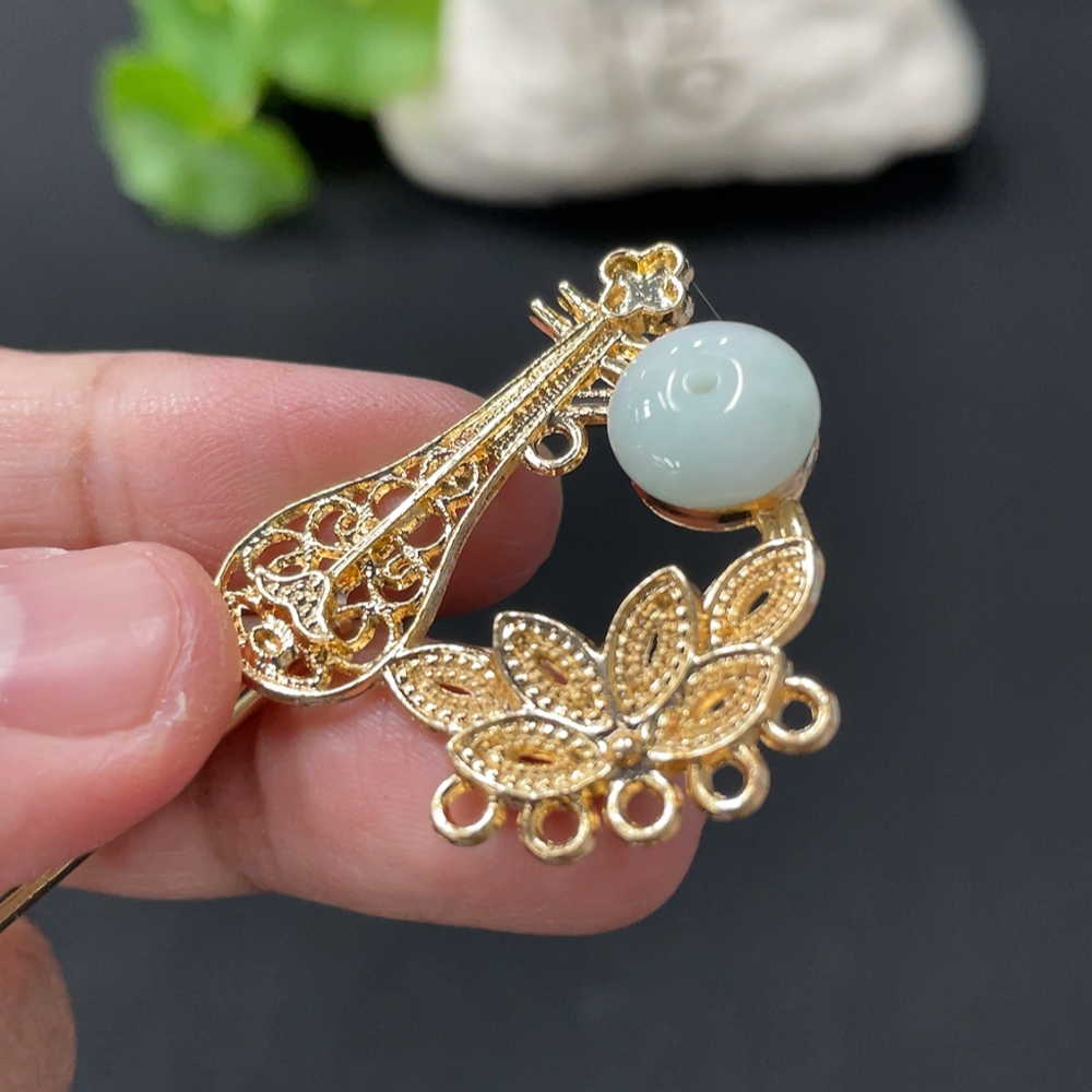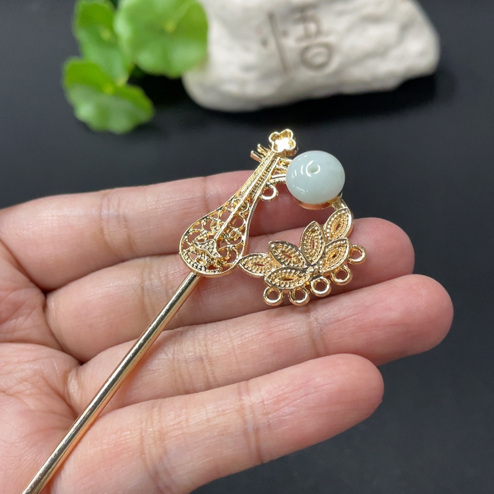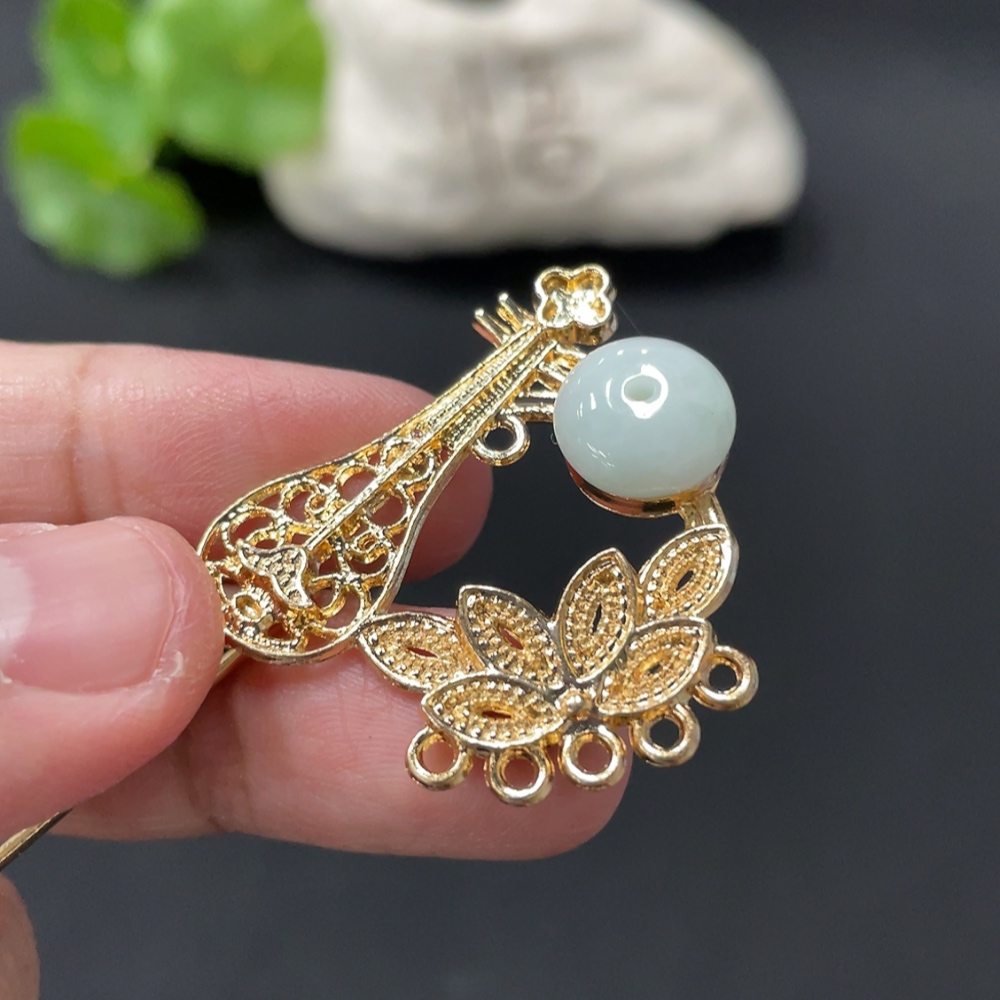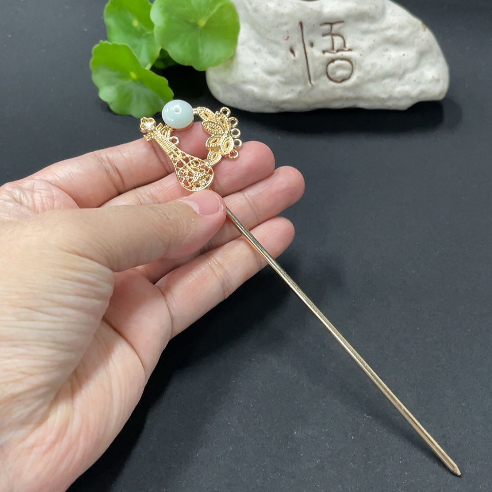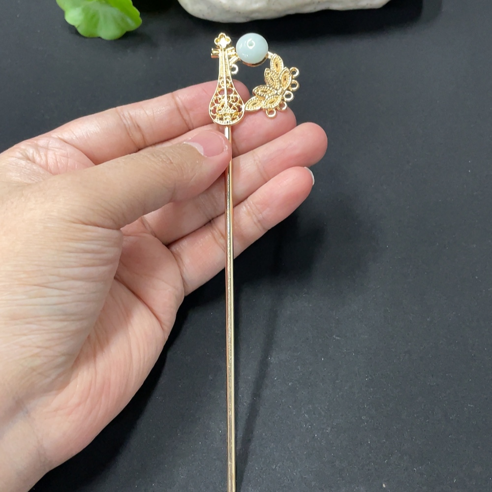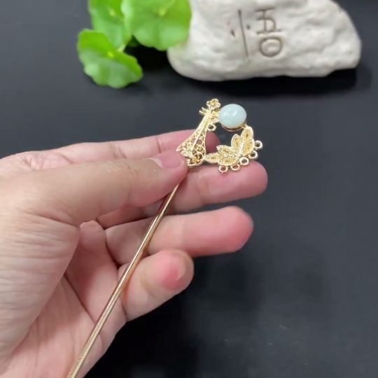 Jadeite Peace-Knot Inlaid Hairpin, Non-Gold Setting, Total Weight Approx.9g
