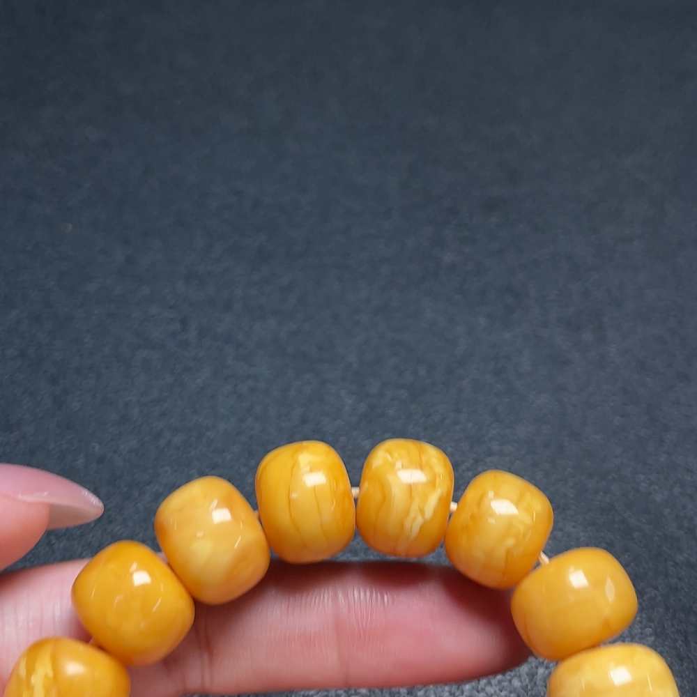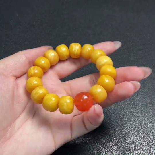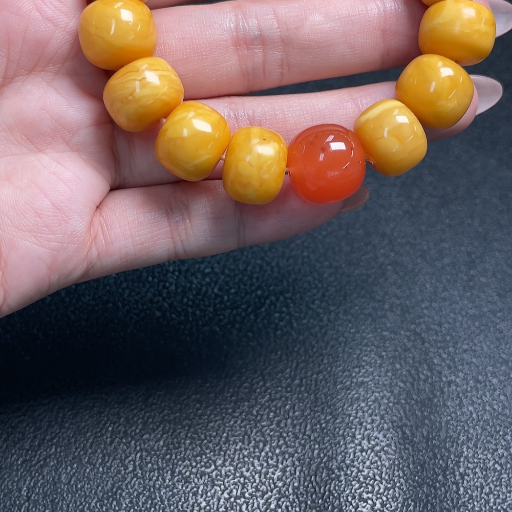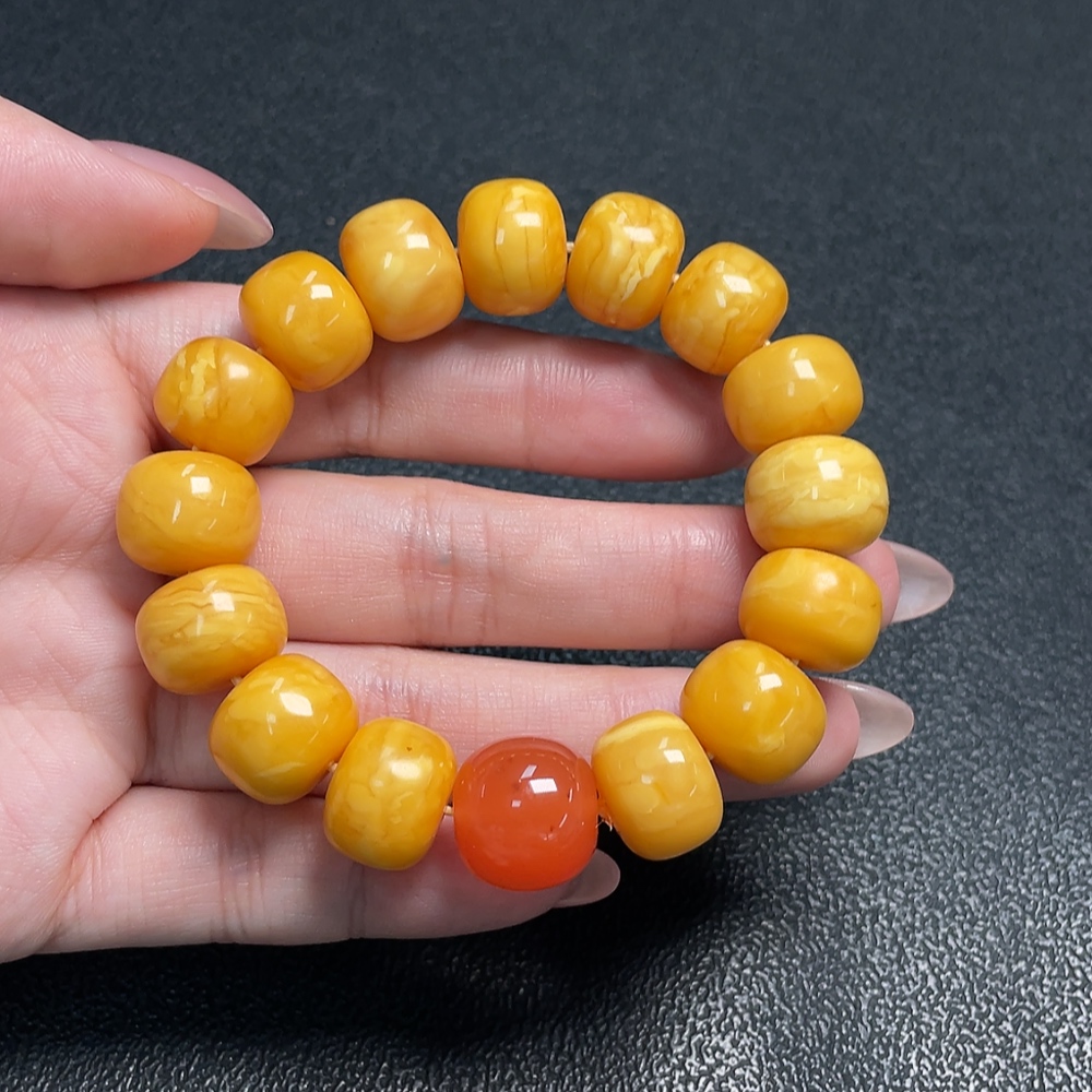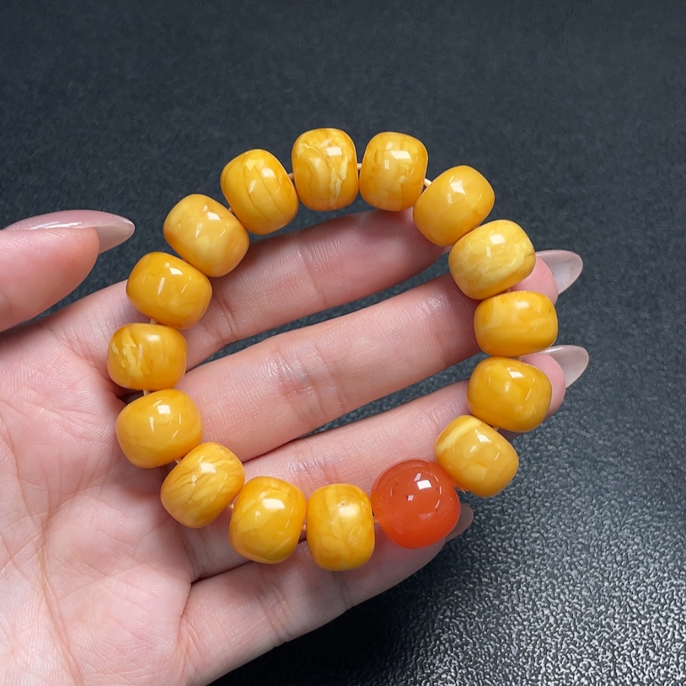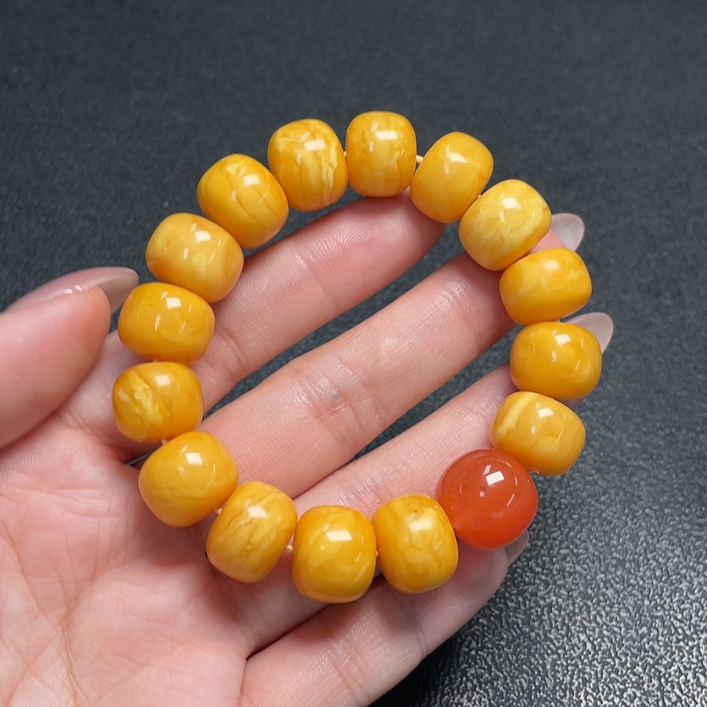 Amber Beeswax Bracelet, Total Weight Approx. 23.70g, Bead Size 13.3mm, with Southern Red Agate
