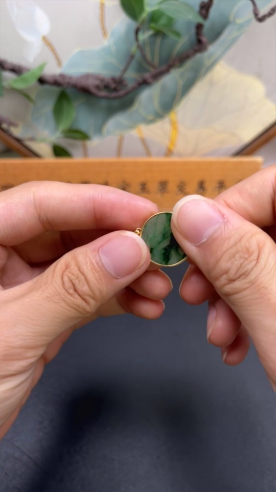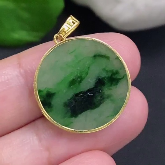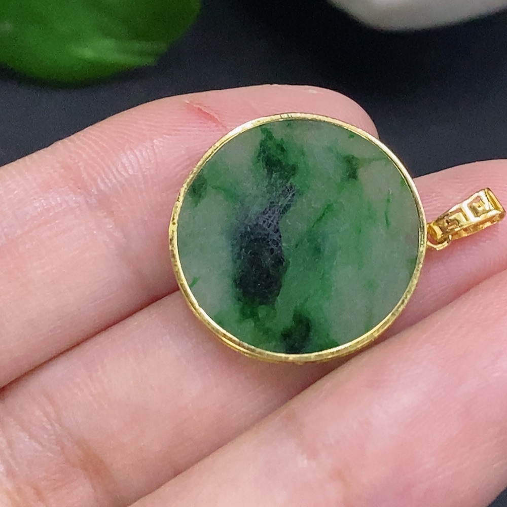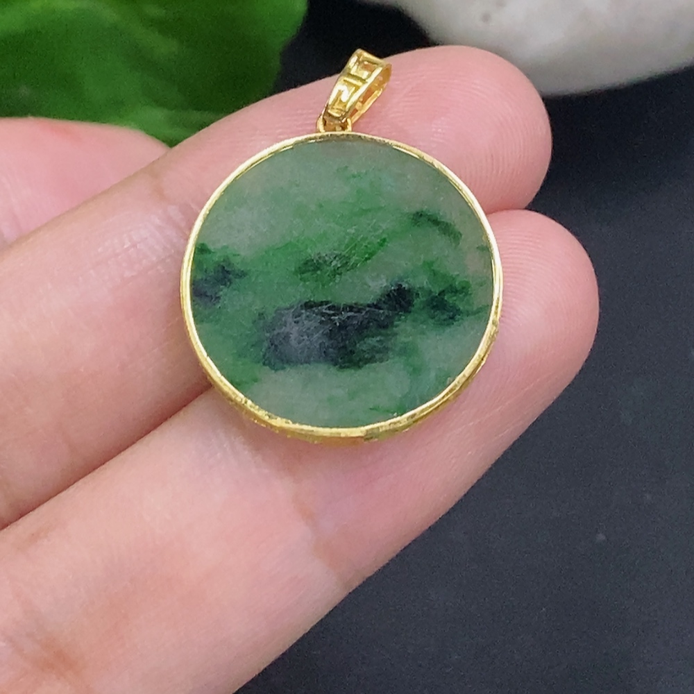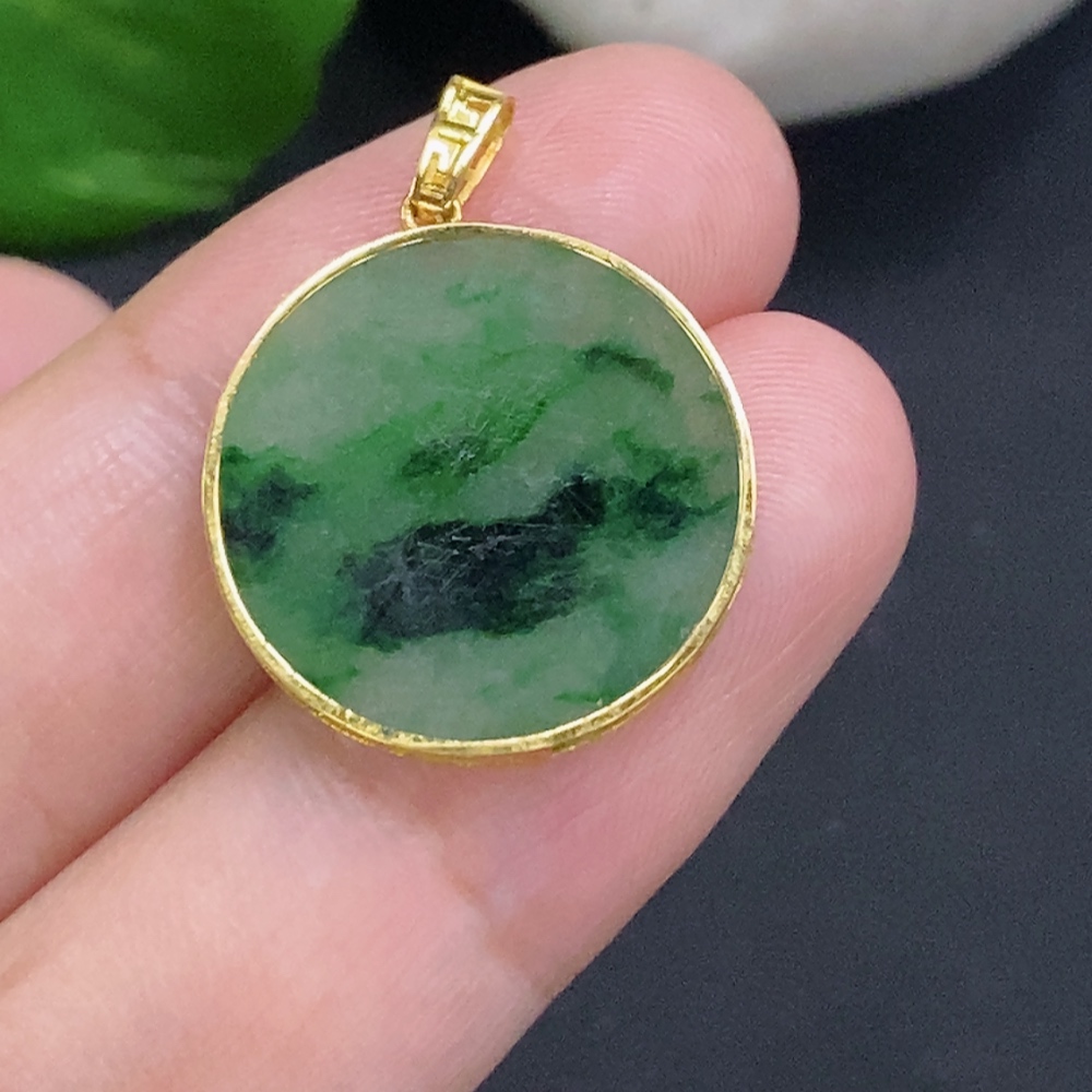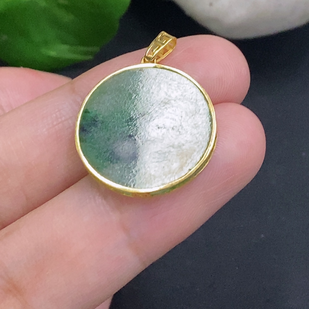 Jadeite Plain Pendant Inlaid Pendant 18k Gold Inlaid Containing Other Mineral Components Total Weight Approximately 1.97g