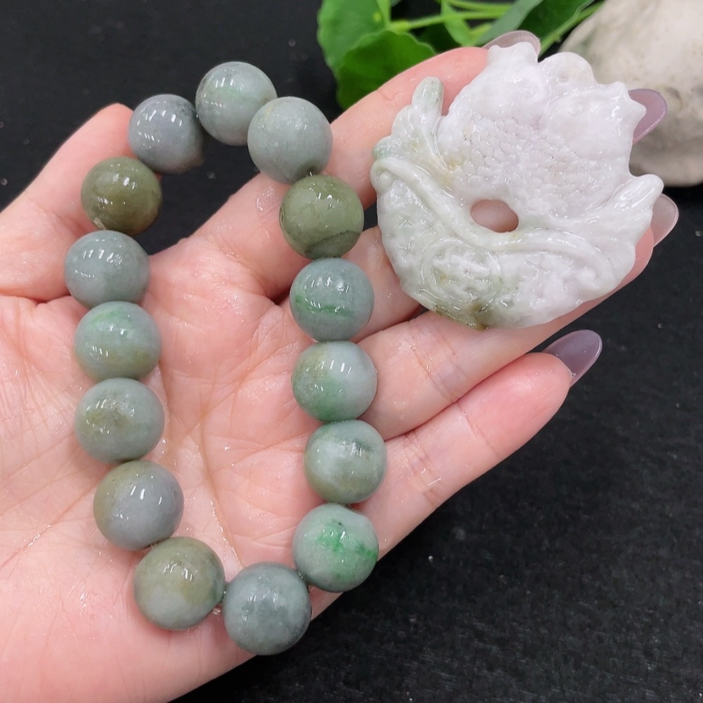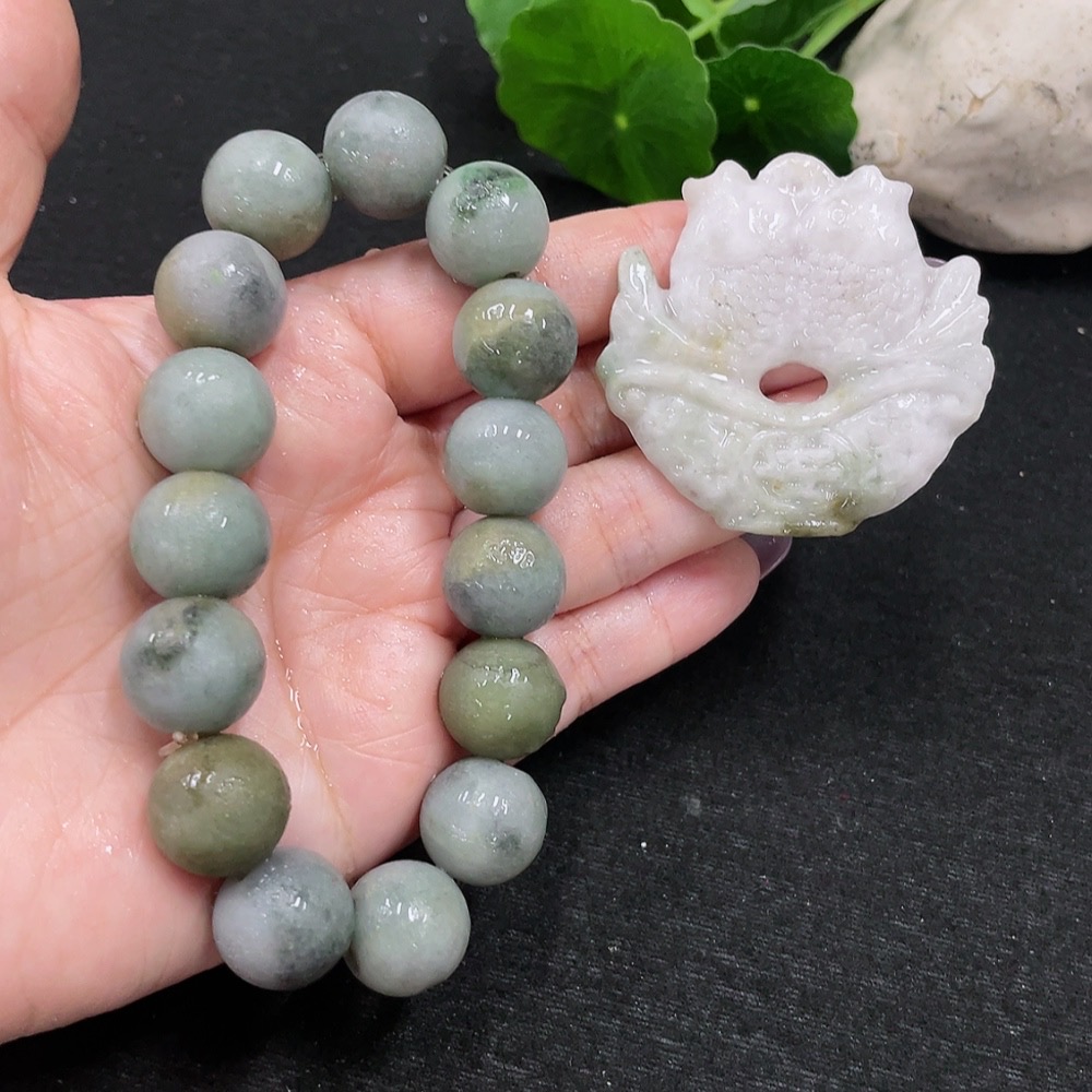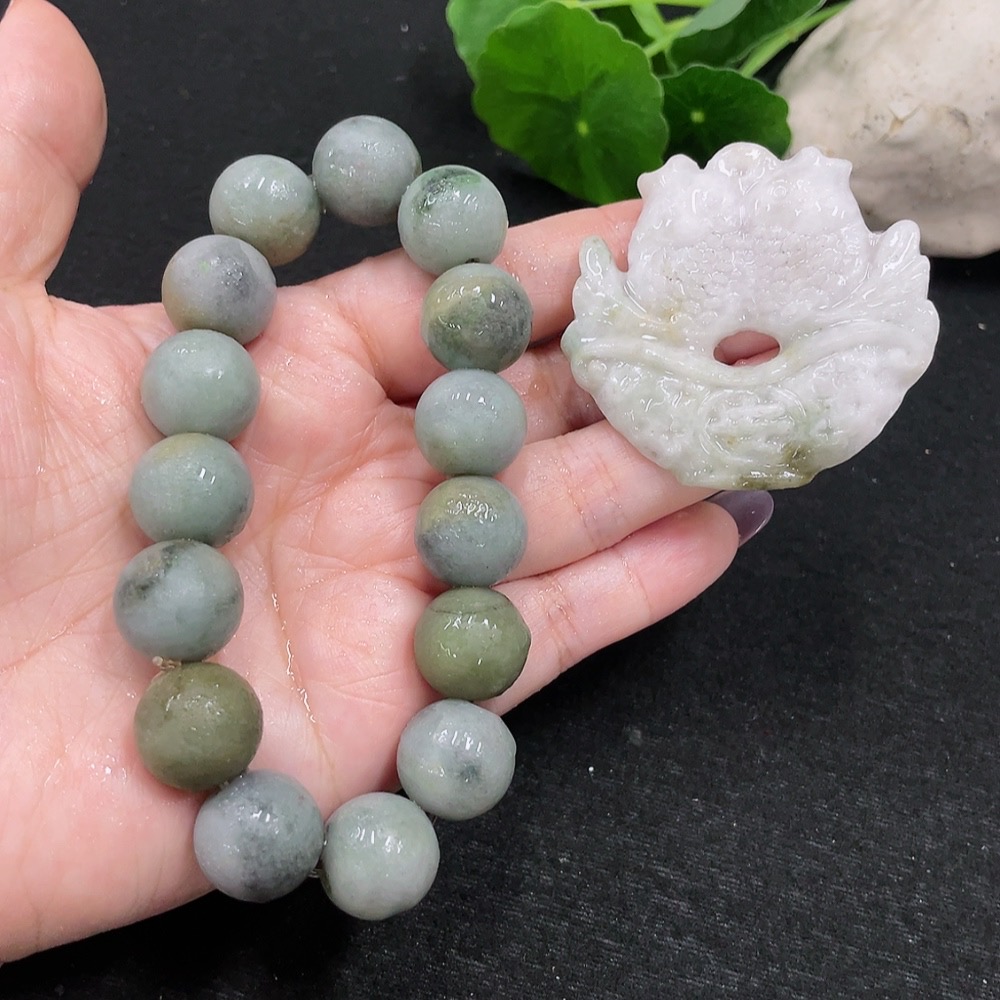 Jadeite Rough Bracelet + Rough Pendant Sell as a Lot
