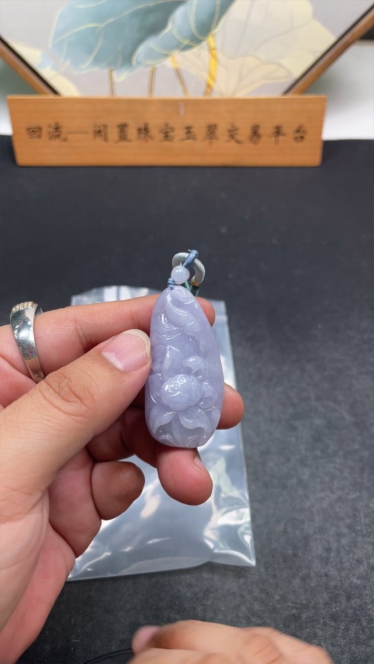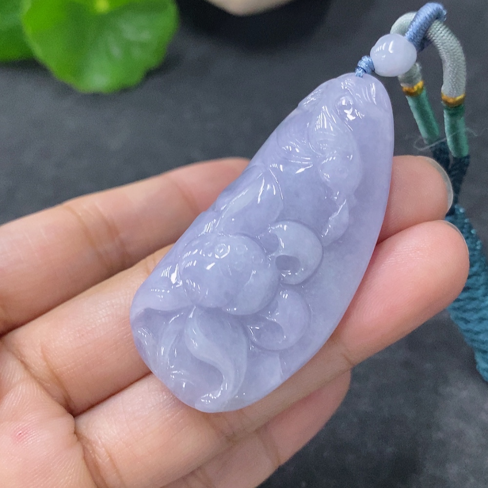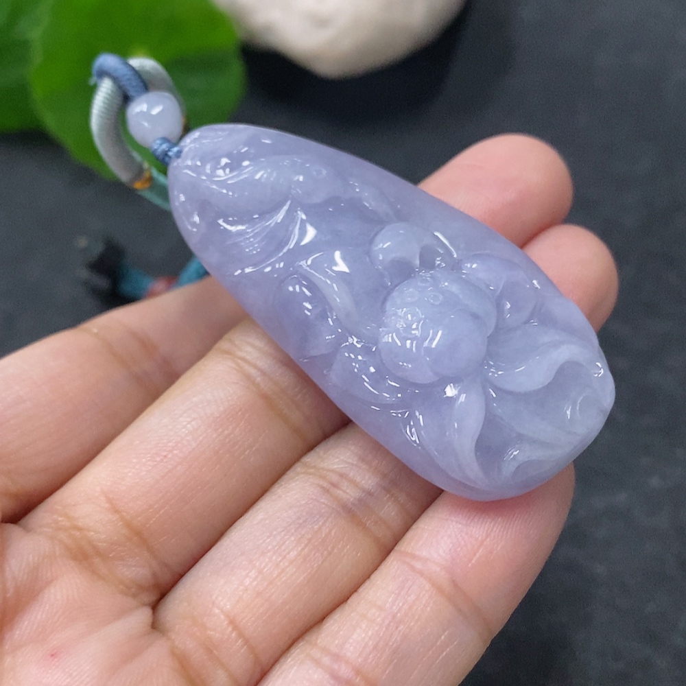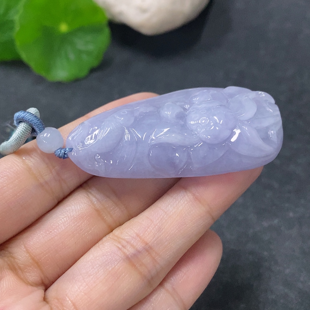 Jadeite Pendant with Auspicious Design of Abundance Year after Year, Total Weight Including String: 24.86g